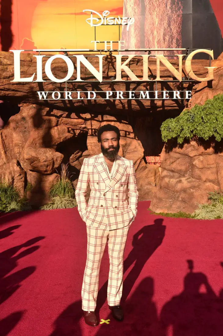 HOLLYWOOD, CALIFORNIA – JULY 09: Donald Glover attends the World Premiere of Disney’s “THE LION KING” at the Dolby Theatre on July 09, 2019 in Hollywood, California. (Photo by Jesse Grant/Getty Images for Disney)