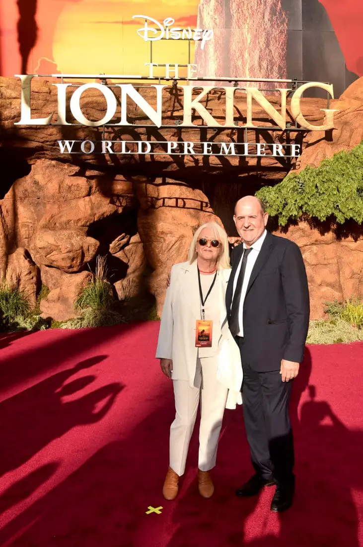 HOLLYWOOD, CALIFORNIA – JULY 09: Co-producer John Bartnicki (L) and guest attend the World Premiere of Disney’s “THE LION KING” at the Dolby Theatre on July 09, 2019 in Hollywood, California. (Photo by Alberto E. Rodriguez/Getty Images for Disney)