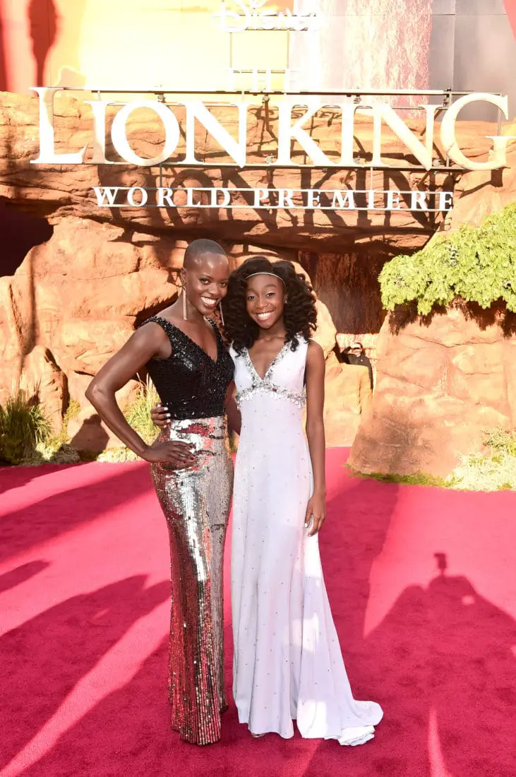 HOLLYWOOD, CALIFORNIA – JULY 09: Florence Kasumba (L) and Shahadi Wright Joseph attend the World Premiere of Disney’s “THE LION KING” at the Dolby Theatre on July 09, 2019 in Hollywood, California. (Photo by Alberto E. Rodriguez/Getty Images for Disney)