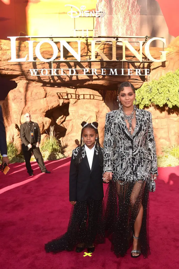HOLLYWOOD, CALIFORNIA – JULY 09: Blue Ivy Carter (L) and Beyonce Knowles-Carter attend the World Premiere of Disney’s “THE LION KING” at the Dolby Theatre on July 09, 2019 in Hollywood, California. (Photo by Alberto E. Rodriguez/Getty Images for Disney)