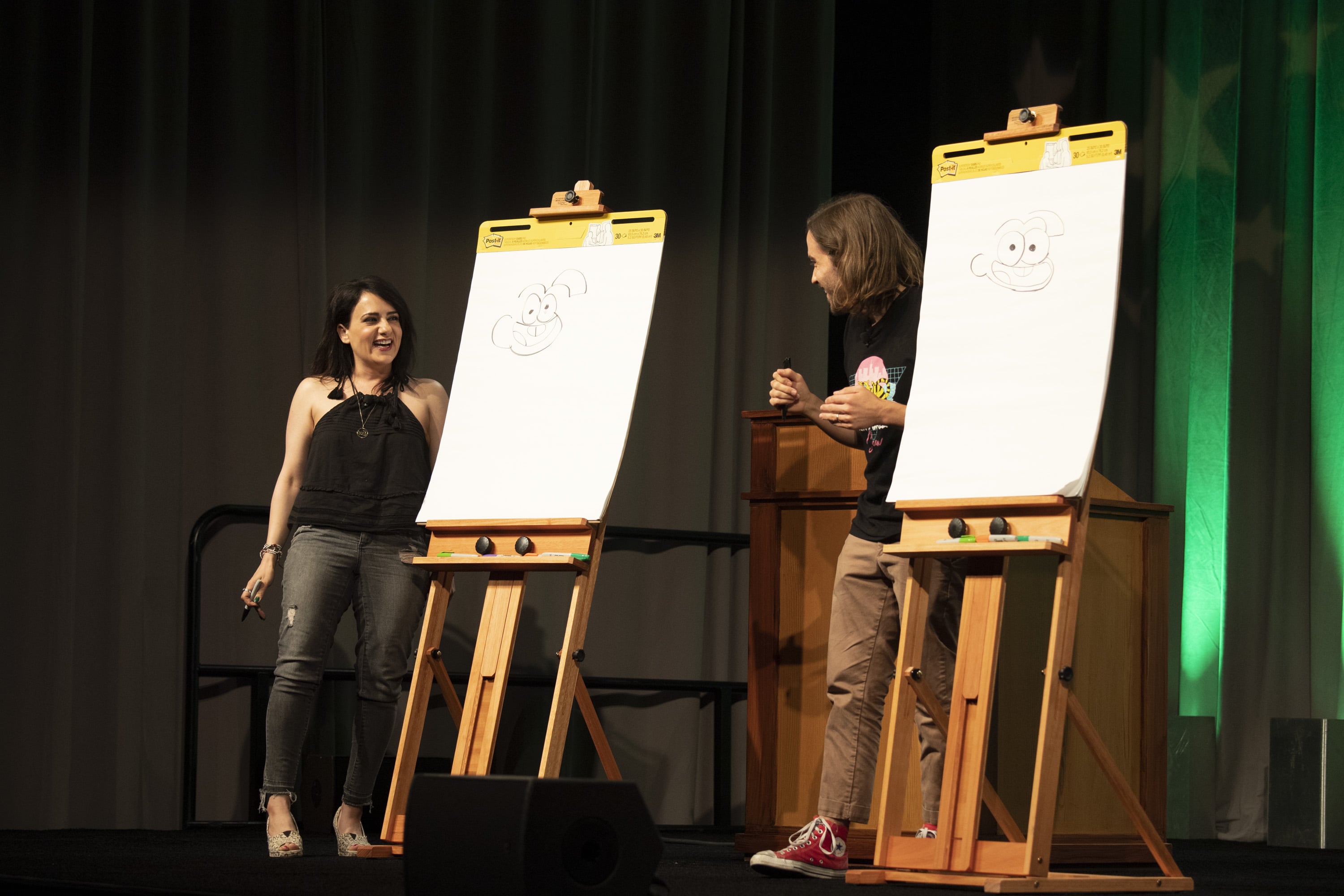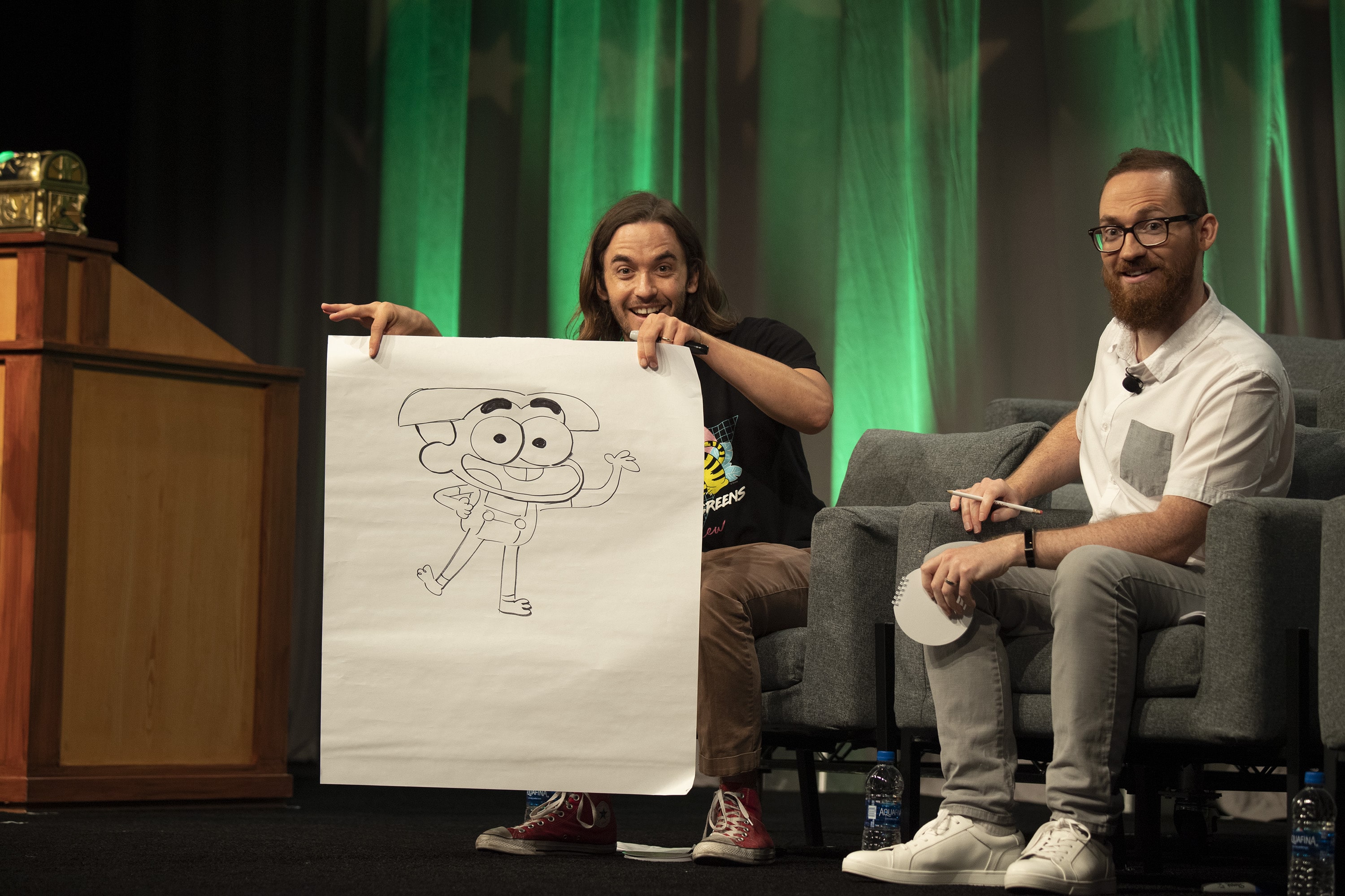 Kermit’s official job was to run a Q&A for the panel, so without him, the cast and crew had to get creative. Along the way, we got to see a peek at new shorts coming from “Big City Greens” in which their characters call up real-world people. We also got to see a mash-up script read-through that let the casts of both shows demonstrate their vocal talents. In one of our favorite moments, the casts held something of their own Animation Academy. Be sure to check out the photos of the panel below!