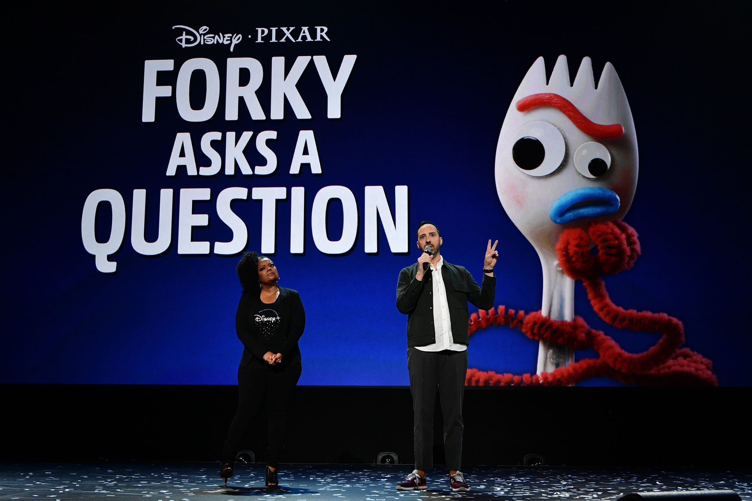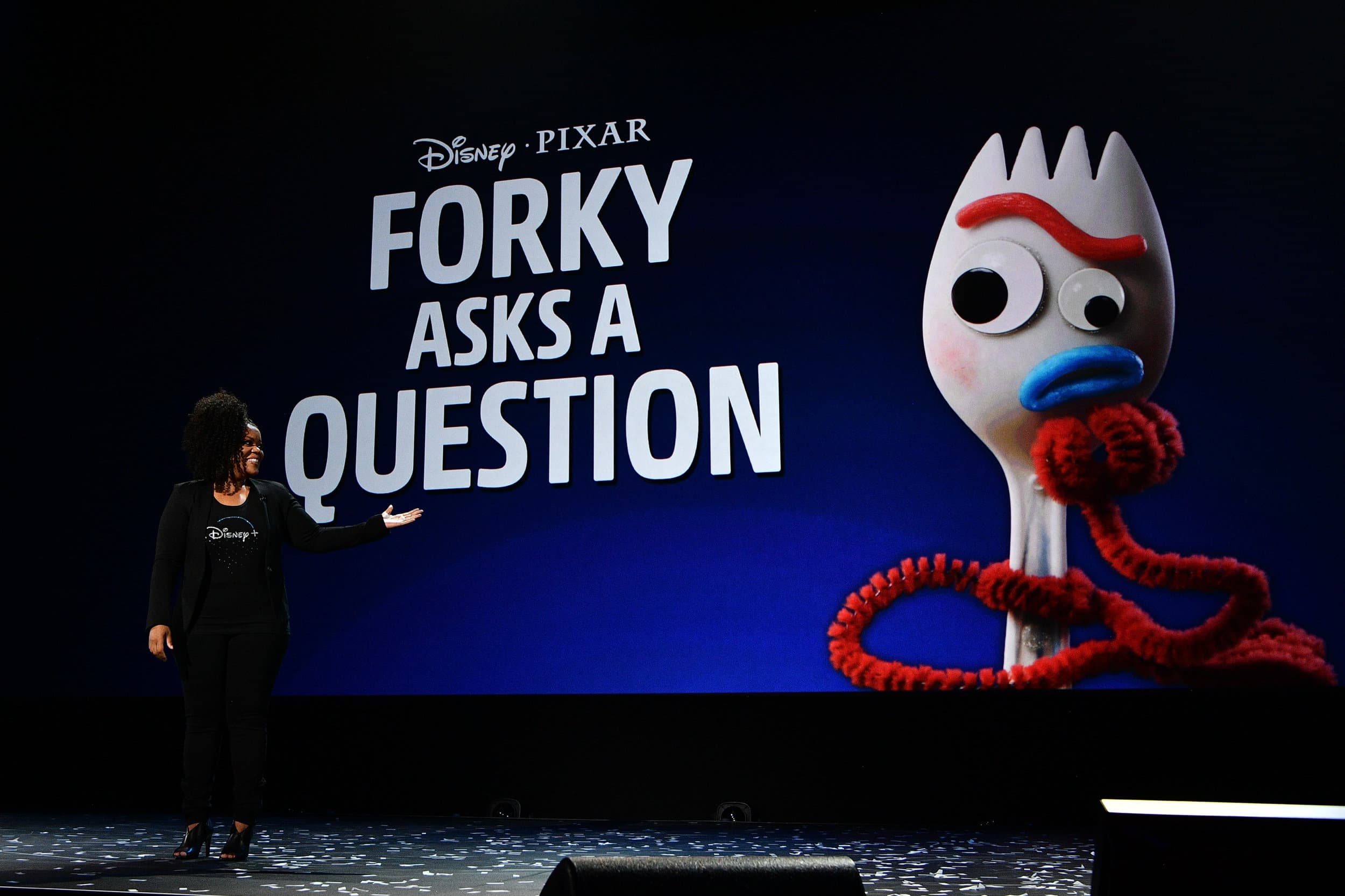 Tony Hale, who reprises his craft project turned toy role from “Toy Story 4” in the new collection of Pixar animated shorts “Forky Asks A Question,” premiered the first short (“What is Money?”). In the 10 shorts, Forky explores important questions about how the world works, such as: What is love? What is time?
