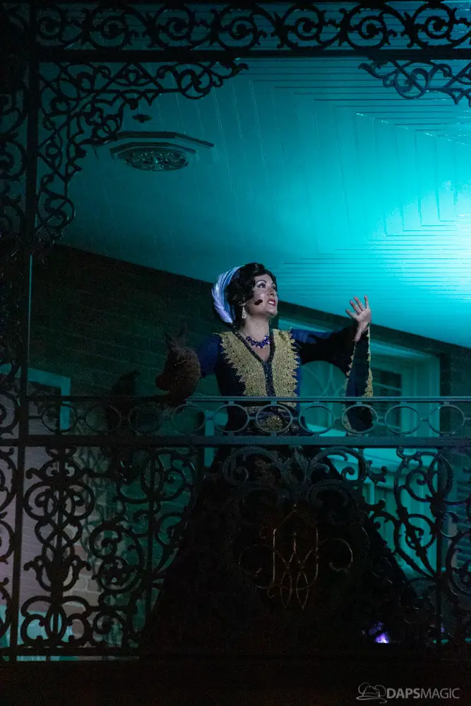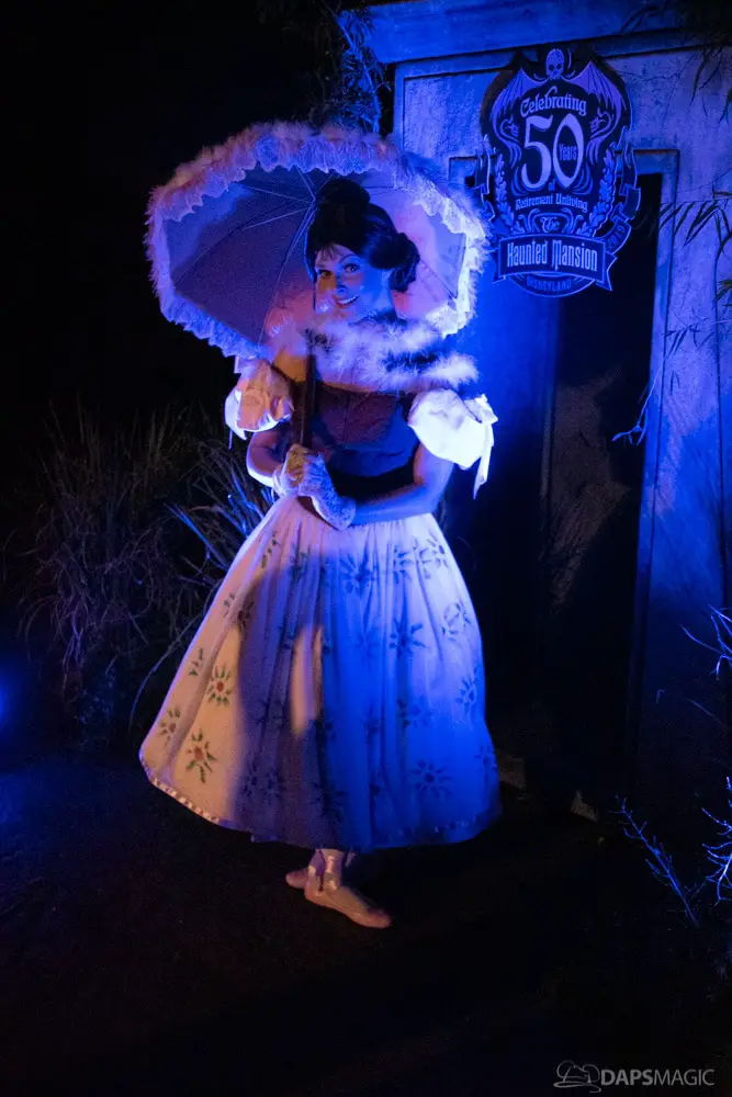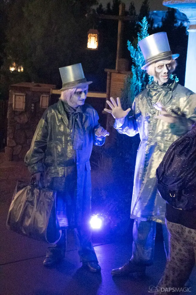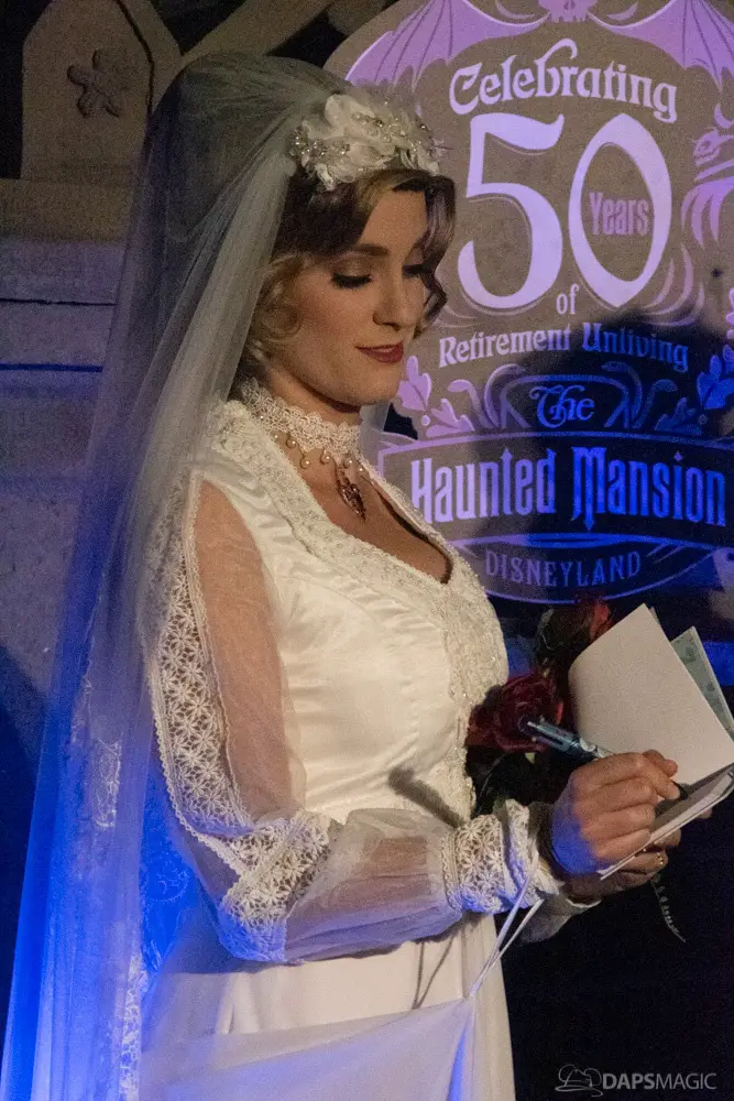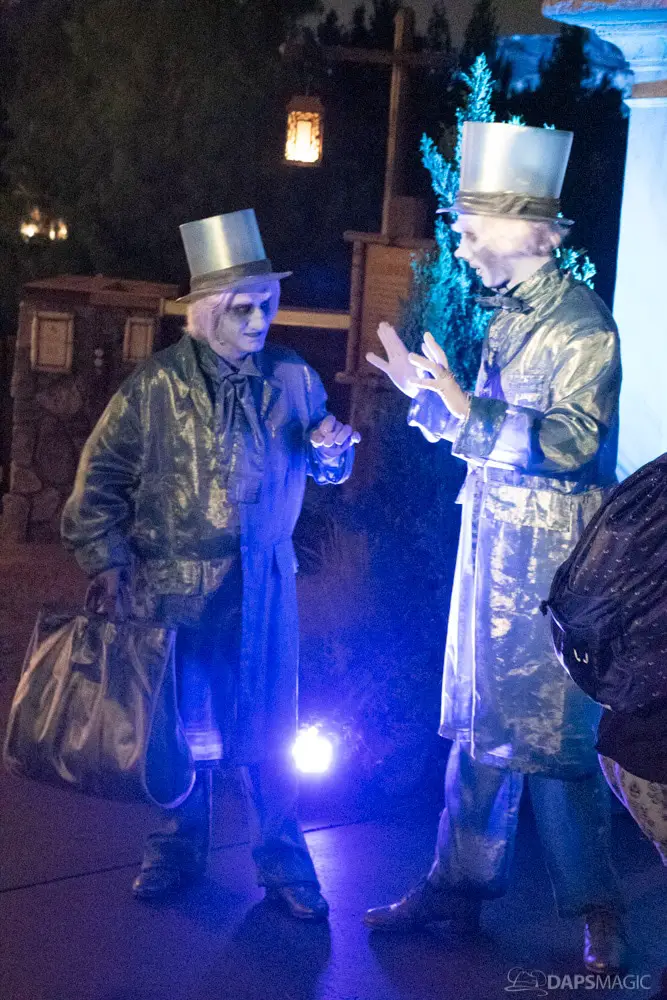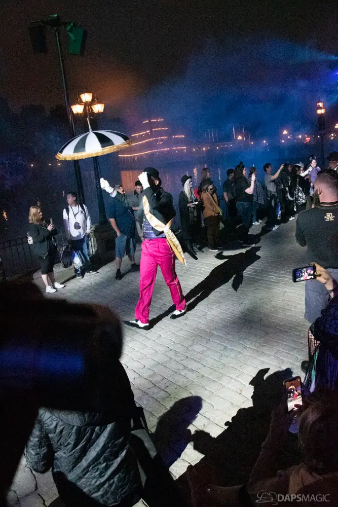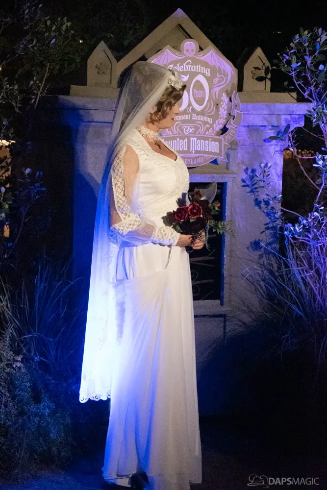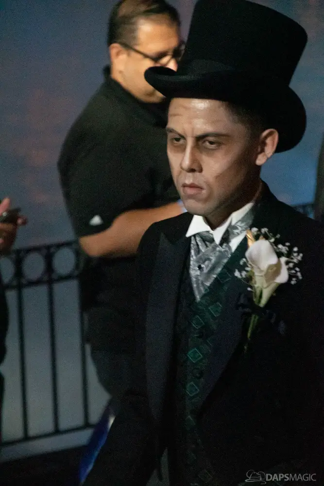Throughout the night were opportunities to watch performances from the Scarolers on the Mark Twain, the Cadaver Dans above Pirates of the Caribbean, and Madame Leota conjuring spirits in the same spot. All of it made for an immersive experience where it really seemed like the ghosts had come out from the Mansion to mingle, just as the Ghost Host described at the beginning. Three photo locations had specific ghost characters of Sally Sadler – the ballerina in the stretching room, the Hitchhiking Ghosts, and Constance Hatchway – the infamous bride. They took time to interact with party-goers and referred to each other for, again, an immersive environment.
