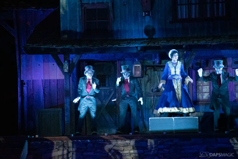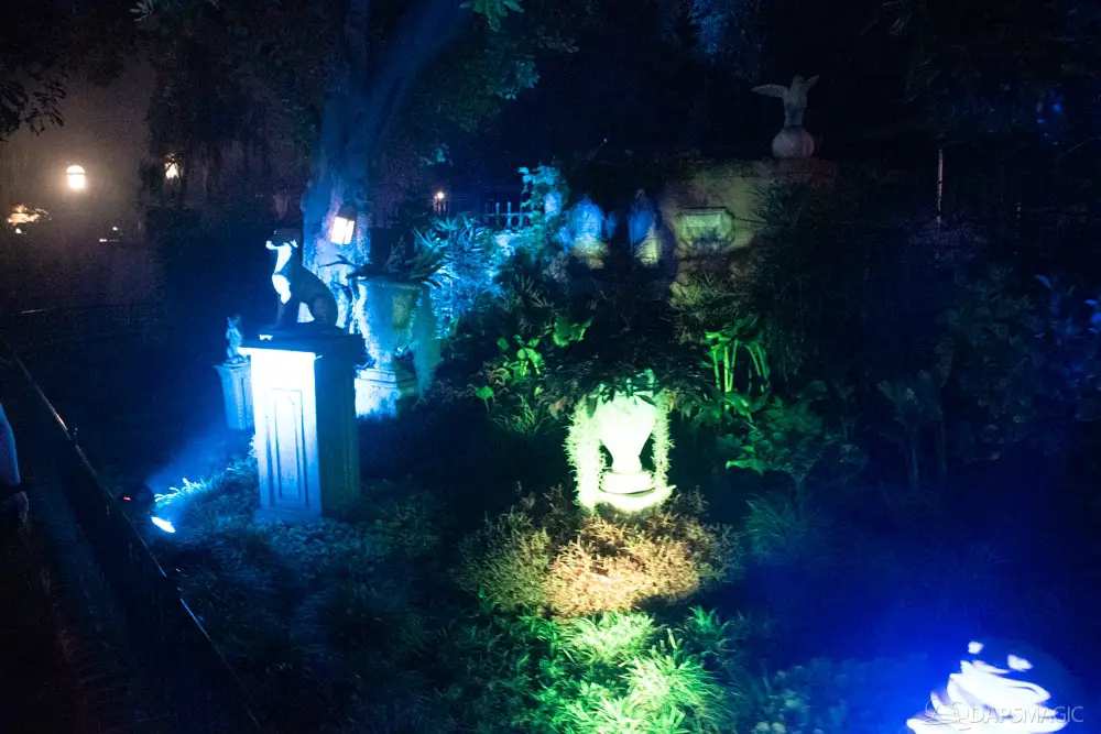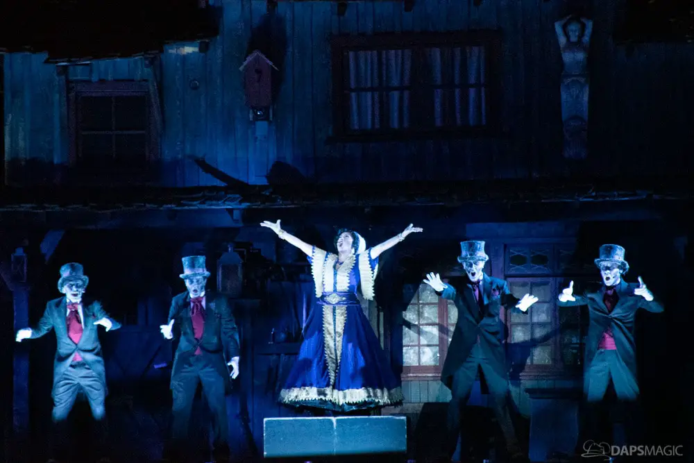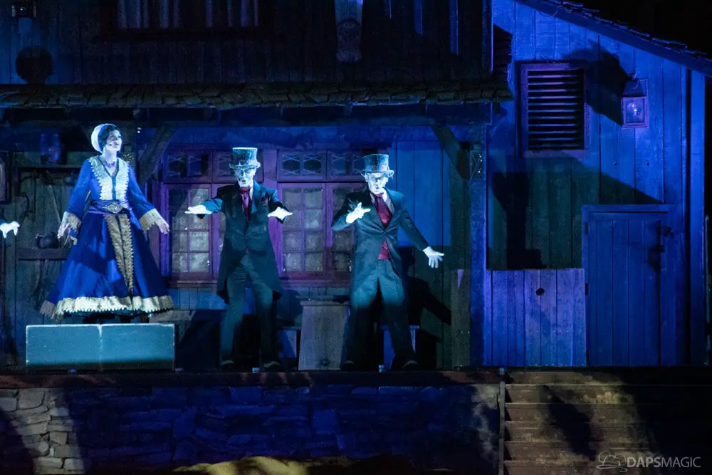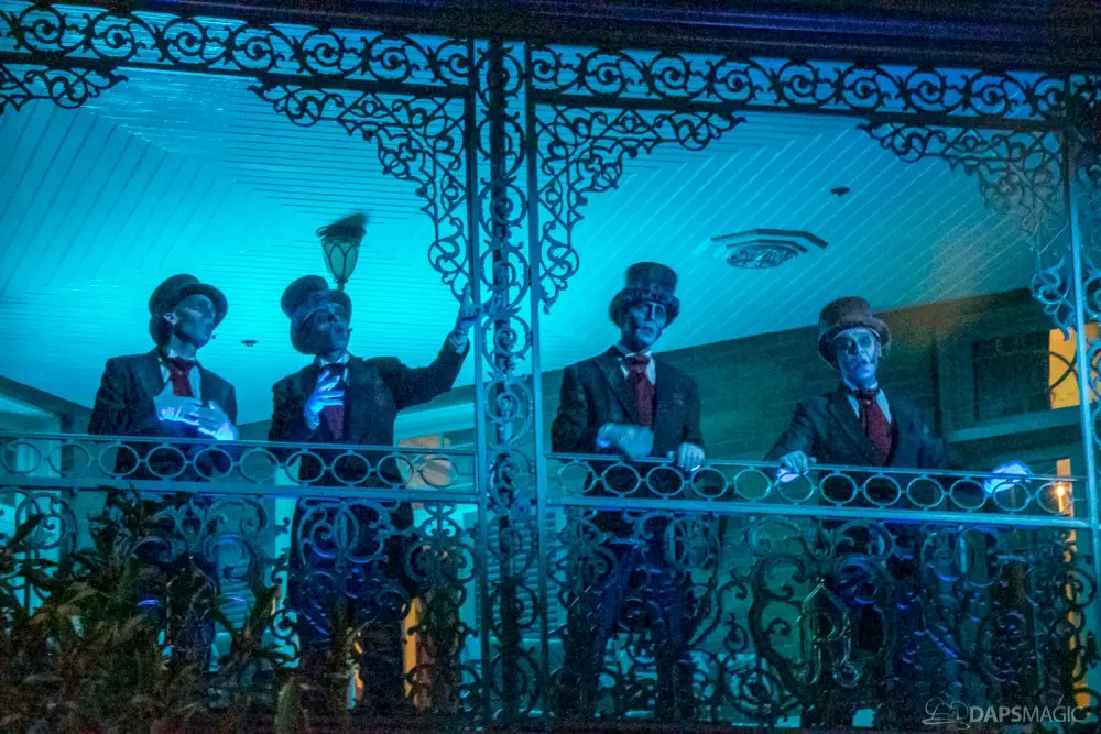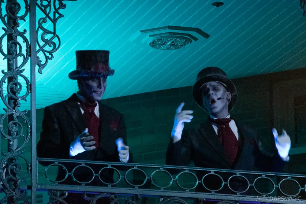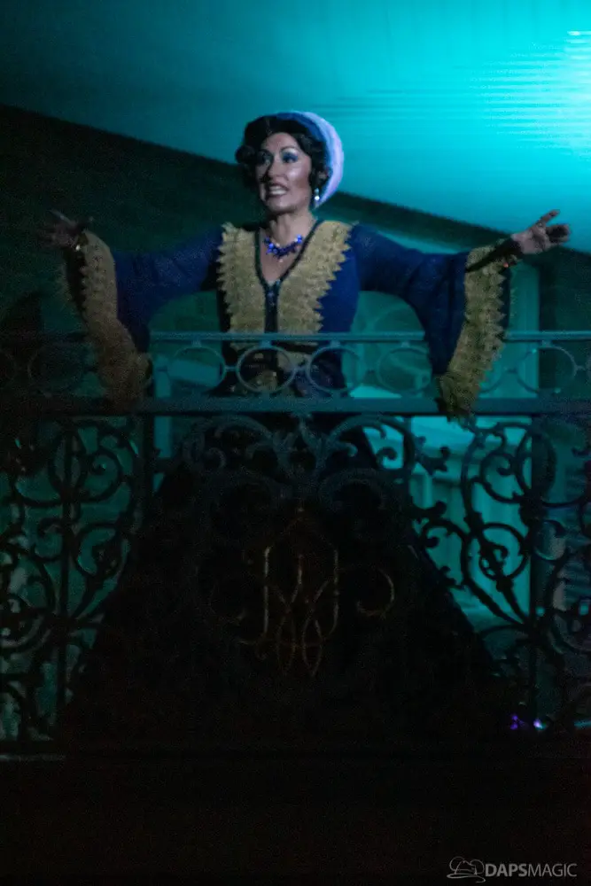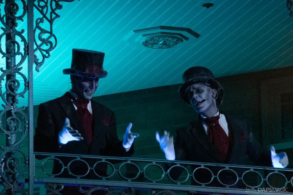 Throughout the night were opportunities to watch performances from the Scarolers on the Mark Twain, the Cadaver Dans above Pirates of the Caribbean, and Madame Leota conjuring spirits in the same spot. All of it made for an immersive experience where it really seemed like the ghosts had come out from the Mansion to mingle, just as the Ghost Host described at the beginning. Three photo locations had specific ghost characters of Sally Sadler – the ballerina in the stretching room, the Hitchhiking Ghosts, and Constance Hatchway – the infamous bride. They took time to interact with party-goers and referred to each other for, again, an immersive environment.