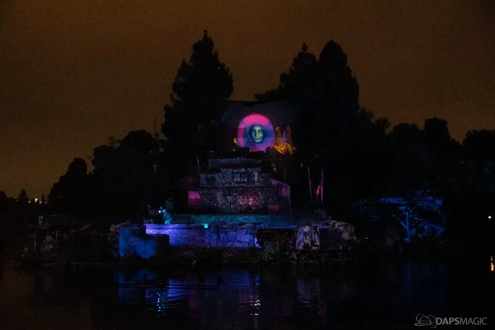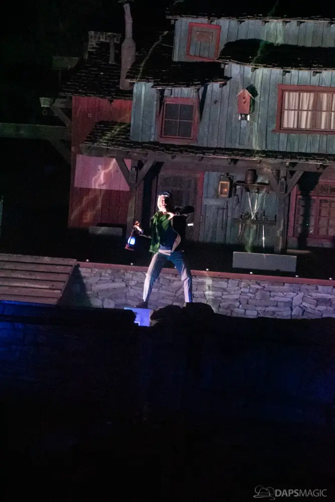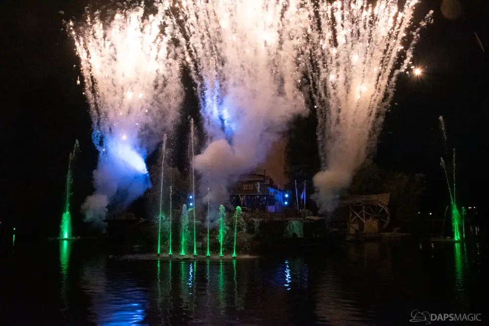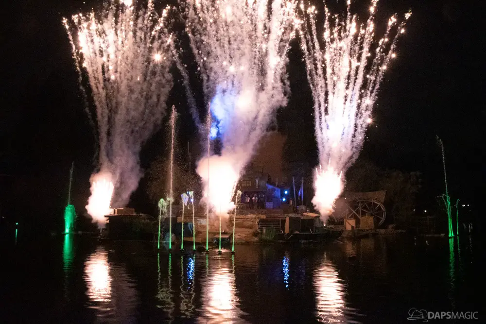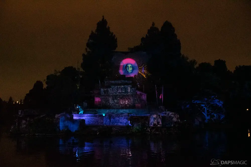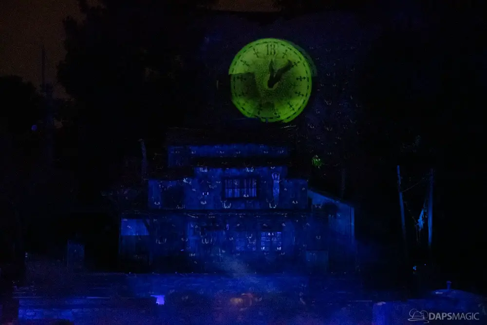 The Ghost Host made announcements throughout the night and started by describing what was going to happen at the start. A little before 1 am, guests were escorted to the Rivers of America viewing area. The 13th Hour show kicked the night off with a very festive showcase of projection, pyro, fountains, and characters from the Mansion dancing and singing.