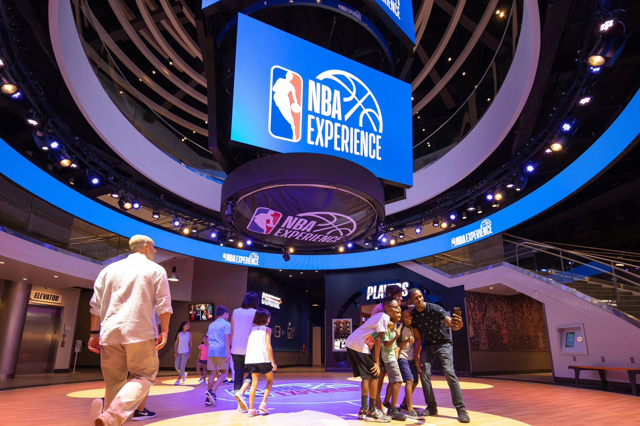 In collaboration with the NBA, Walt Disney Imagineering developed NBA Experience as an immersive, interactive venue. The high-energy environment is packed with 13 different basketball-related activities across 44,000 square feet and two floors.