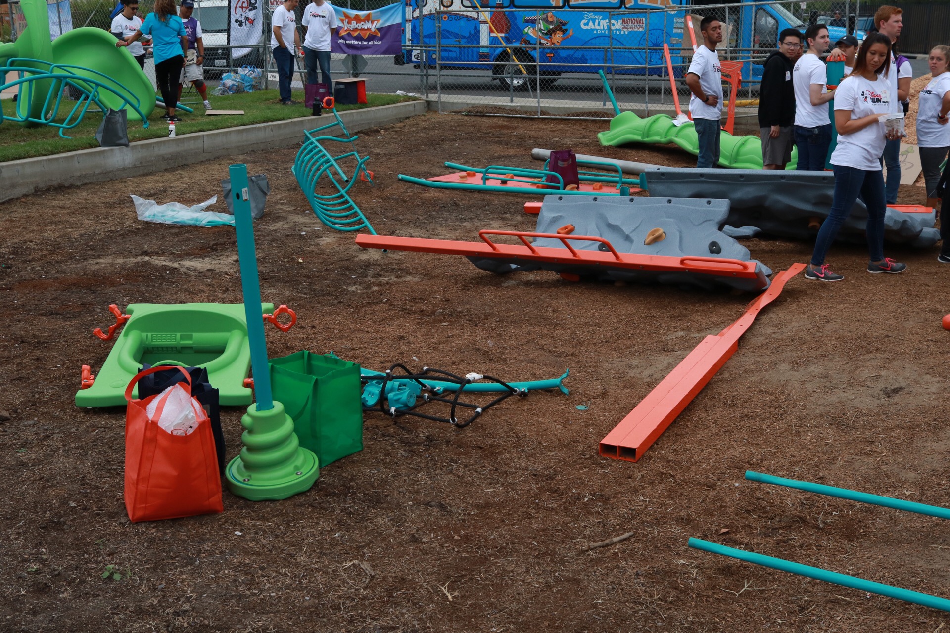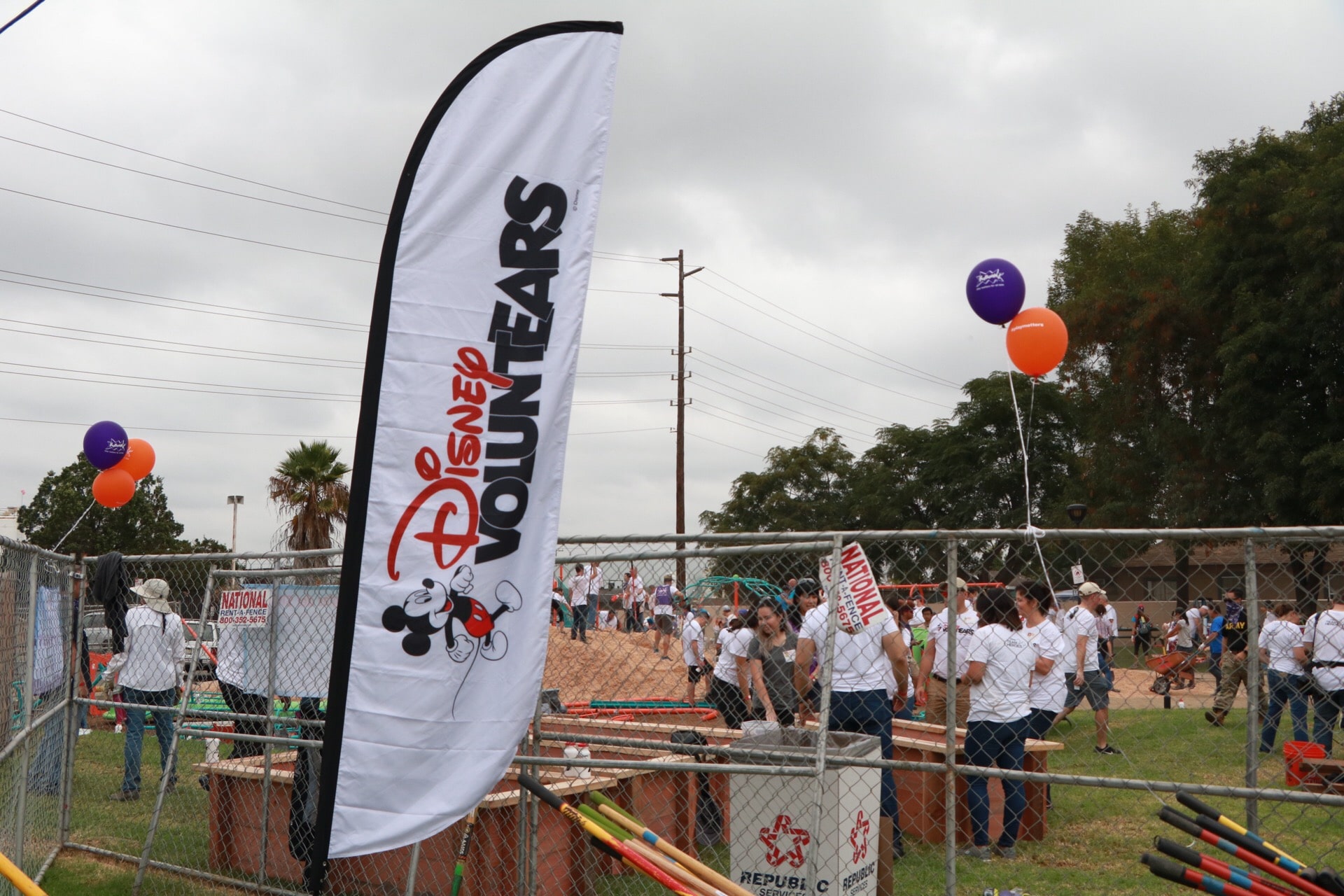 Dozens of Disneyland Resort executives, Disneyland Resort cast members and college program students shuttled over from the resort to participate in the build. Cast Members from SALUTE, a Disney resource program that supports veterans as they transition into new careers, were also there to help with the build. This is the 12th KaBOOM! playground sponsored by Disney and built in Anaheim. In 2016, Disney made a commitment to build five more playgrounds, and this was the last playground of that commitment.