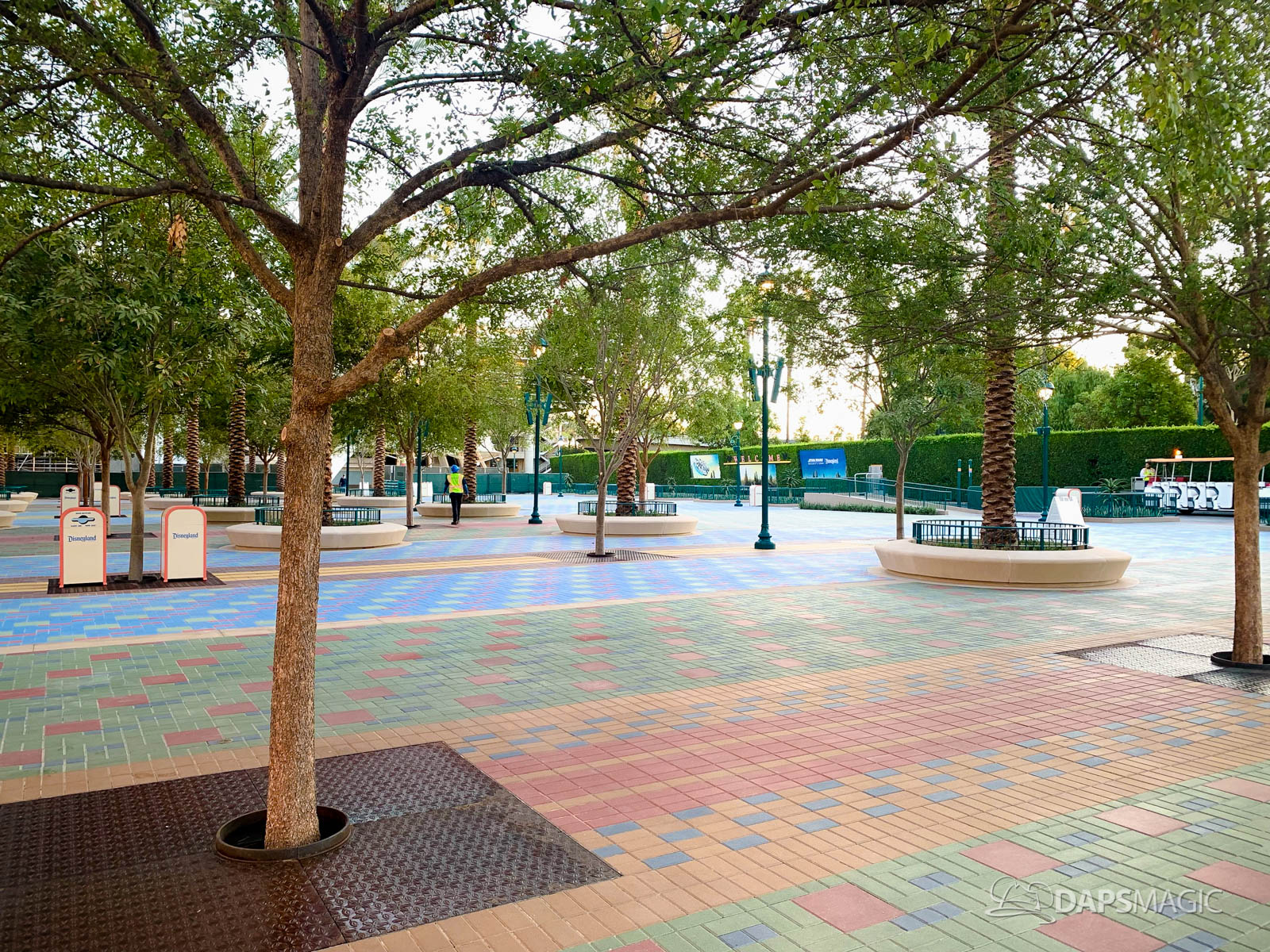 The new bridge spans Magic Way and is 174-feet wide. It then leads to a short walkway to the Downtown Disney District and then Disneyland Resort theme parks. Along with the new bridge that is now open, a new shaded outdoor entry plaza has been opened for guests entering the Resort. It is found between both parking structures near the security and tram entry area. The new Pixar Pals parking structure adds more than 5,000 new parking spots to the Disneyland Resort. There is also digital signage around to help guide drivers around the Disneyland Resort area.