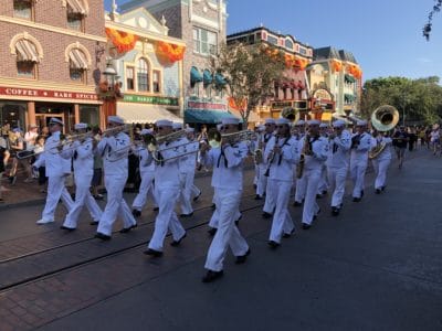 Soon after, we headed to Main Street where the Navy Band was going to march. It was great to see them perform! Then we watched the Disneyland Band perform in Town Square. They played a great ‘Tangled’ medley, which I had heard before from a distance, but it was great to hear it up close.
