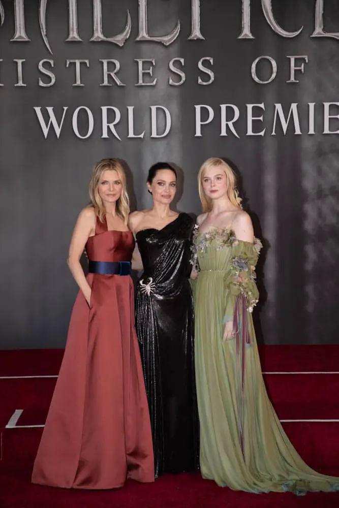 HOLLYWOOD, CALIFORNIA – SEPTEMBER 30: (L-R) Actors Michelle Pfeiffer, Angelina Jolie, and Elle Fanning attend the World Premiere of Disney’s “Maleficent: Mistress of Evil” at the El Capitan Theatre on September 30, 2019 in Hollywood, California. (Photo by Alberto E. Rodriguez/Getty Images for Disney)