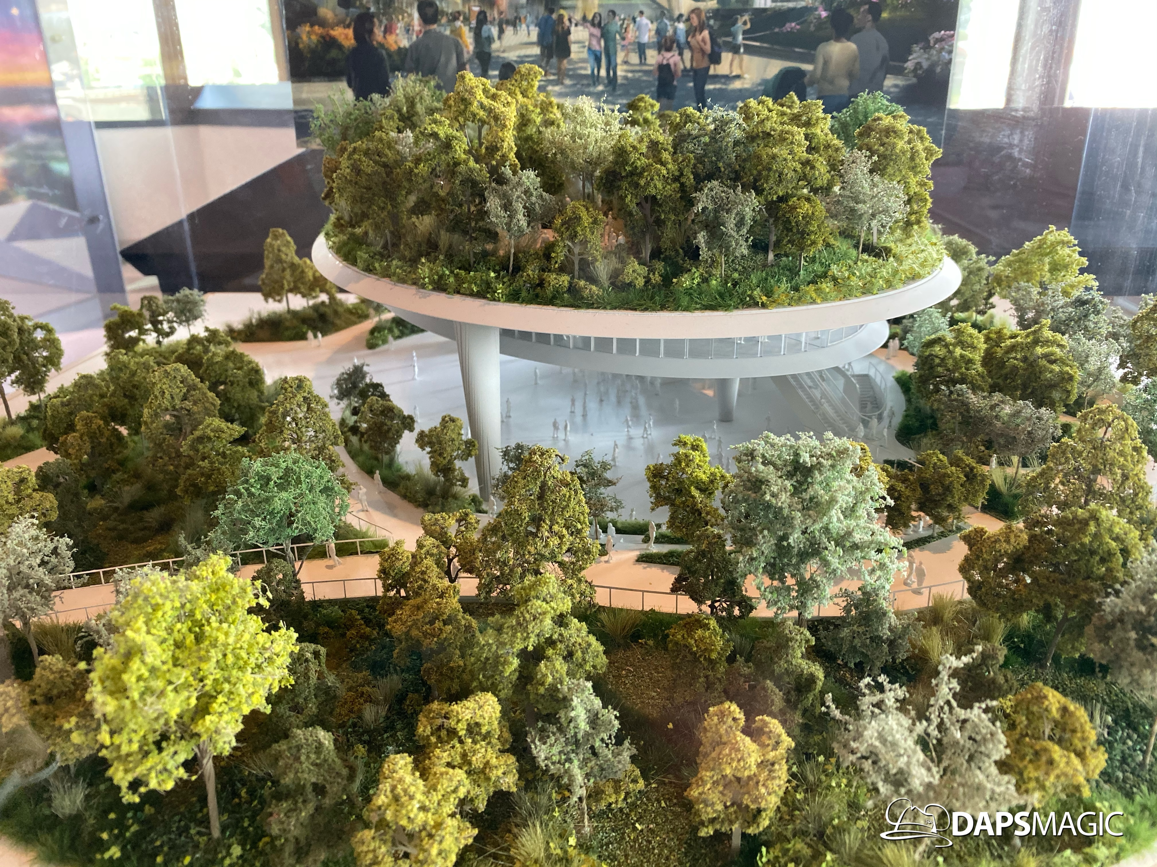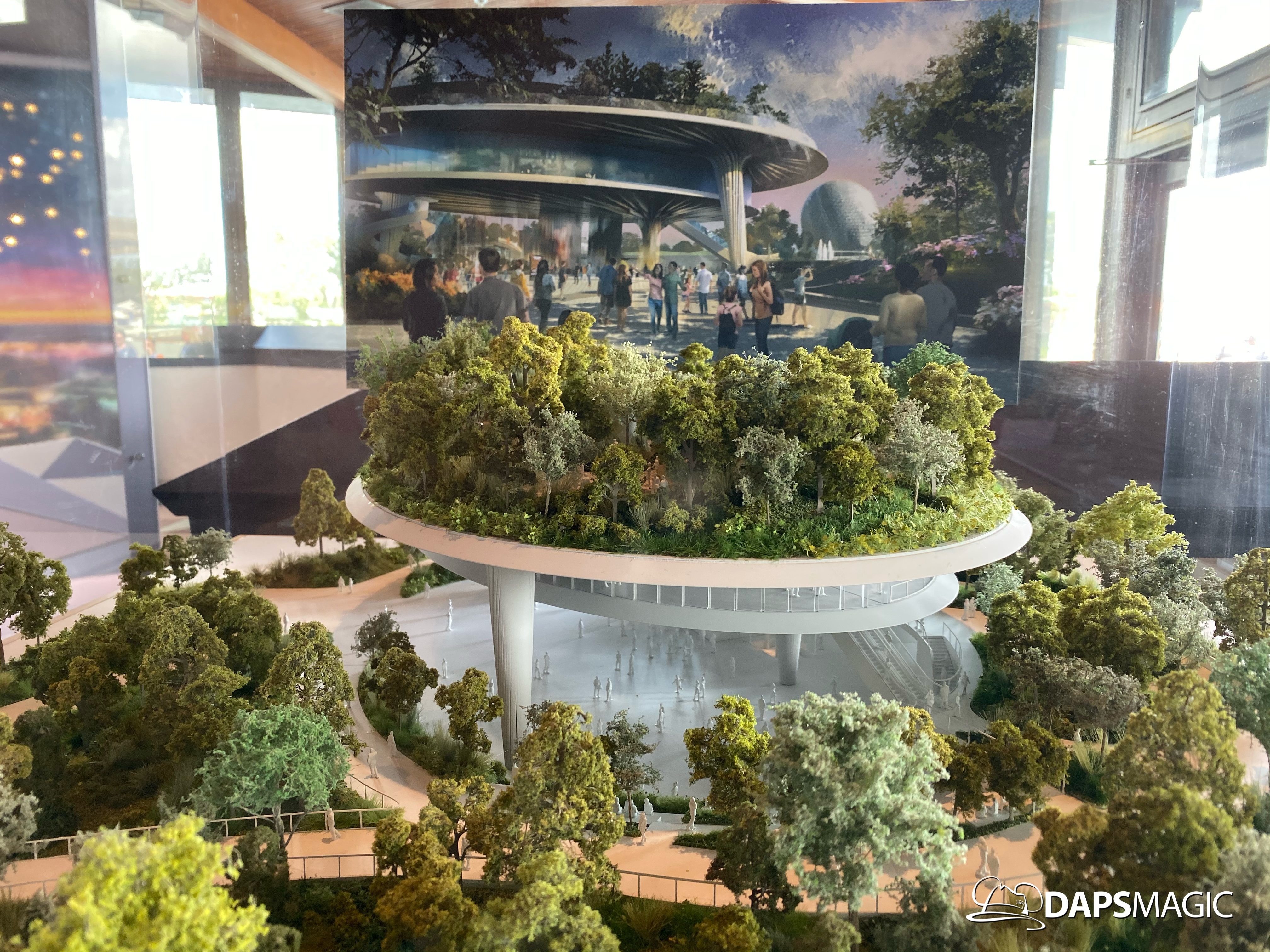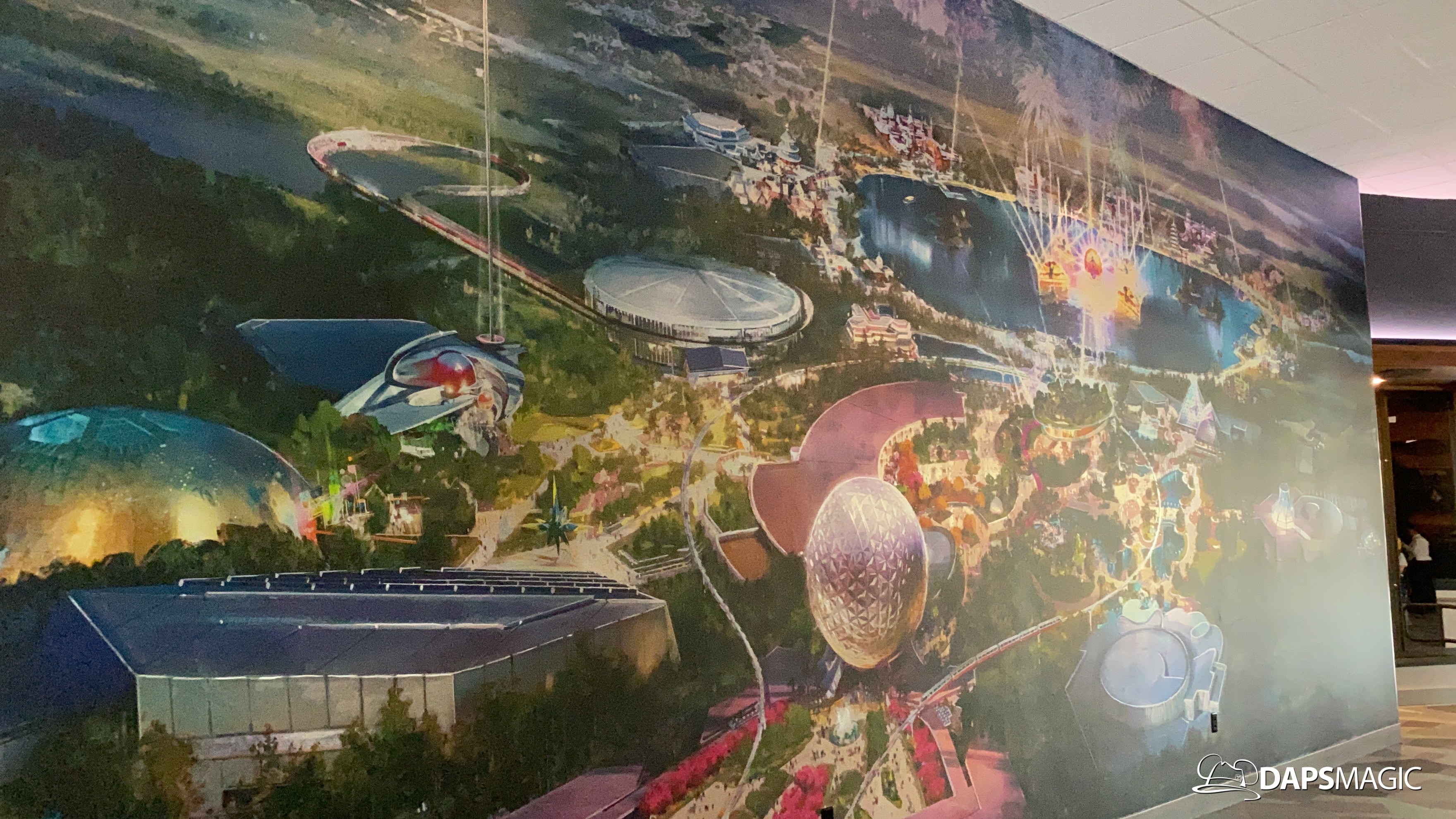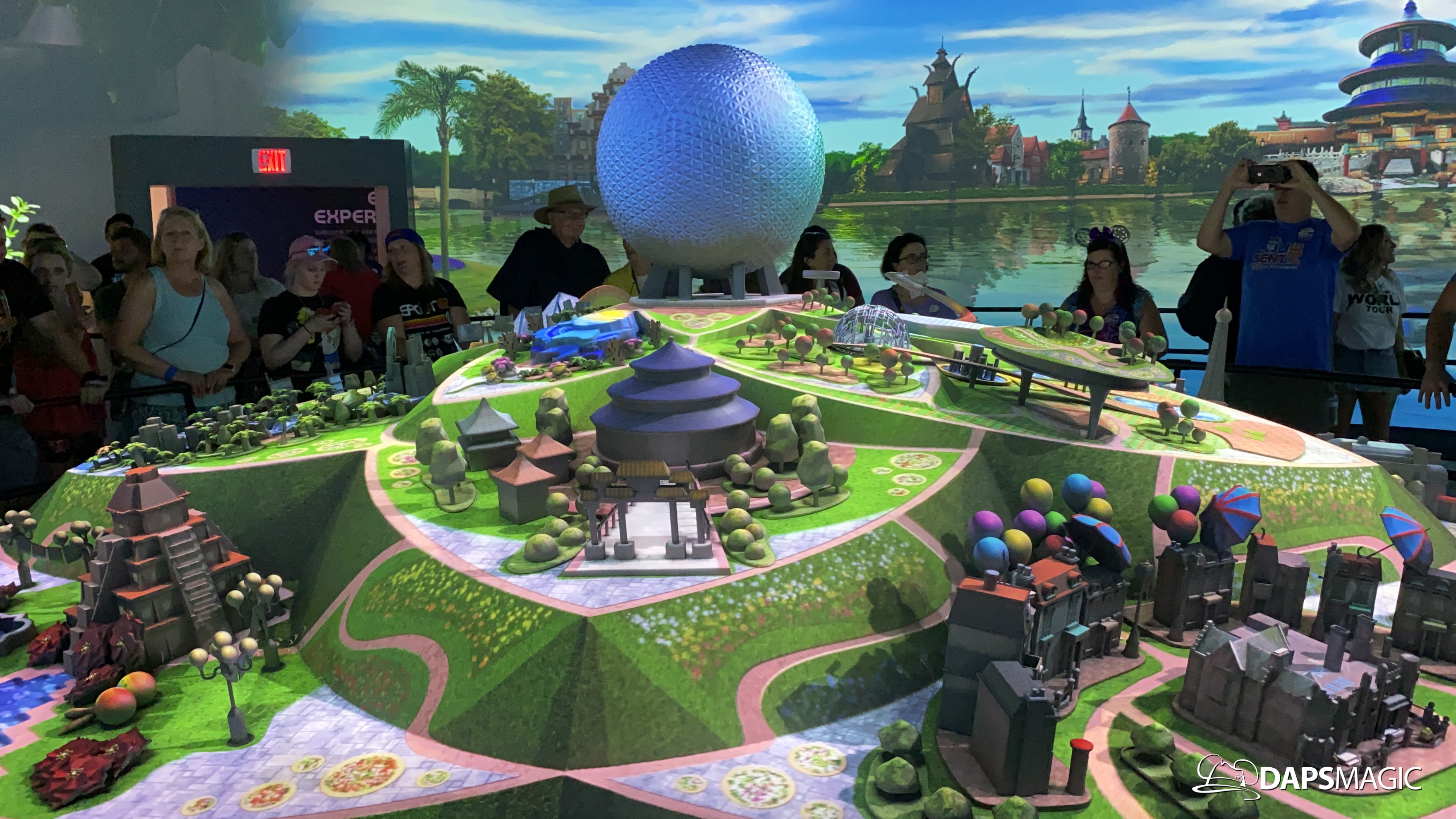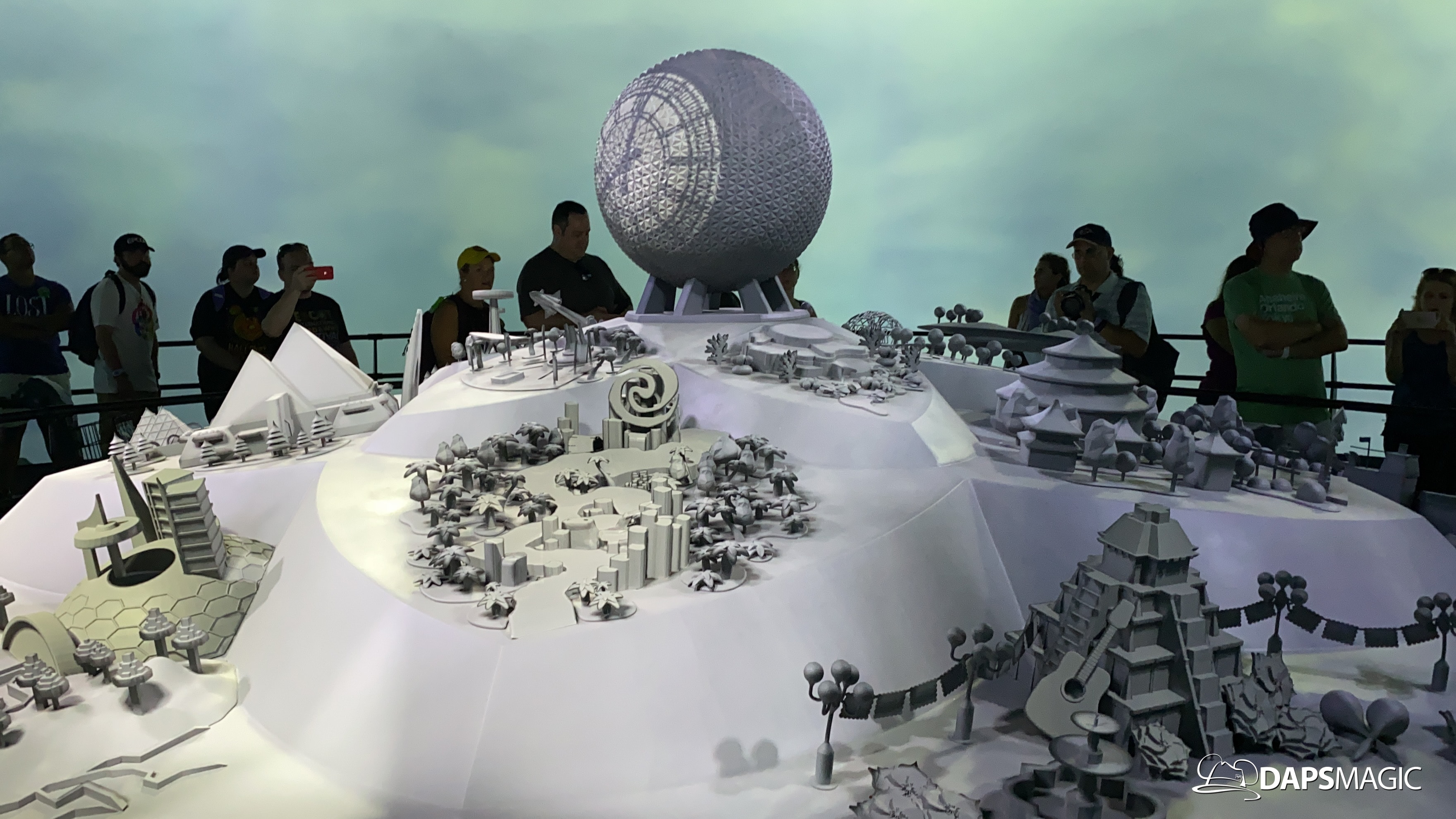 Outside of the preview room there are other exhibits and photo locations to be found. On the back wall of the building, a giant map of what Epcot’s future will generally look like can be found. Cast Members are on hand to answer questions as well. There are also props and models to be found in display cases for different things coming to Epcot.