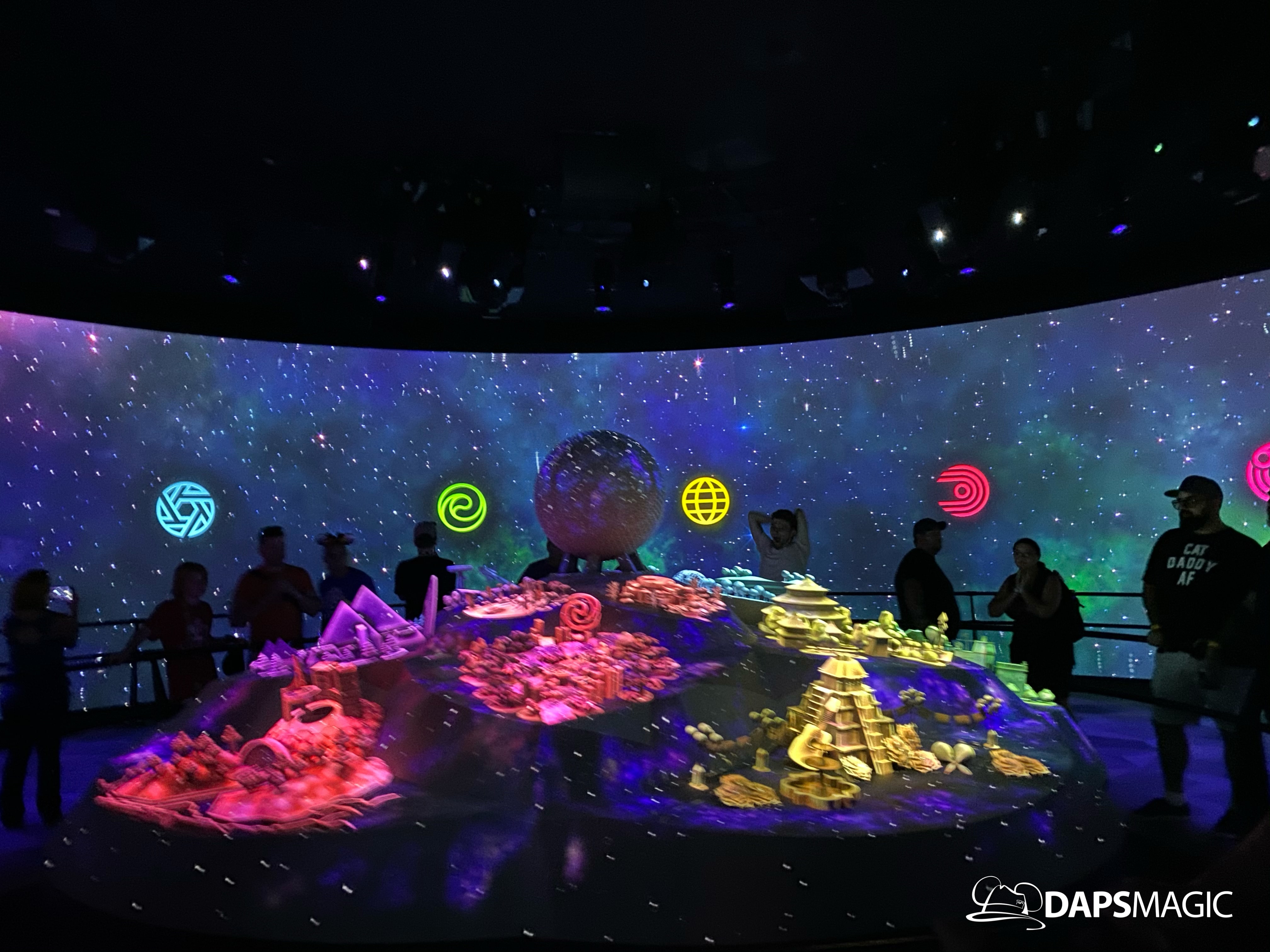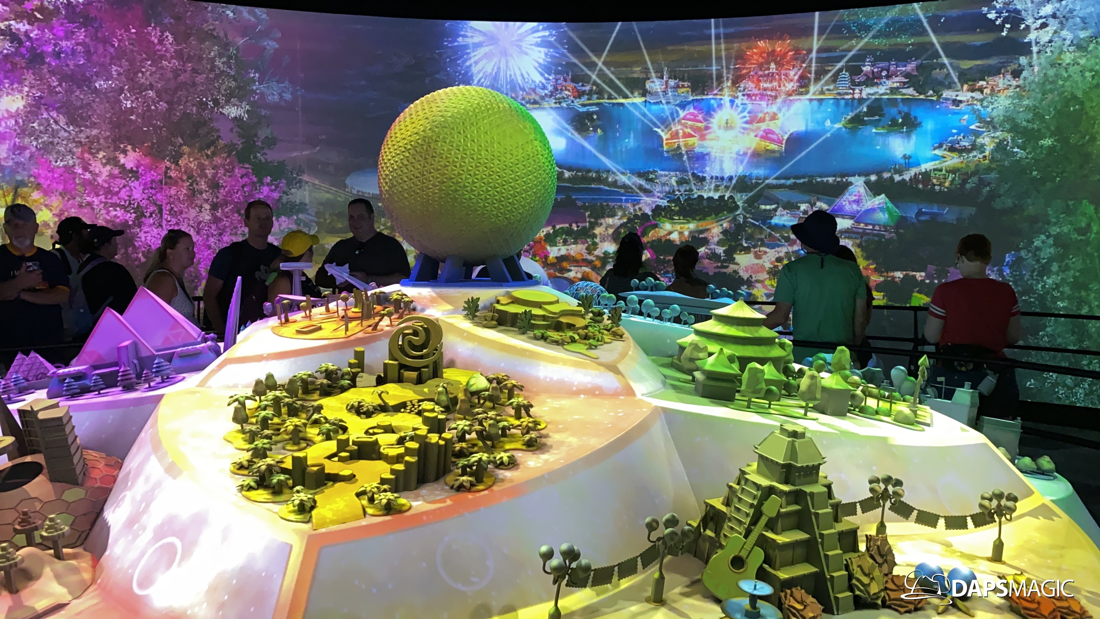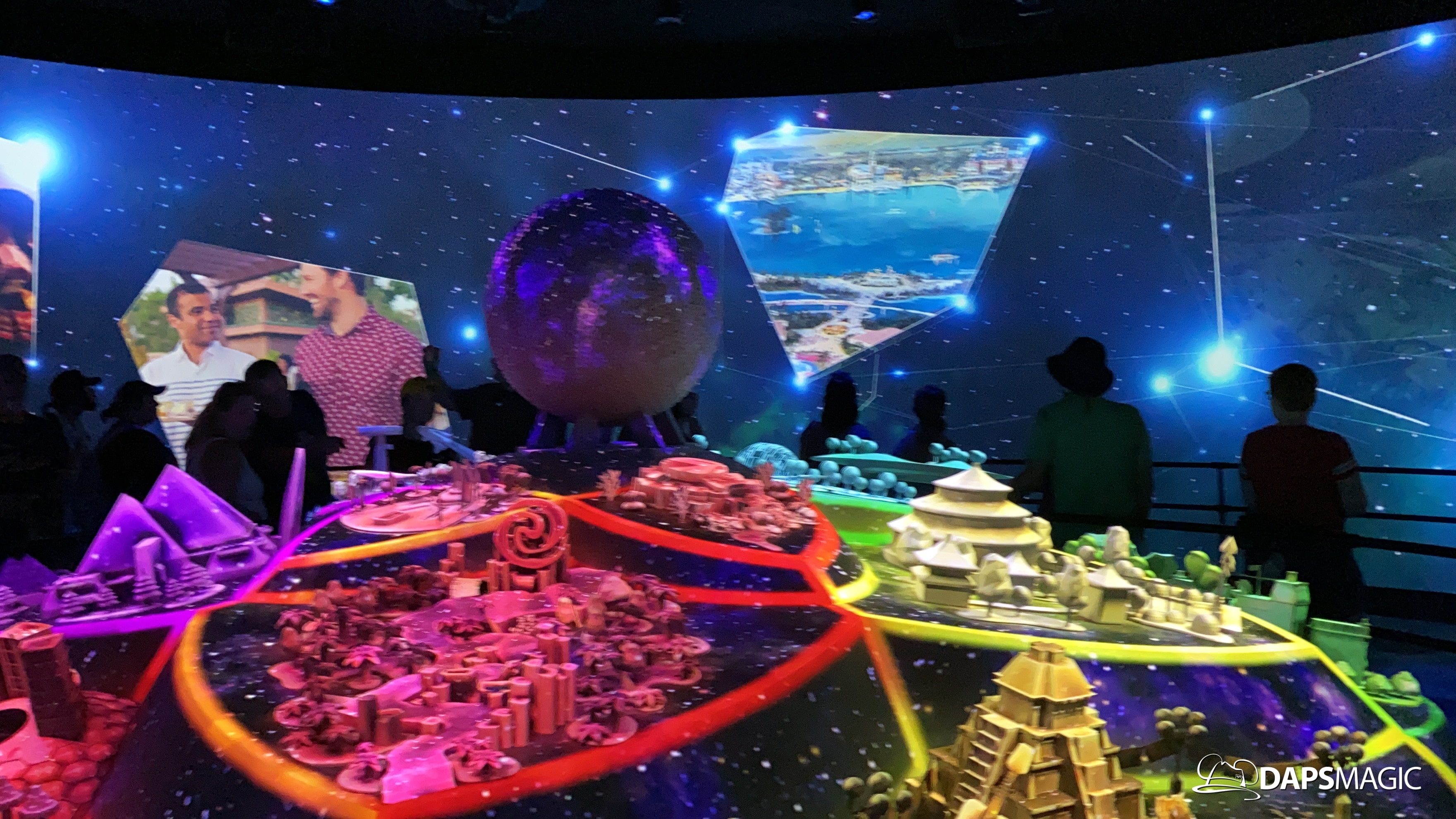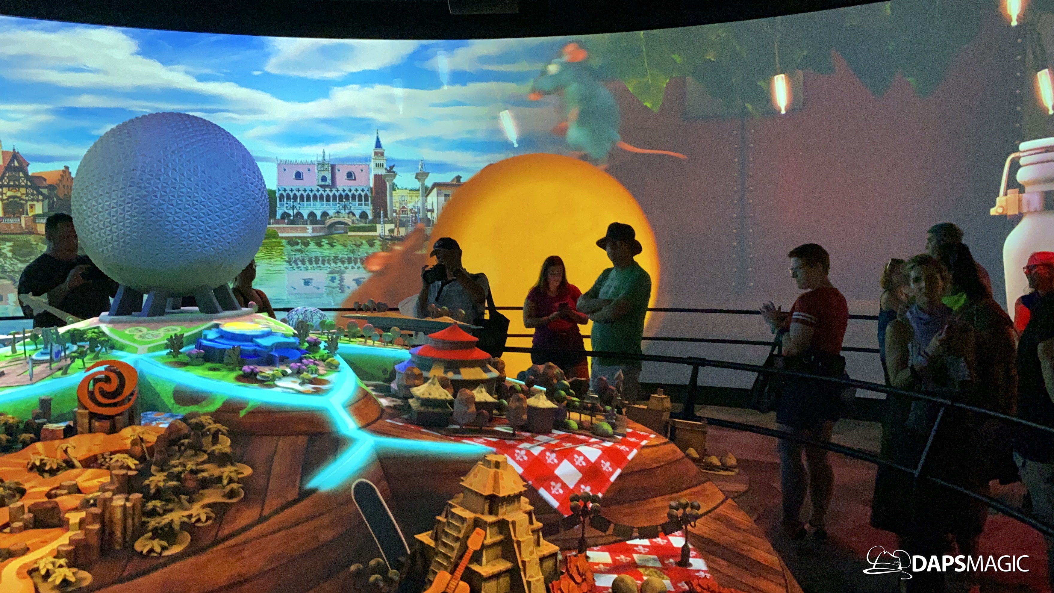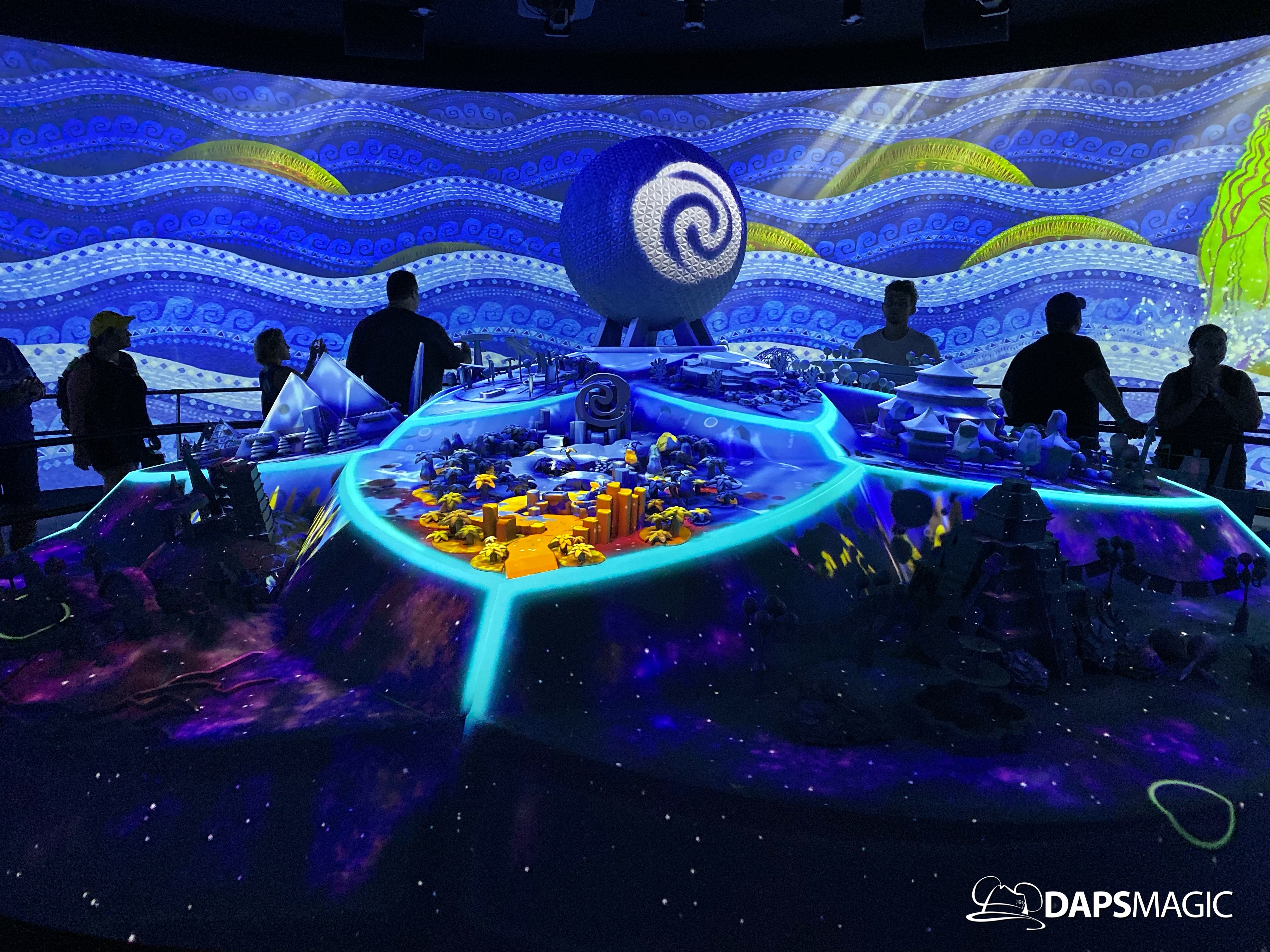 The highlight of this new attraction is a room with a 360 degree screen wrapping around the inside of it. I’m the middle is the Epcot model that was seen at the D23 Expo this summer. A new 12-minute video highlights the enhancements that are on their way to Epcot! The video covers the new neighborhoods, attractions, and entertainment that will be coming to this beloved park. The theme of it all revolves around possibility.