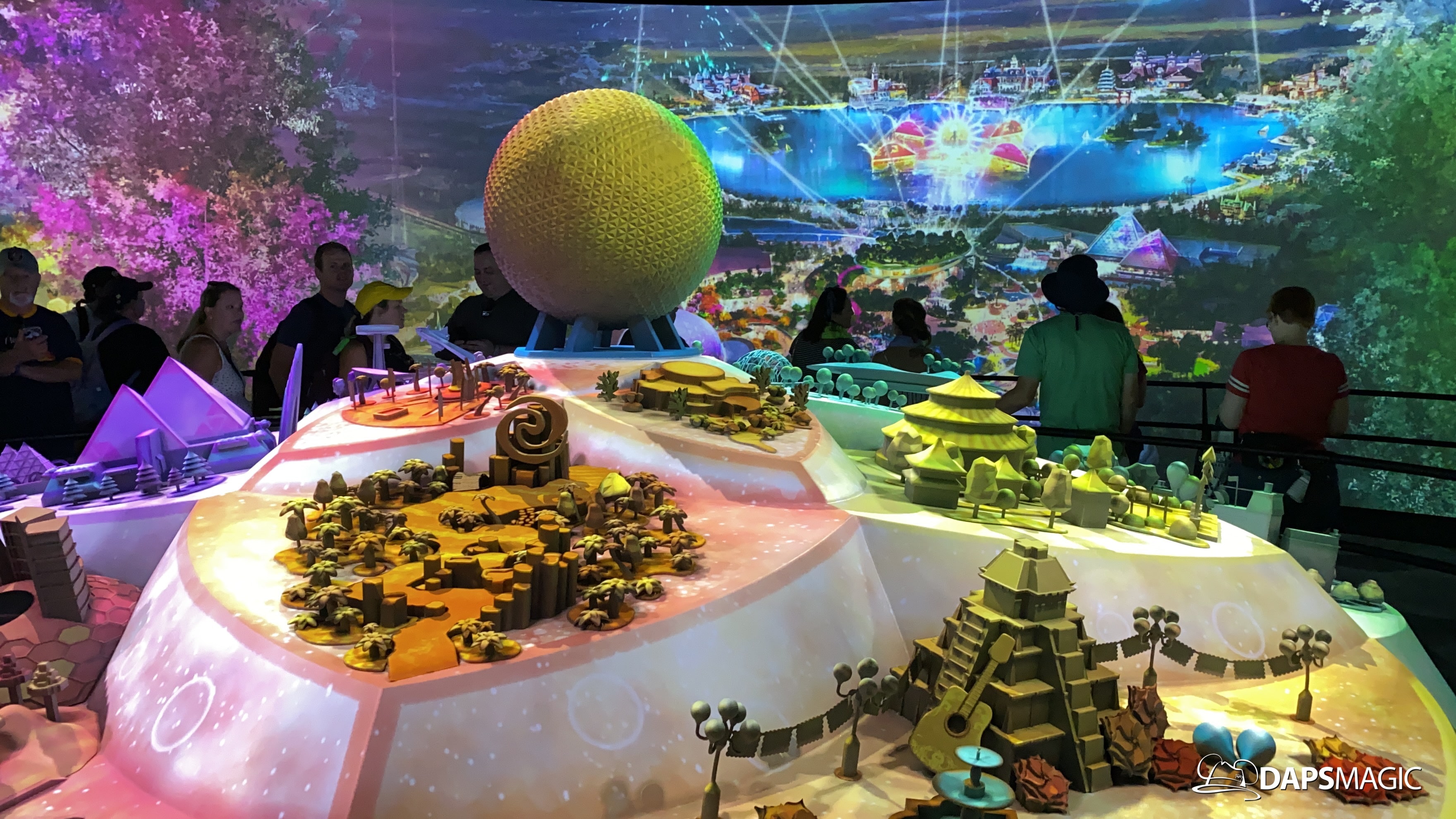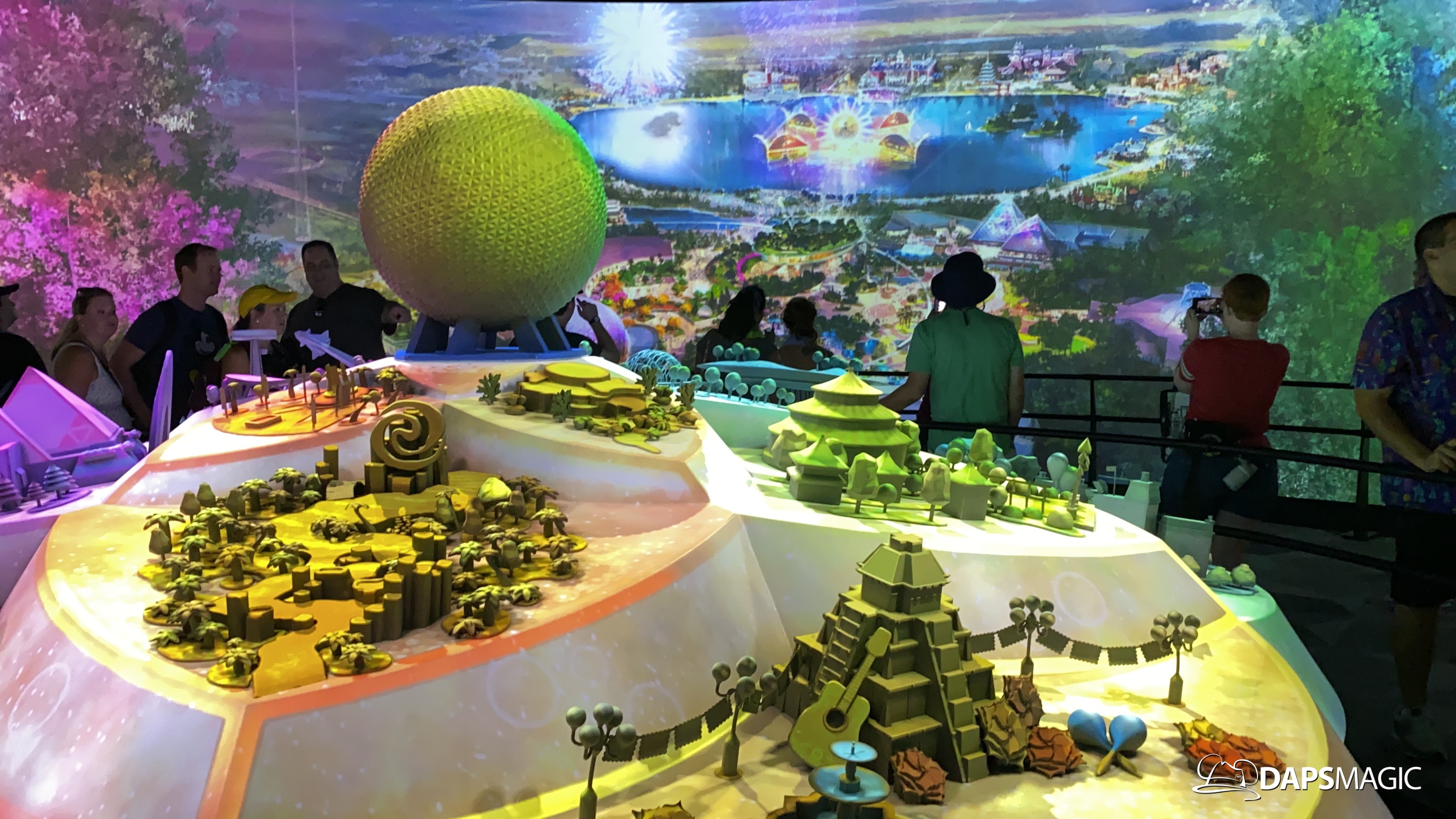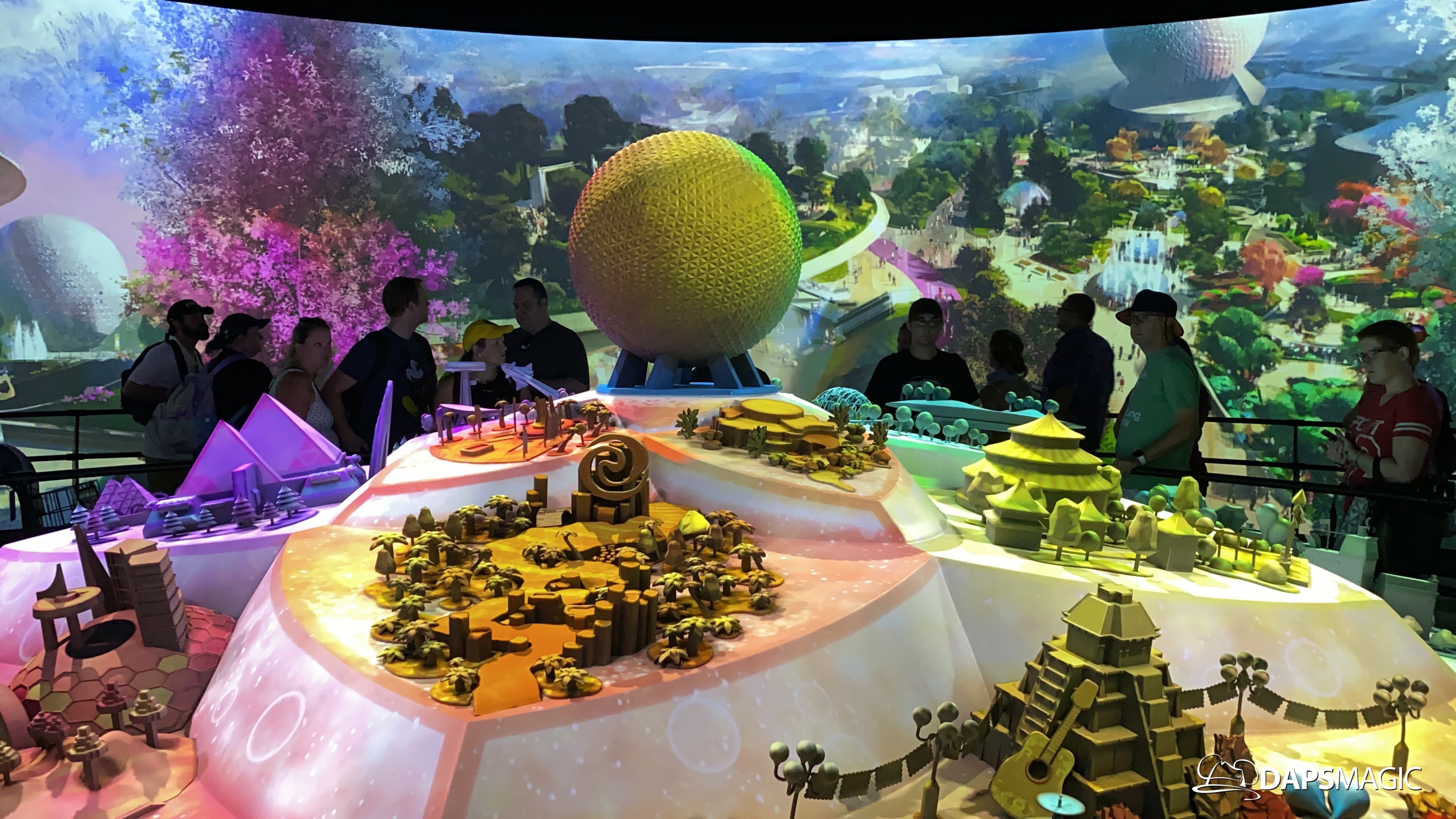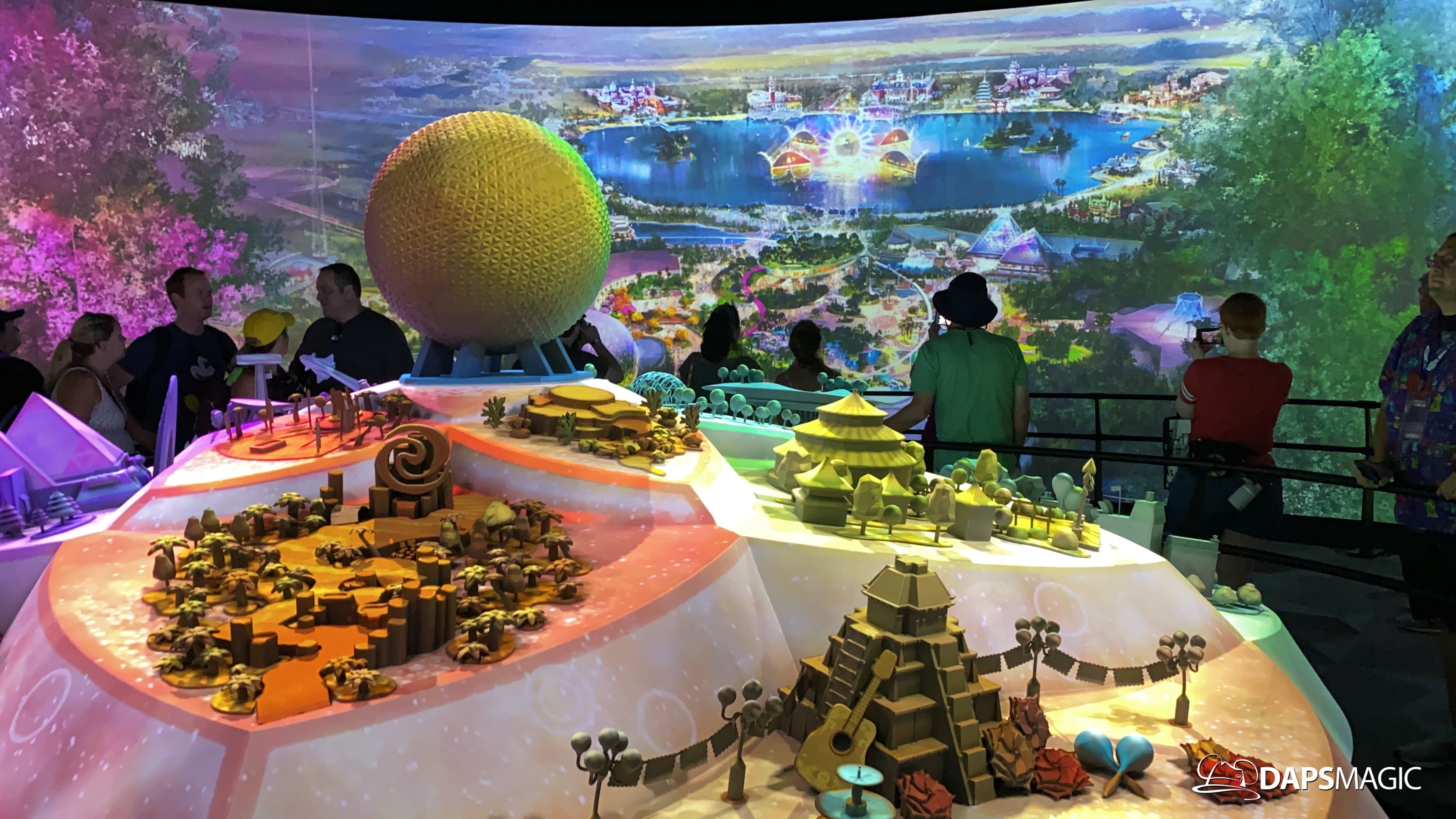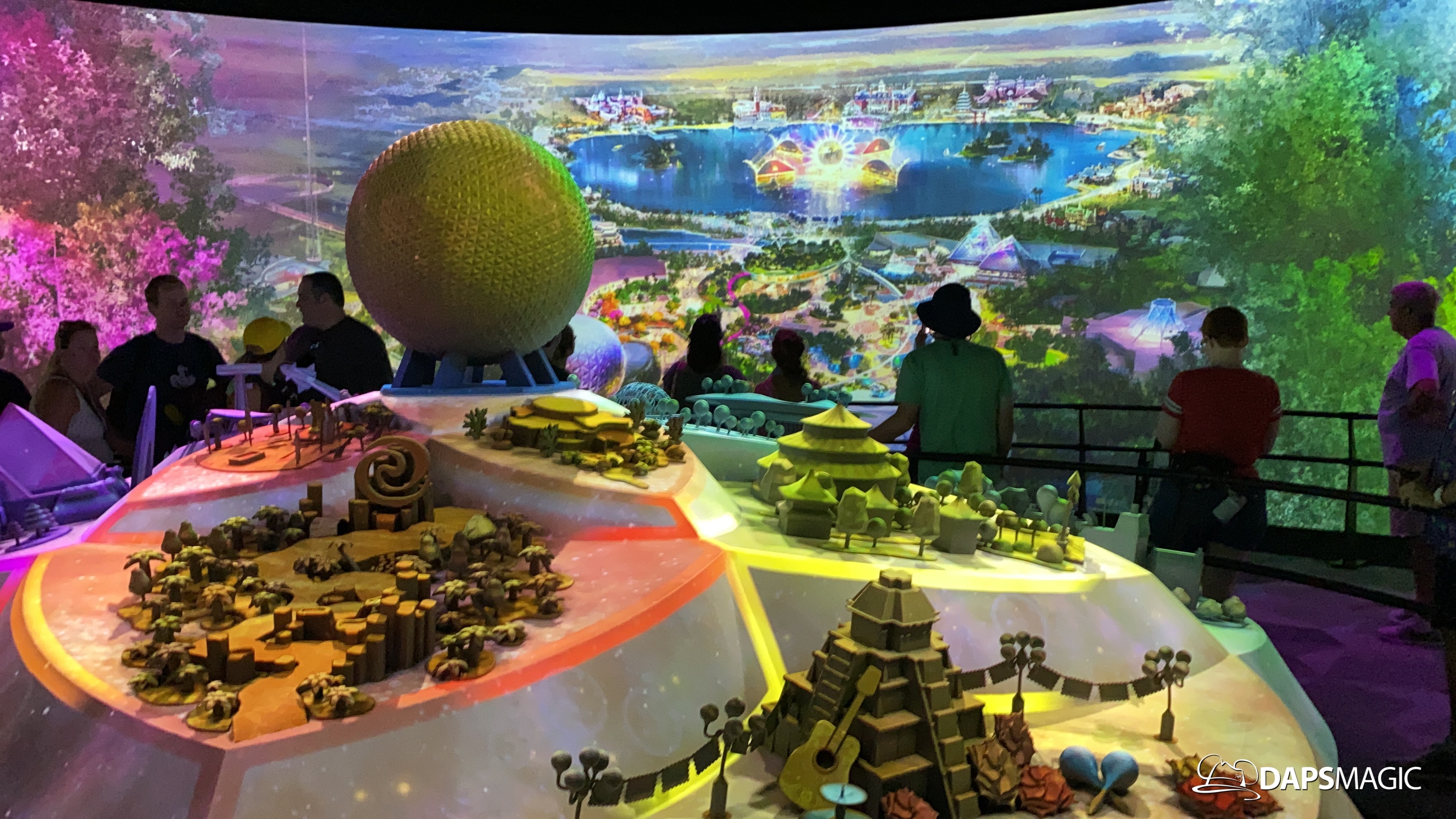 The highlight of this new attraction is a room with a 360 degree screen wrapping around the inside of it. I’m the middle is the Epcot model that was seen at the D23 Expo this summer. A new 12-minute video highlights the enhancements that are on their way to Epcot! The video covers the new neighborhoods, attractions, and entertainment that will be coming to this beloved park. The theme of it all revolves around possibility.