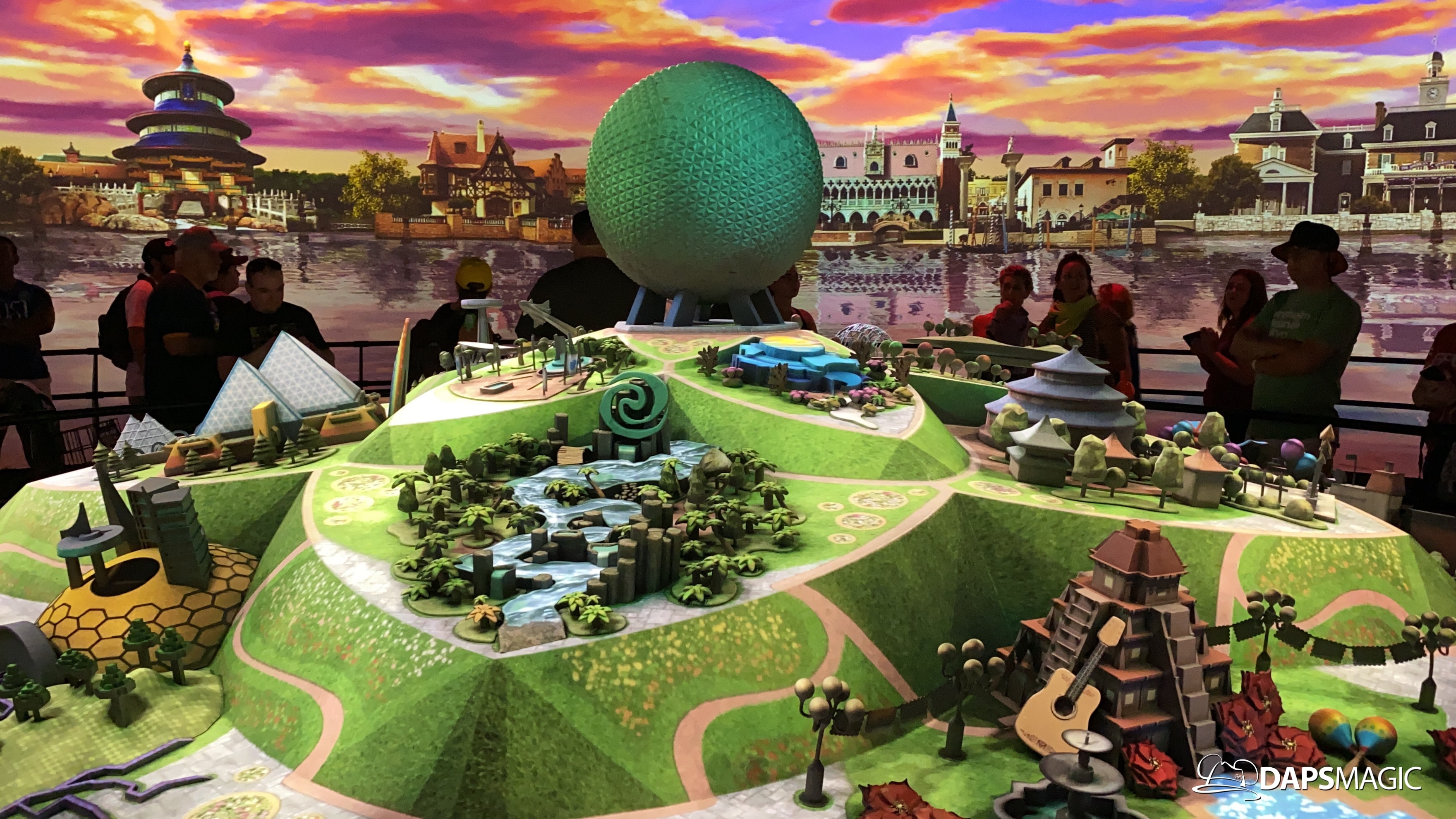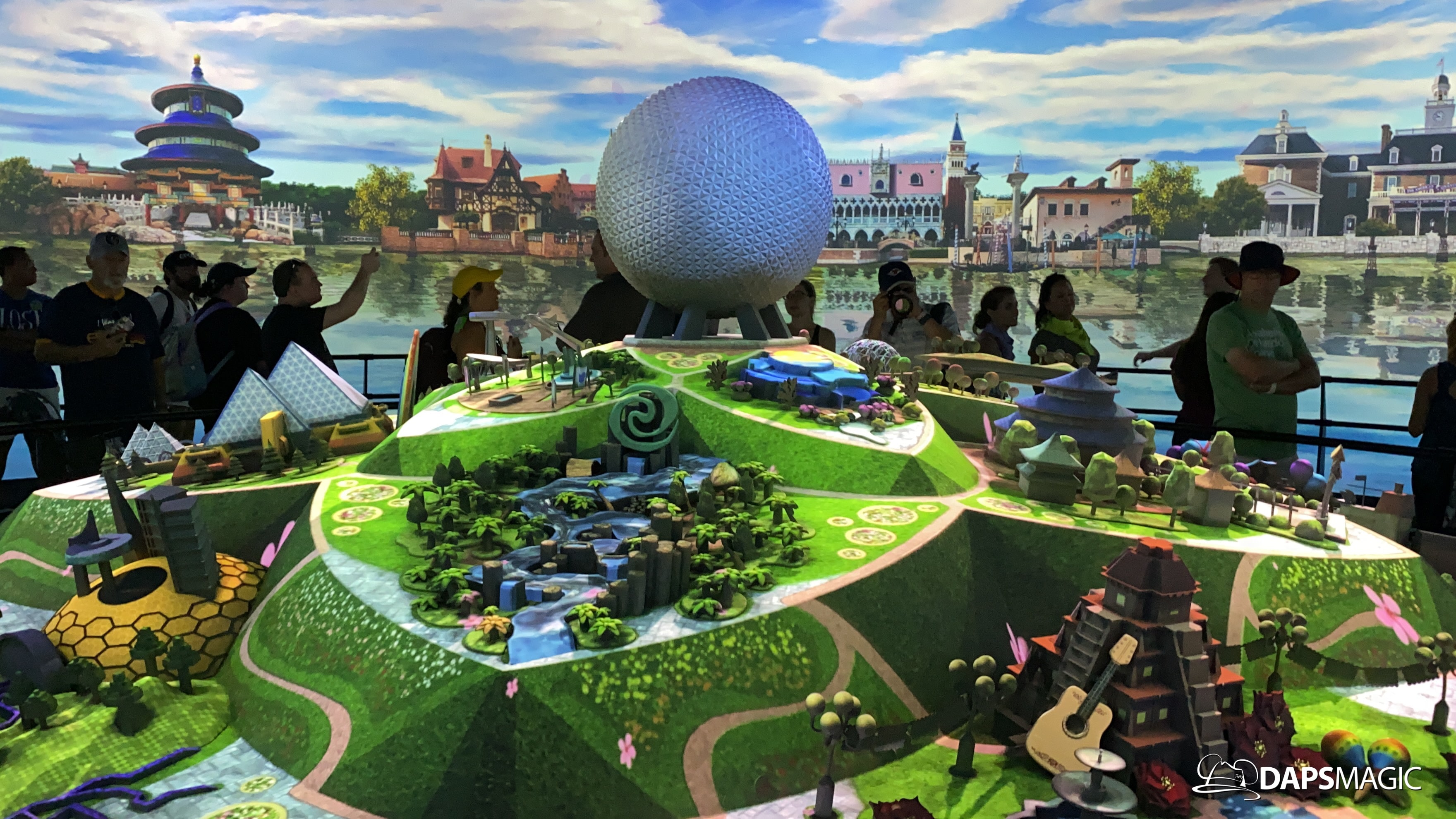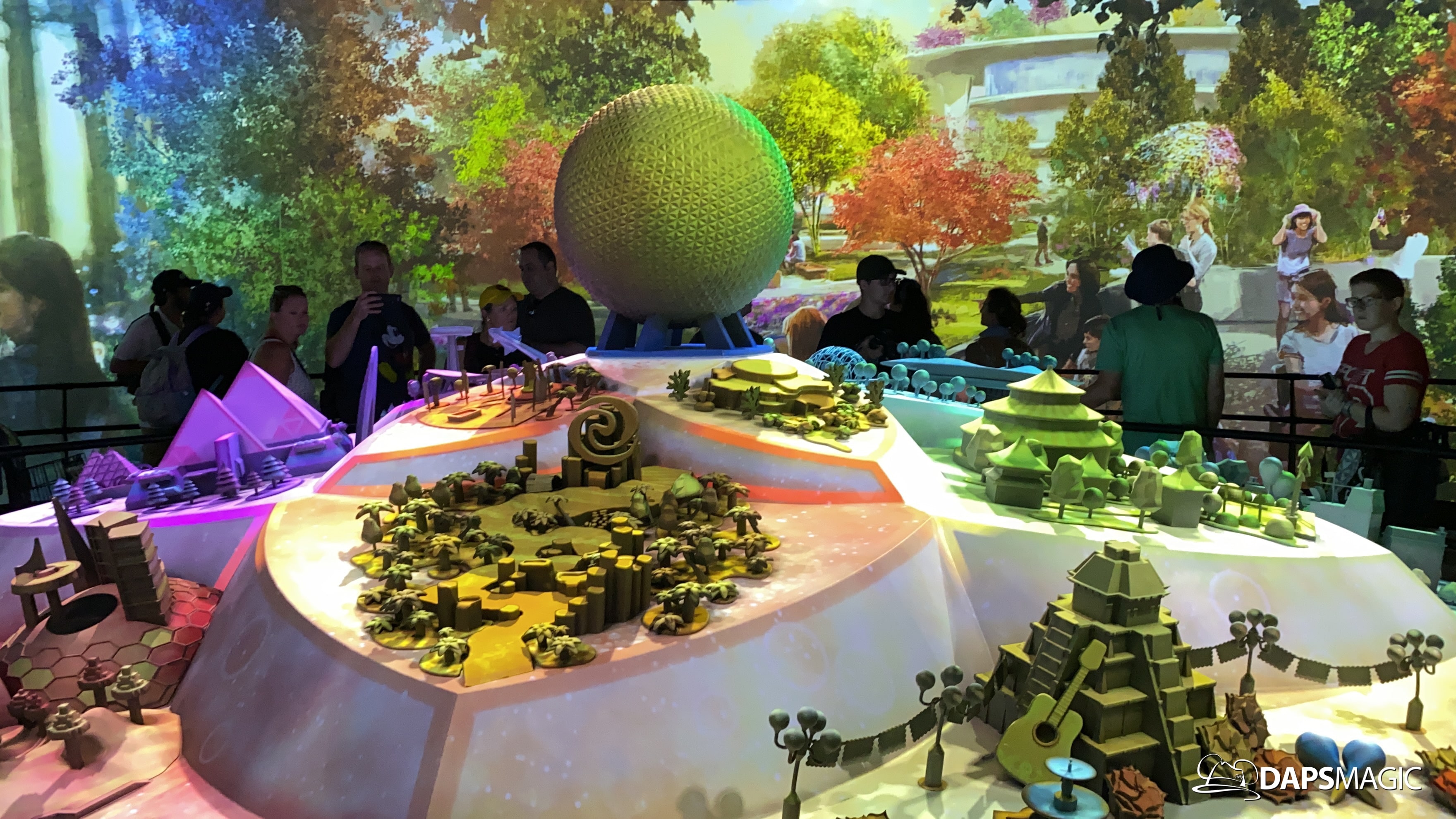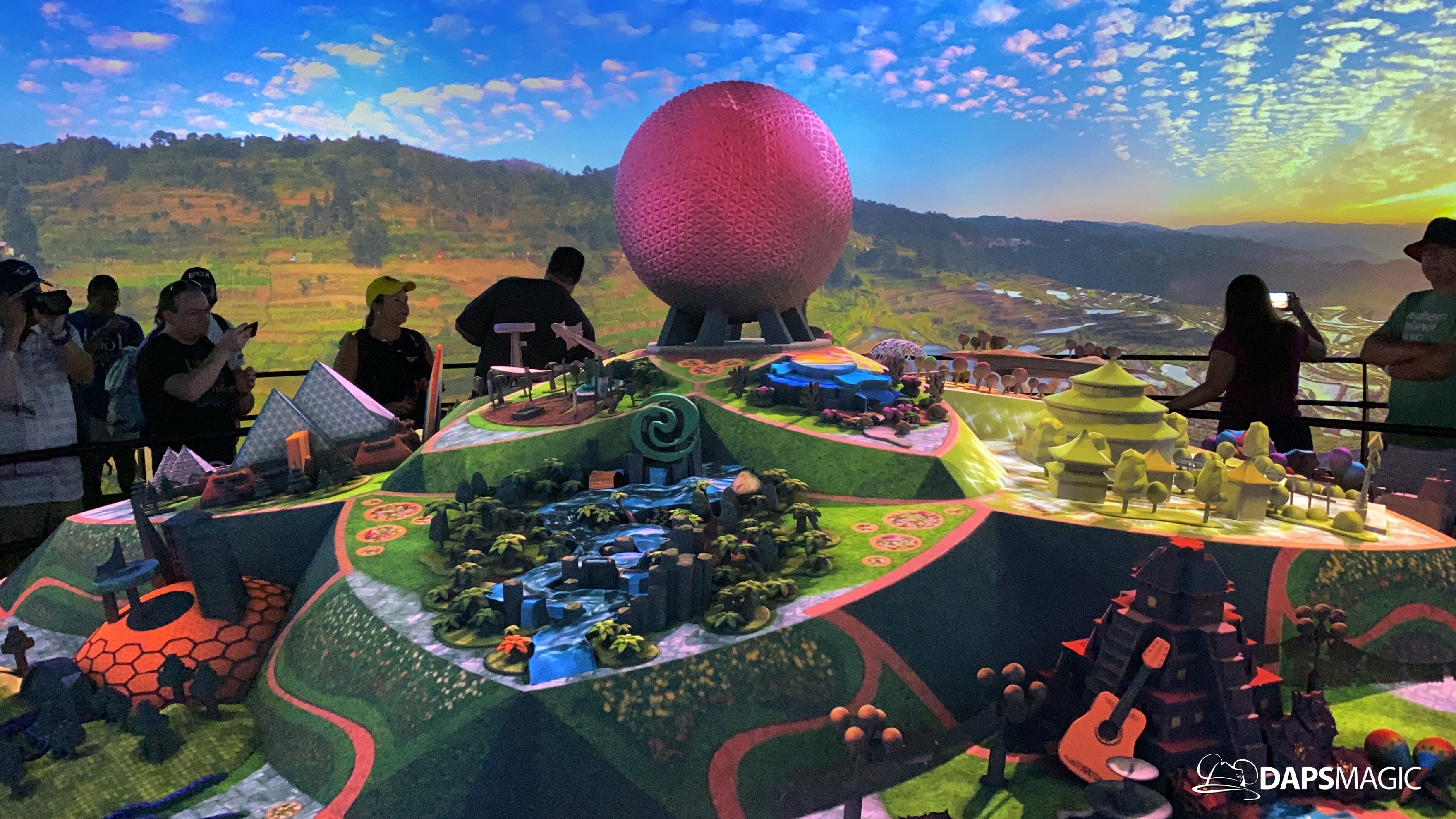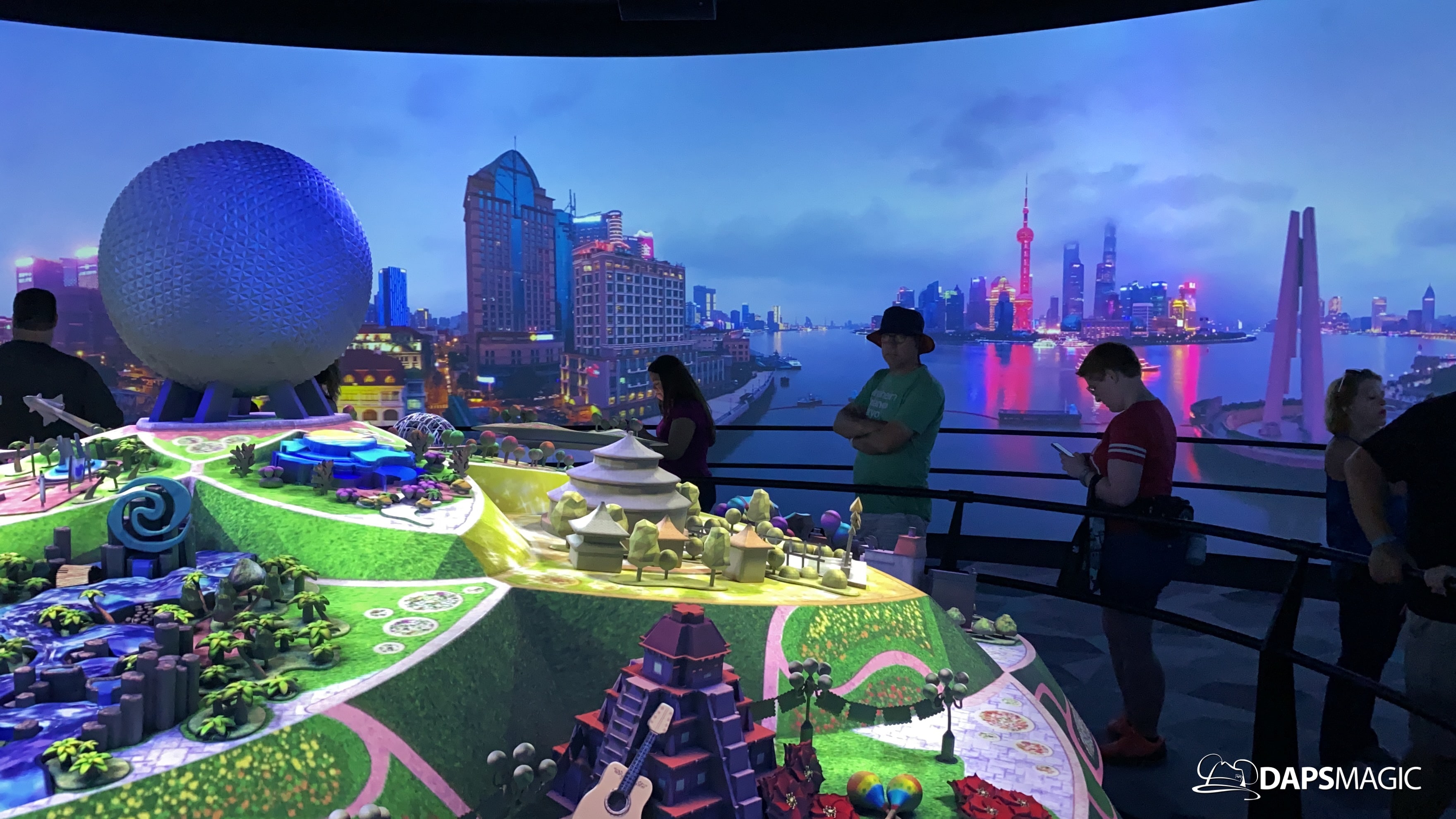 The highlight of this new attraction is a room with a 360 degree screen wrapping around the inside of it. I’m the middle is the Epcot model that was seen at the D23 Expo this summer. A new 12-minute video highlights the enhancements that are on their way to Epcot! The video covers the new neighborhoods, attractions, and entertainment that will be coming to this beloved park. The theme of it all revolves around possibility.