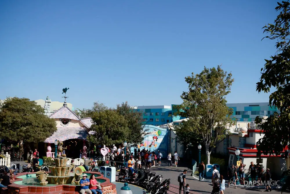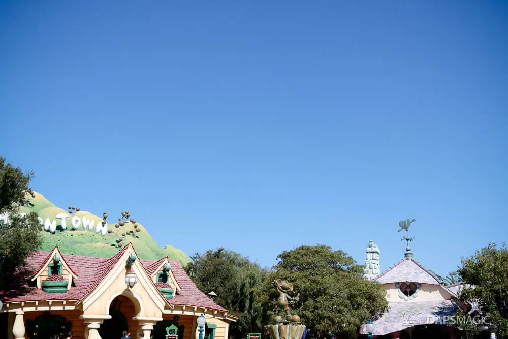 Mickey’s Toontown saw a bit of a change happen this week as work began for a new attraction. Mickey & Minnie’s Runaway Railway will be arriving at Mickey’s Toontown in 2022. As part of the work required to bring this attraction to Toontown, hills behind Mickey’s Toontown were removed this week. The result is a skyline change for this animated town.