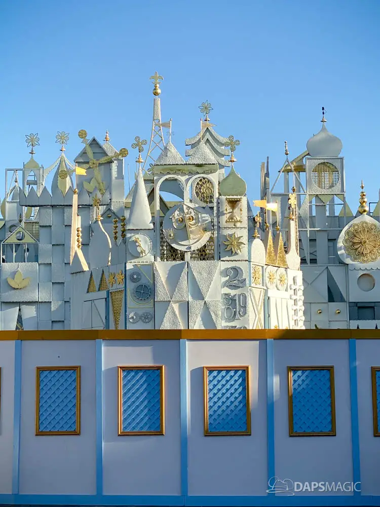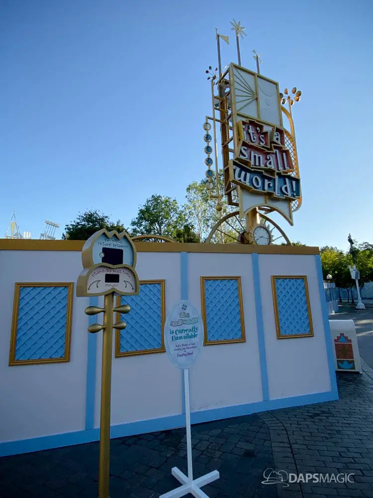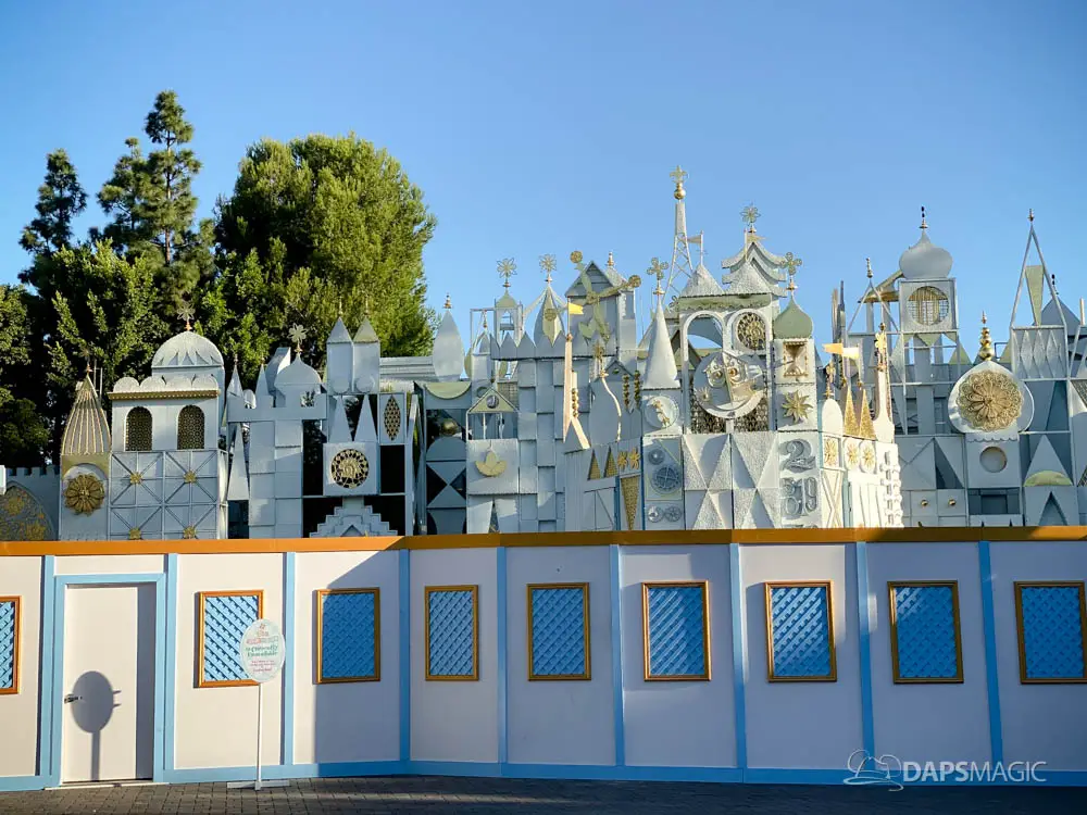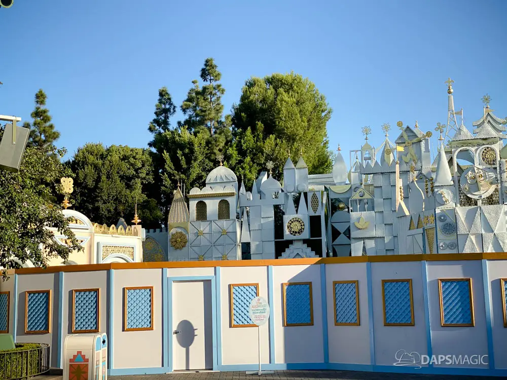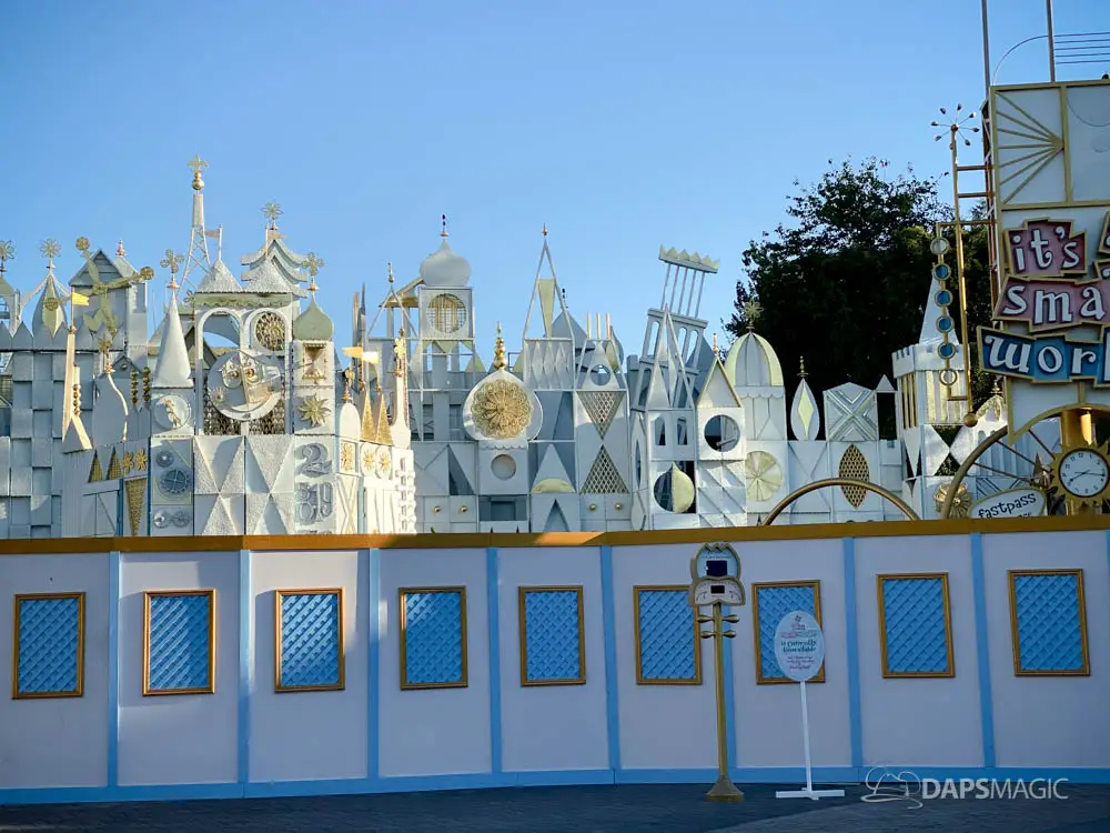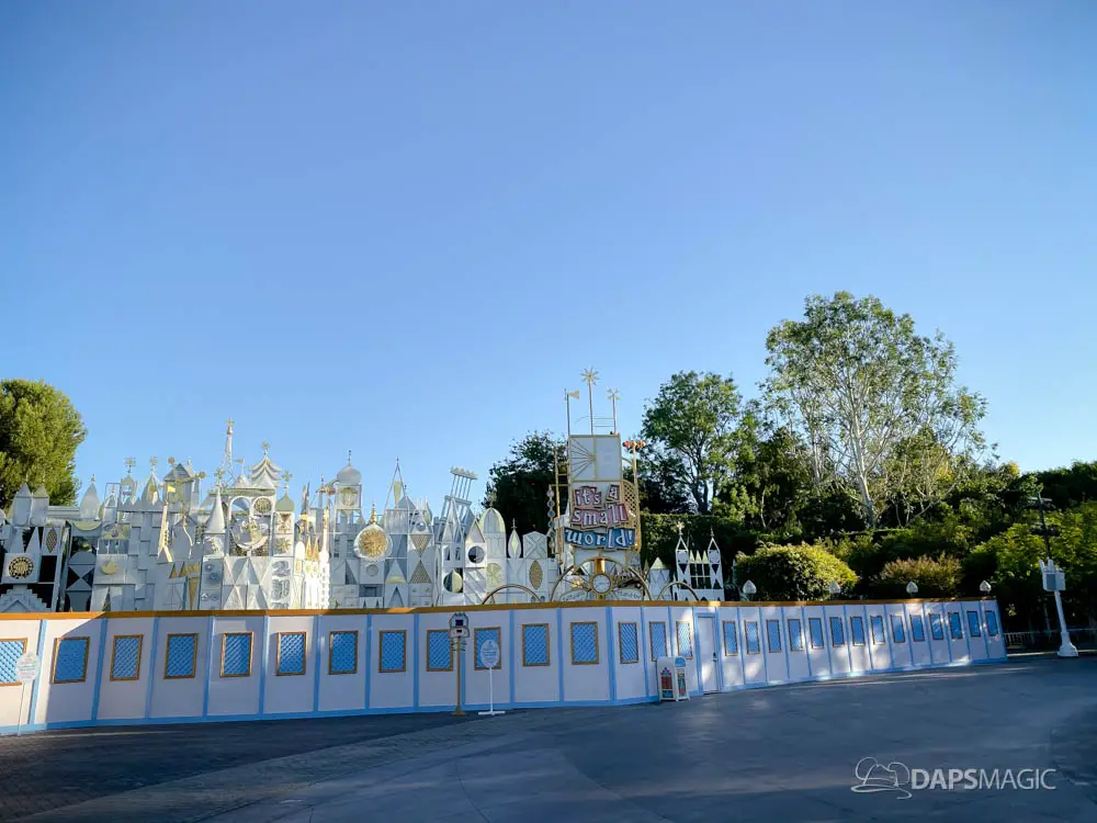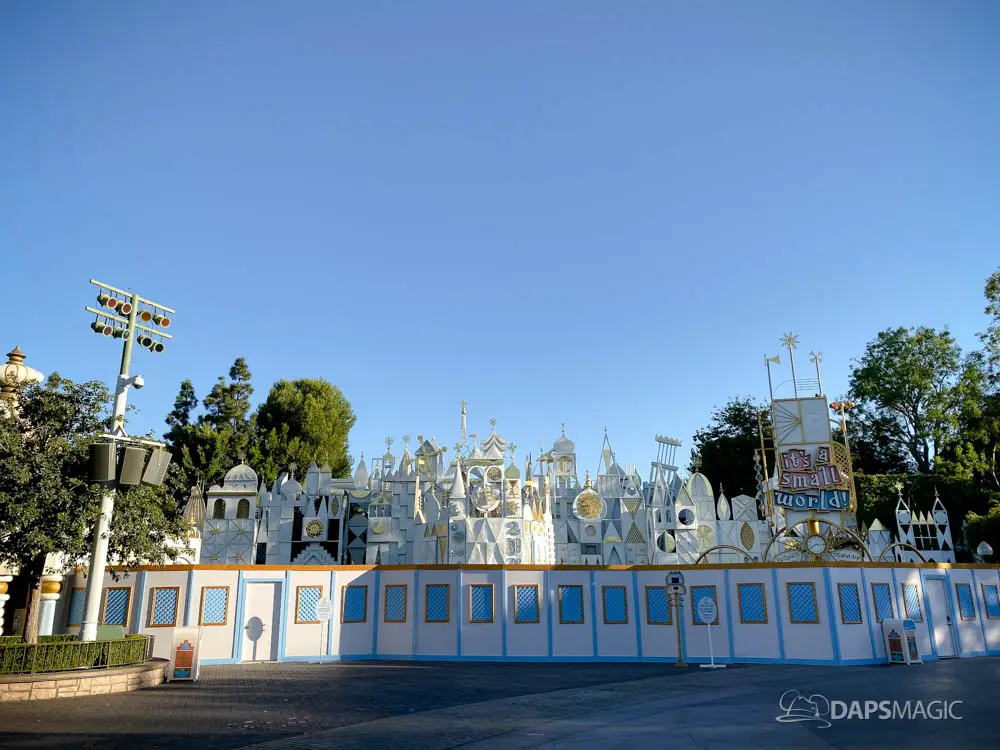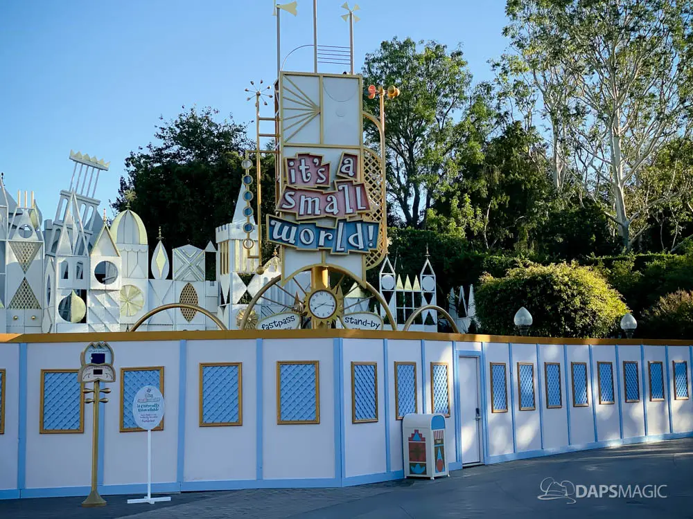 Walls have gone up at Disneyland around it’s a small world and some areas of the surrounding mall ahead of the arrival of its holiday overlay. Since 1997, it’s a small world has celebrated the holidays with festive decor from around the world. Along with that, Jingle Bells and Deck the Halls gets woven along with the theme song. The holiday overlay includes nearly a billion lights. For many, it is a favorite yearly experience during the holidays at the Disneyland Resort.