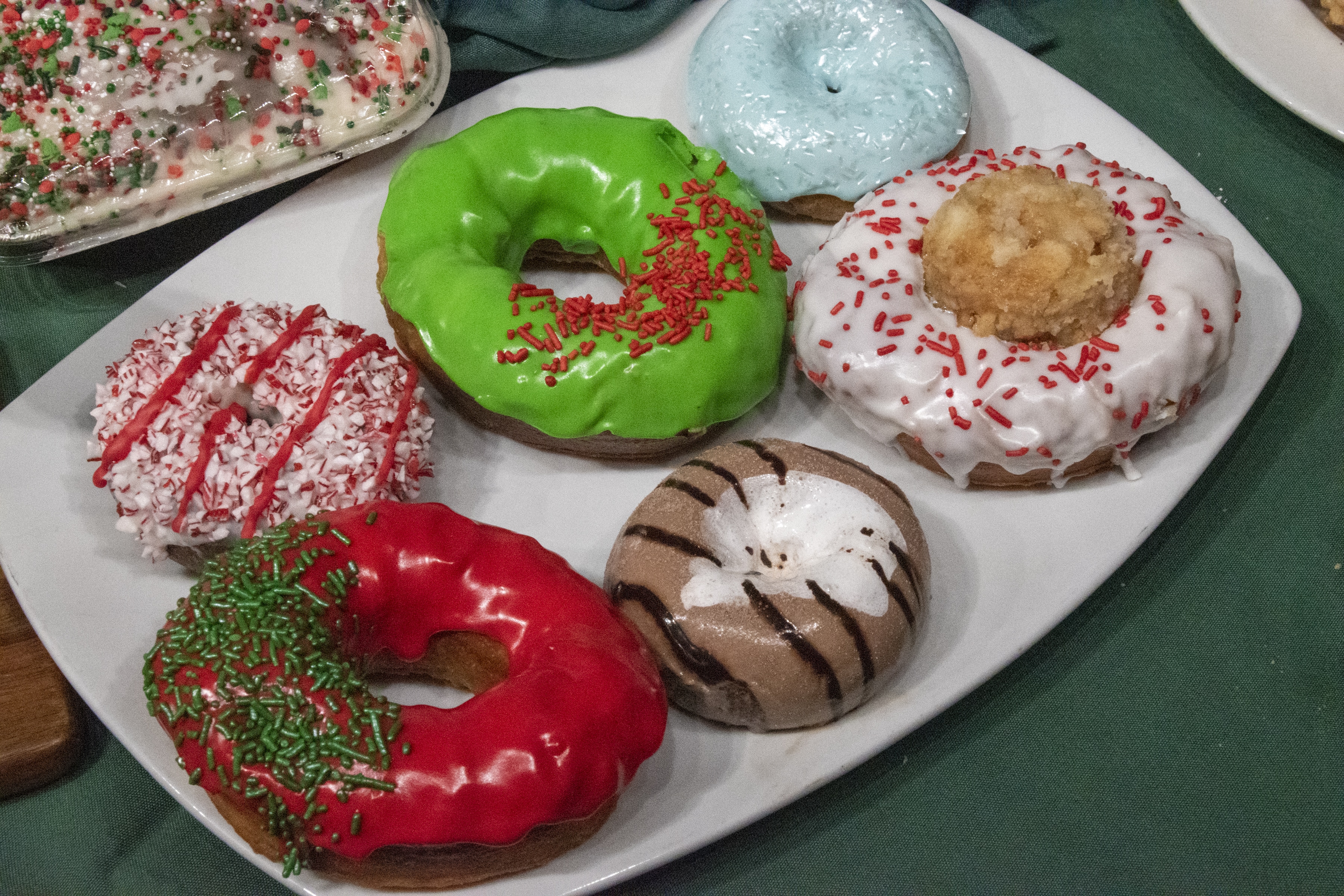 Following dinner is, of course, dessert! There are several tasty treats to accompany the end of a great meal! Egg nog cheesecake on a stick is a great way to go if you enjoy this beverage. Biting into it tasted like the drink but in a delicious cake form! The gingerbread churro was the right blend of the cinnamon goodness with a gingerbread filling. Great baklava was a good alternative to the very sweet and heavy desserts. Deep-fried cookie dough was a bite I had twice because of how deliciously warm it was. Peppermint bark was a wonderful traditional treat to bite into. And last, but not least, was the peppermint croissant. An odd choice, I know. But it worked so well! The peppermint was not overabundant, and it was a wonderfully baked pastry.