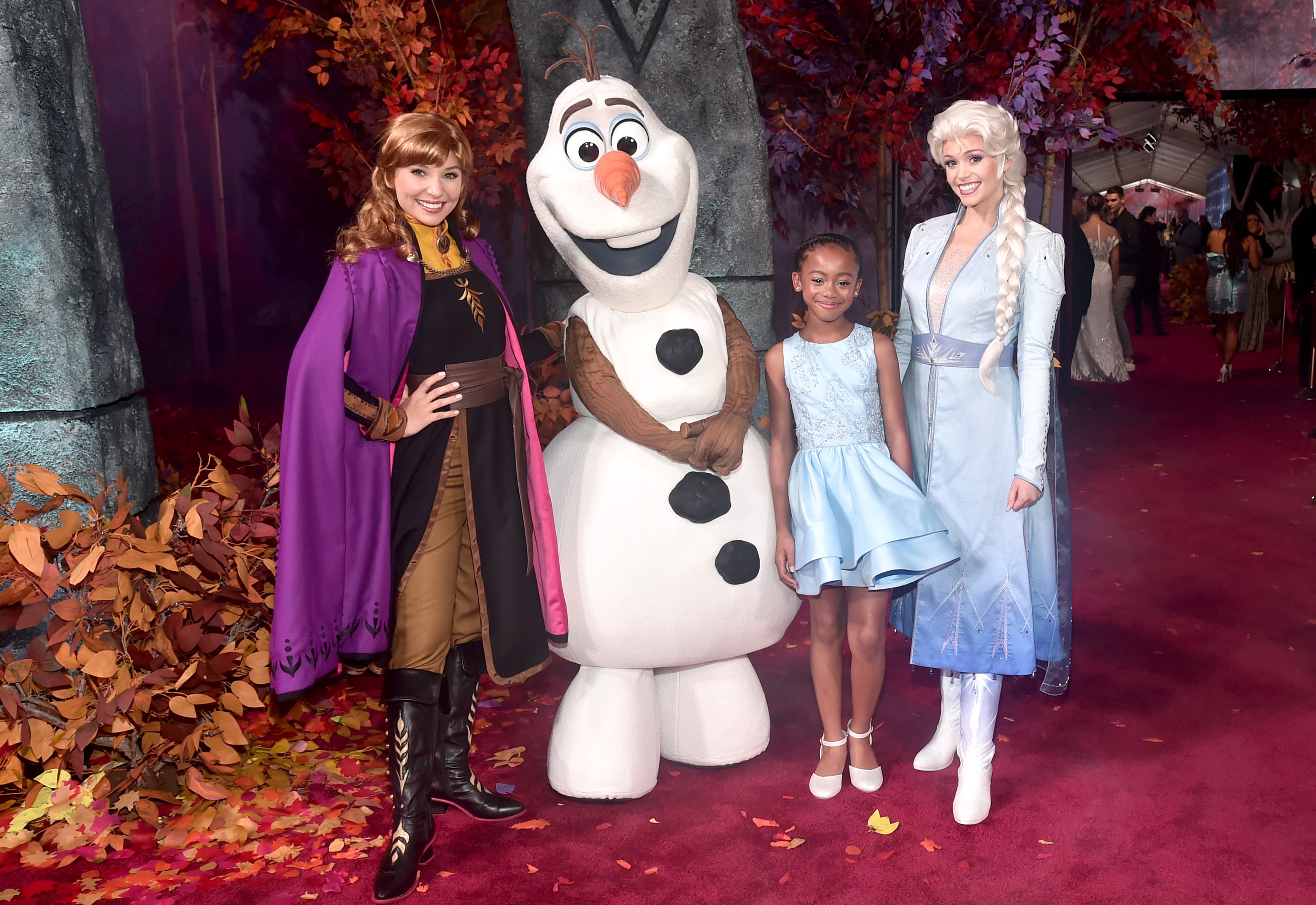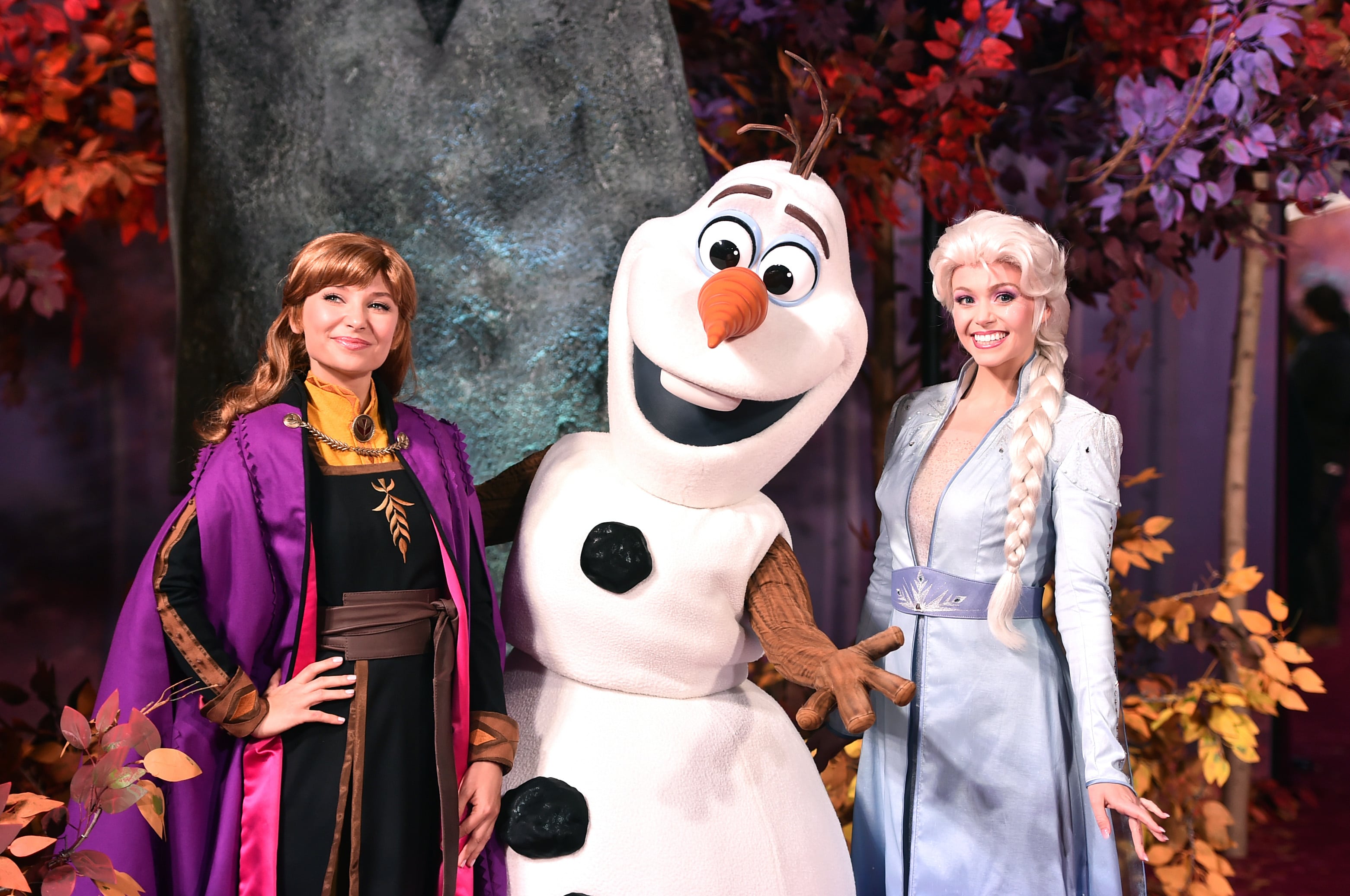 HOLLYWOOD, CALIFORNIA – NOVEMBER 07: (L-R) Anna, Elsa, and Olaf attend the world premiere of Disney’s “Frozen 2” at Hollywood’s Dolby Theatre on Thursday, November 7, 2019 in Hollywood, California. (Photo by Alberto E. Rodriguez/Getty Images for Disney)