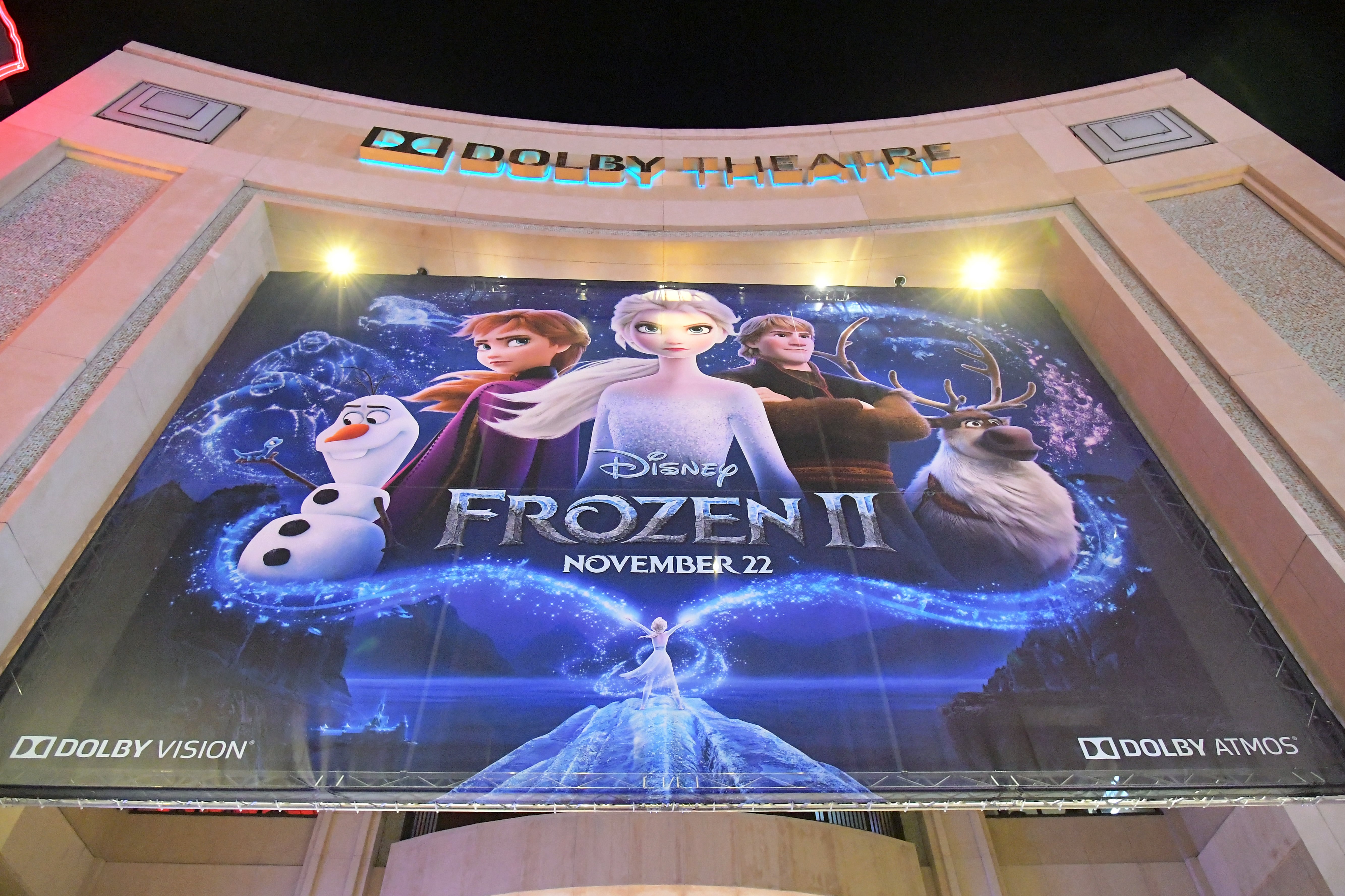 HOLLYWOOD, CALIFORNIA – NOVEMBER 07: A view of the signage at the world premiere of Disney’s “Frozen 2” at Hollywood’s Dolby Theatre on Thursday, November 7, 2019 in Hollywood, California. (Photo by Charley Gallay/Getty Images for Disney)