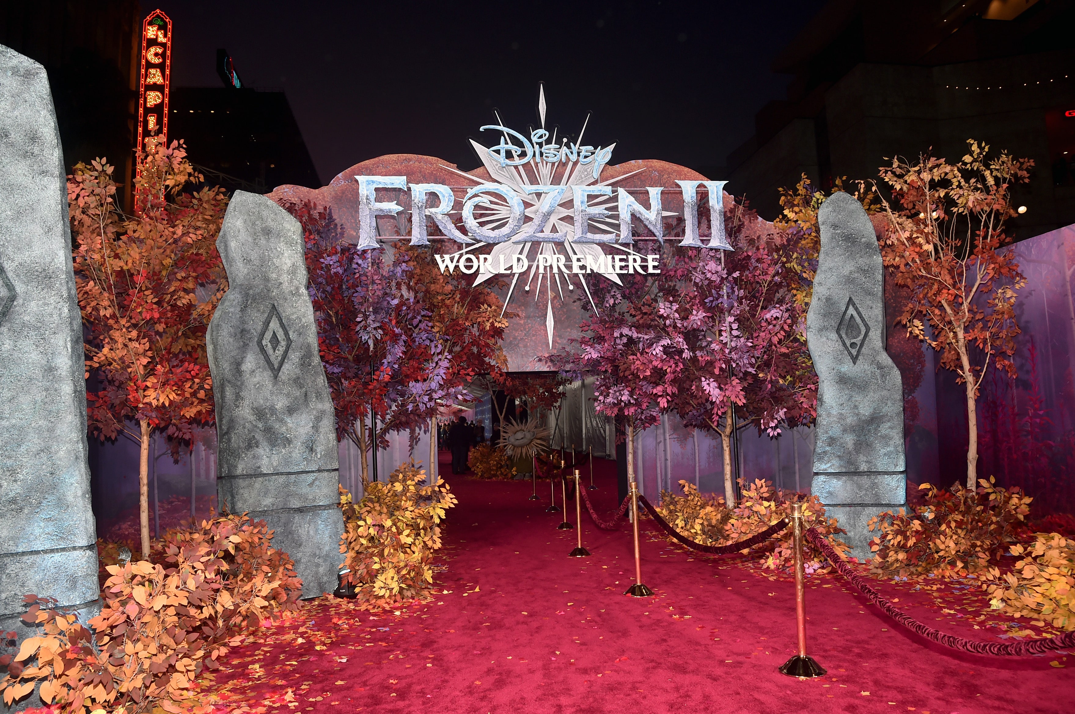 HOLLYWOOD, CALIFORNIA – NOVEMBER 07: A view of the atomosphere at the world premiere of Disney’s “Frozen 2” at Hollywood’s Dolby Theatre on Thursday, November 7, 2019 in Hollywood, California. (Photo by Alberto E. Rodriguez/Getty Images for Disney)