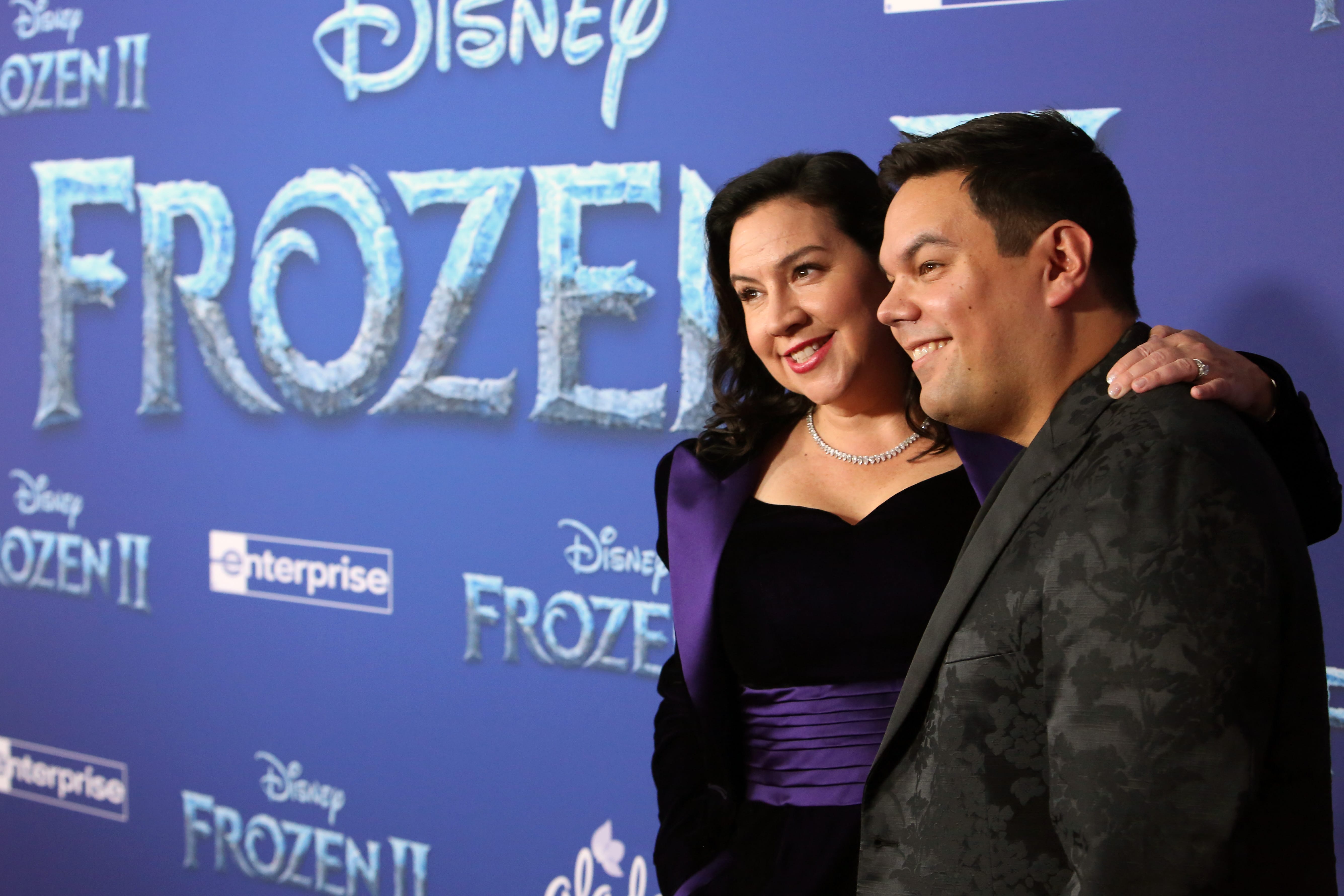 HOLLYWOOD, CALIFORNIA – NOVEMBER 07: (L-R) Songwriters Kristen Anderson-Lopez and Robert Lopez attend the world premiere of Disney’s “Frozen 2” at Hollywood’s Dolby Theatre on Thursday, November 7, 2019 in Hollywood, California. (Photo by Alberto E. Rodriguez/Getty Images for Disney)