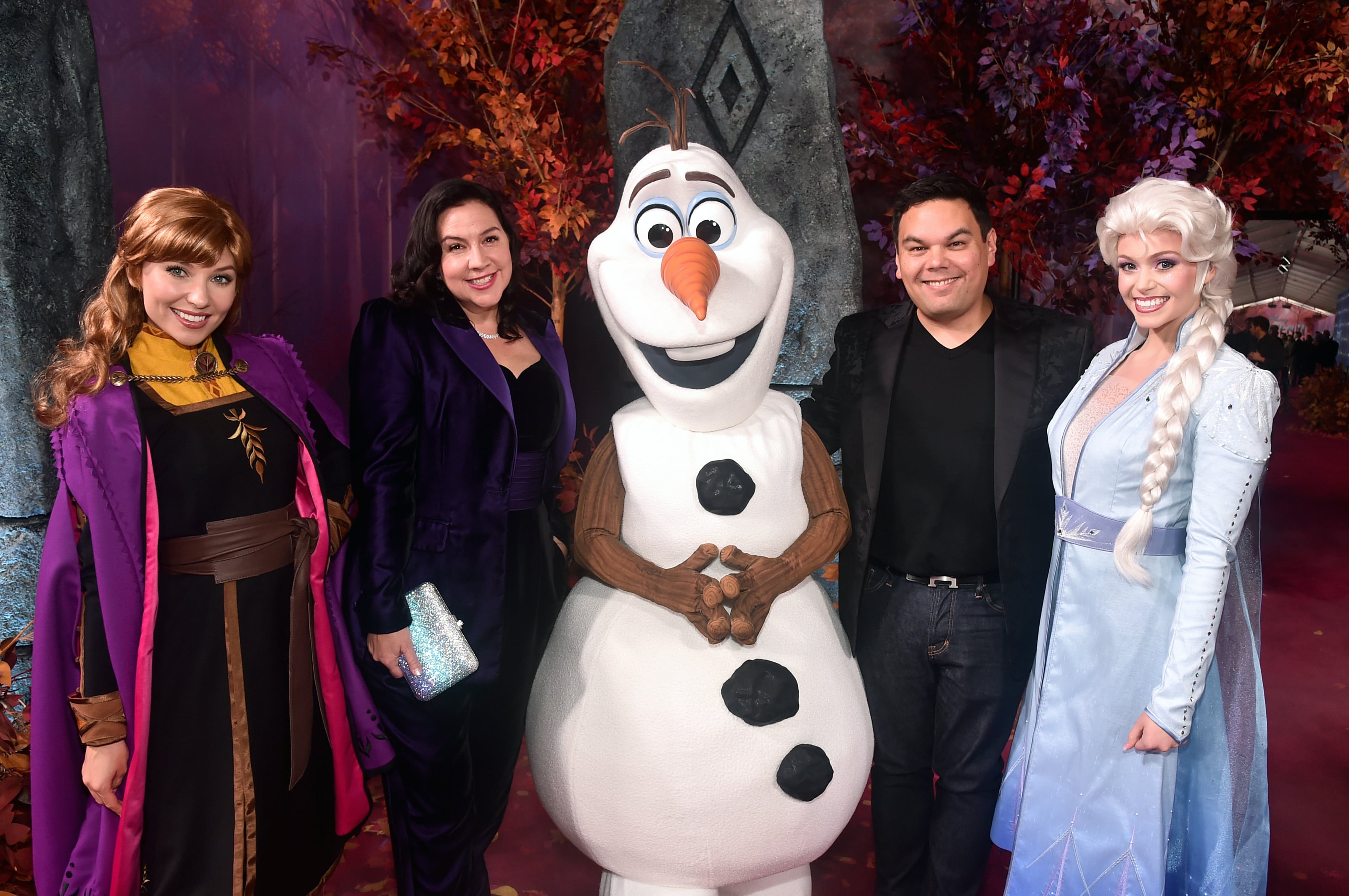 HOLLYWOOD, CALIFORNIA – NOVEMBER 07: (L-R) Anna, Producer Peter Del Vecho, Director/writer/Walt Disney Animation Studios CCO Jennifer Lee, Olaf, Director Chris Buck, and Elsa attend the world premiere of Disney’s “Frozen 2” at Hollywood’s Dolby Theatre on Thursday, November 7, 2019 in Hollywood, California. (Photo by Alberto E. Rodriguez/Getty Images for Disney)