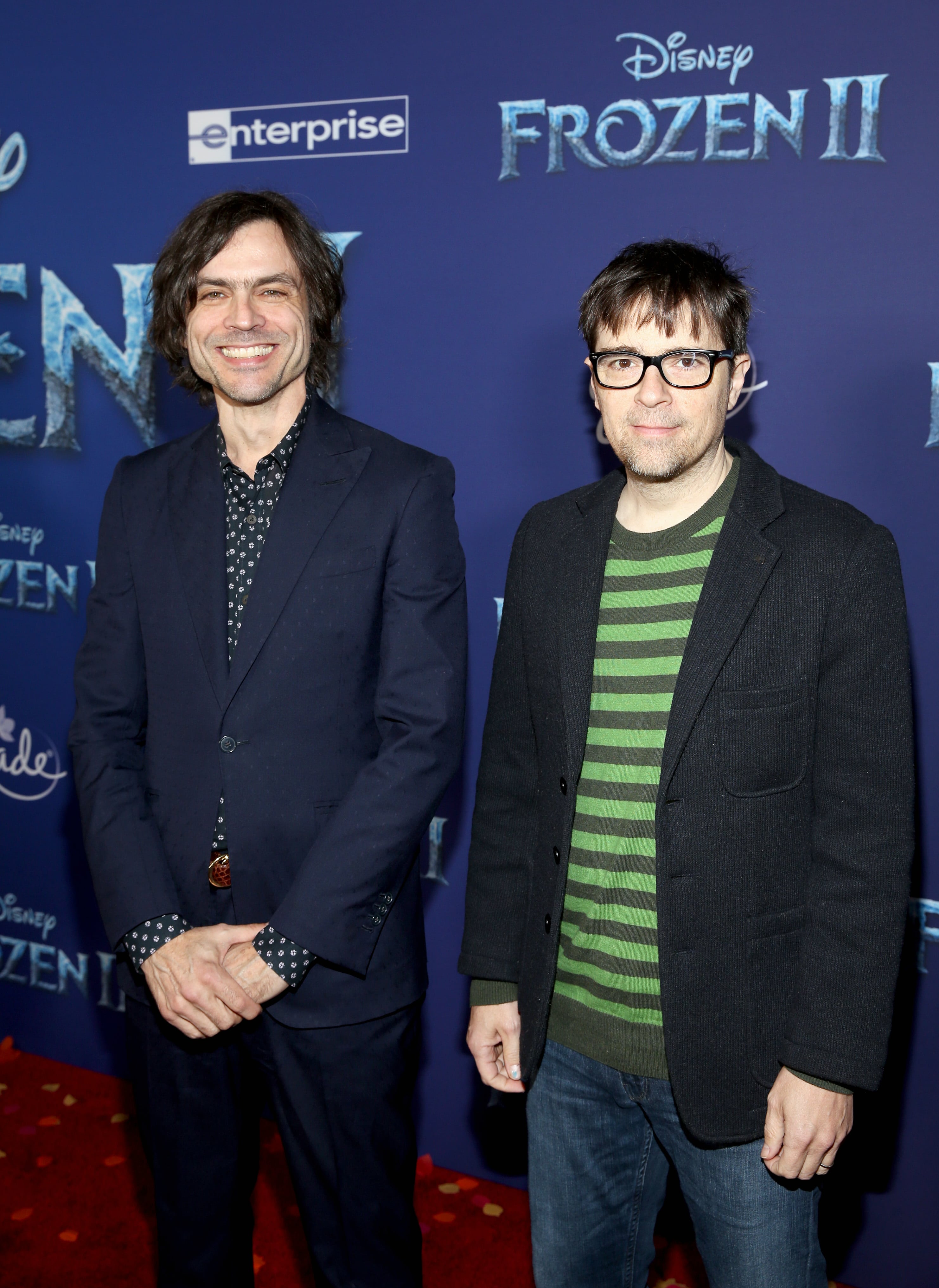 HOLLYWOOD, CALIFORNIA – NOVEMBER 07: (L-R) Musicians Brian Bell and Rivers Cuomo of Weezer attend the world premiere of Disney’s “Frozen 2” at Hollywood’s Dolby Theatre on Thursday, November 7, 2019 in Hollywood, California. (Photo by Jesse Grant/Getty Images for Disney)