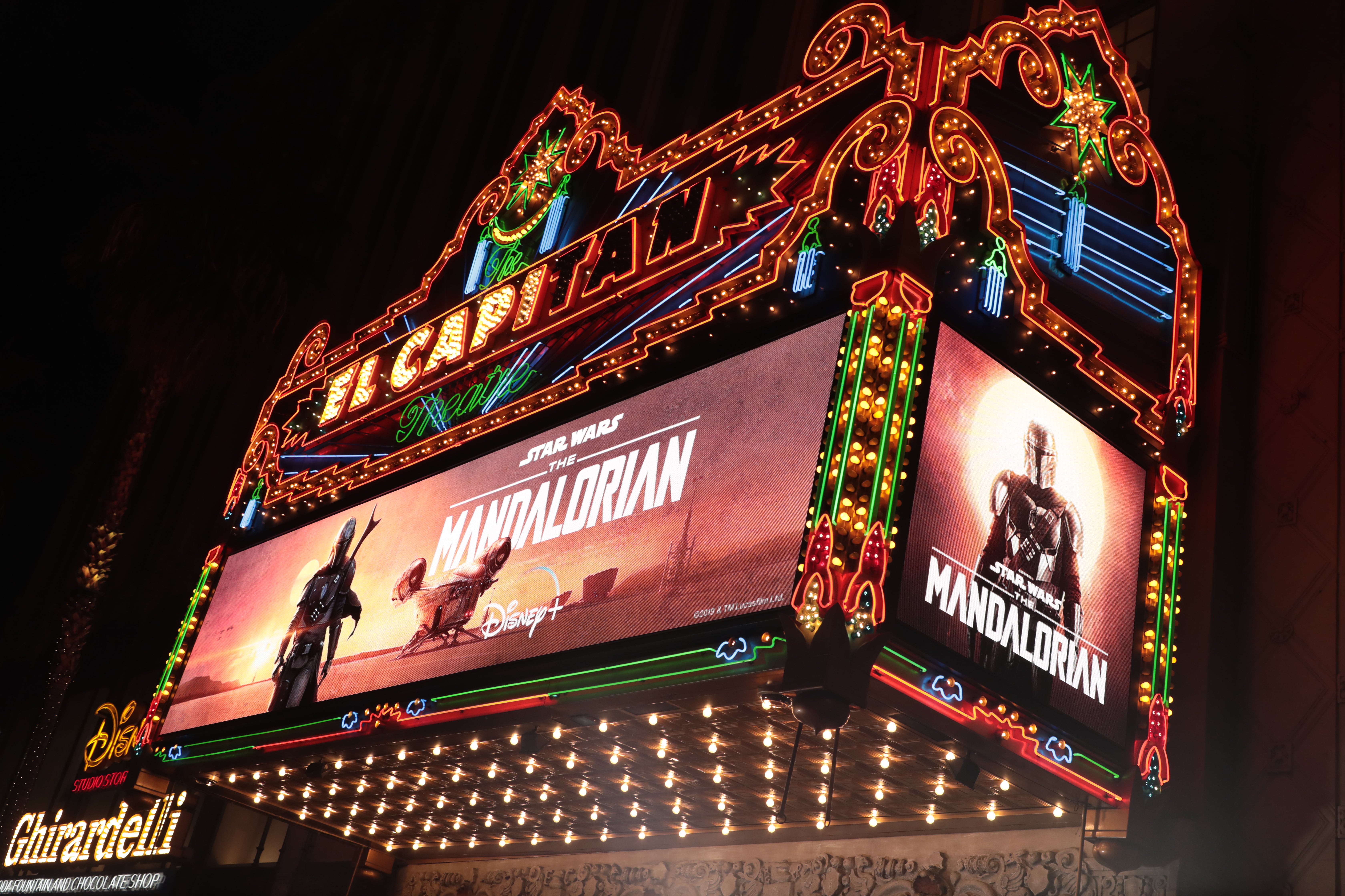A view of the marquee at the premiere of Lucasfilm’s first-ever, live-action series, “The Mandalorian”, at the El Capitan Theatre in Hollywood, CA on November 13, 2019. “The Mandalorian” streams exclusively on Disney+.(photo: Alex J. Berliner/ABImages)