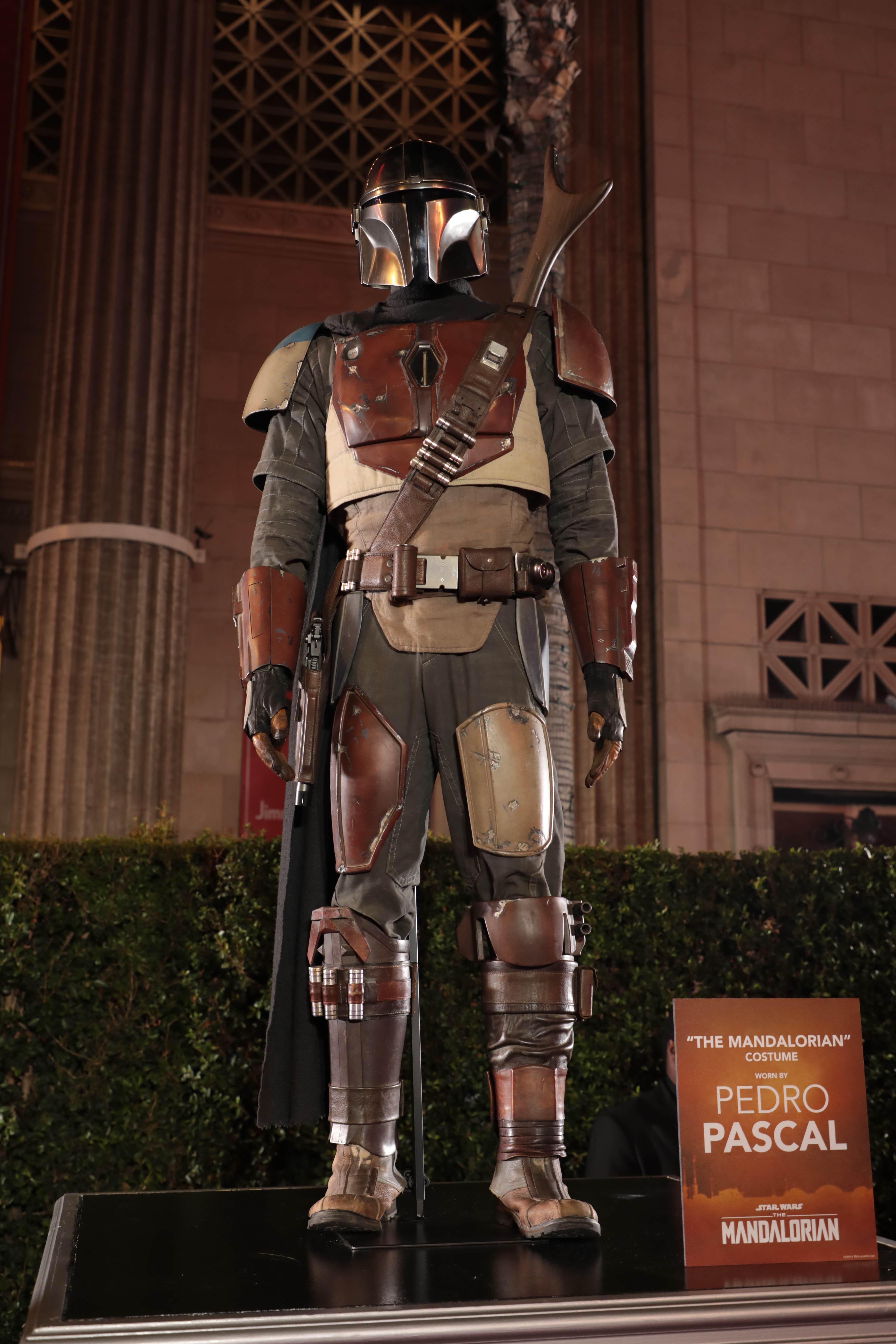 A view of The Mandalorian costume at the premiere of Lucasfilm’s first-ever, live-action series, “The Mandalorian”, at the El Capitan Theatre in Hollywood, CA on November 13, 2019. “The Mandalorian” streams exclusively on Disney+.(photo: Alex J. Berliner/ABImages)