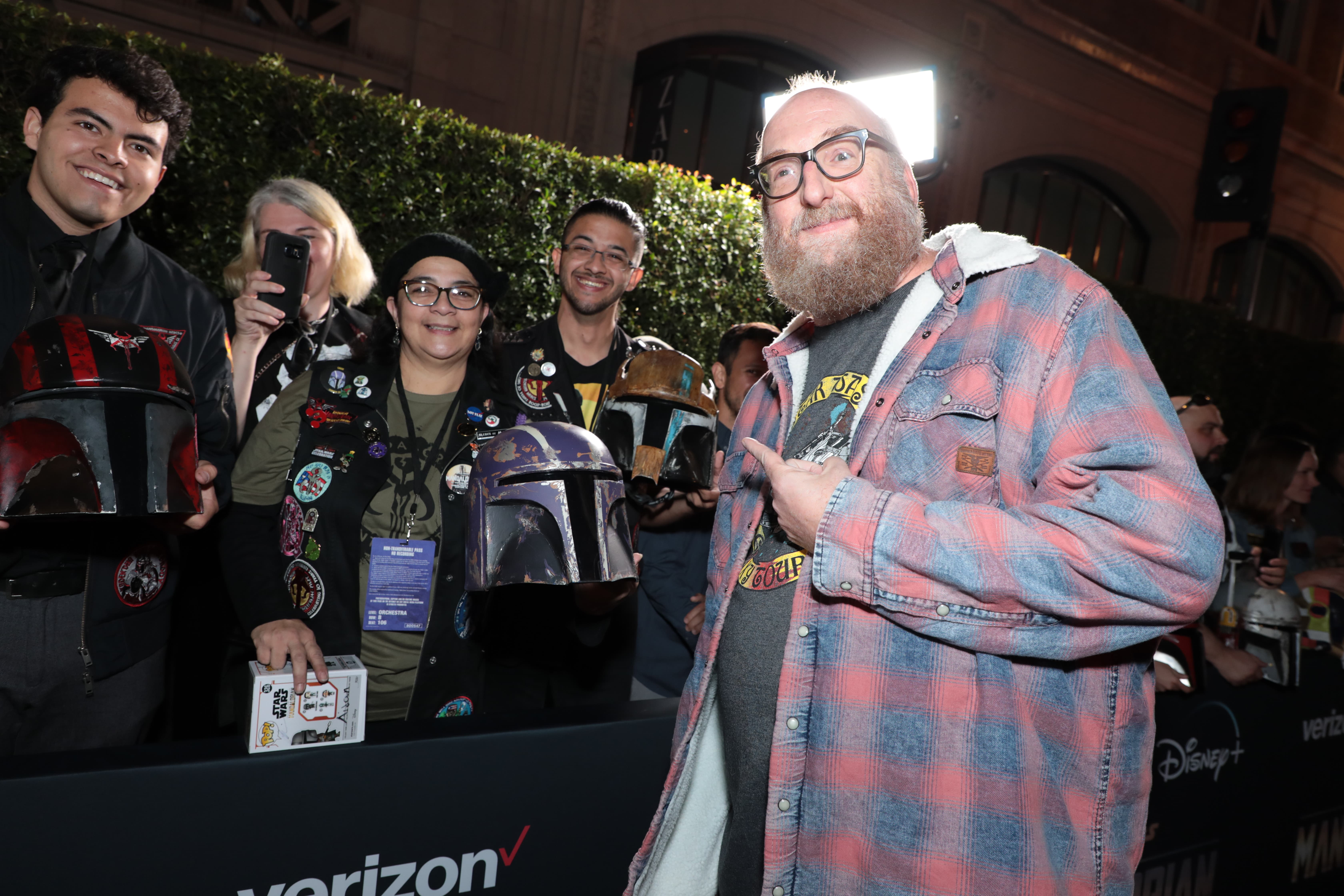 Brian Posehn poses with fans at the premiere of Lucasfilm’s first-ever, live-action series, “The Mandalorian”, at the El Capitan Theatre in Hollywood, CA on November 13, 2019. “The Mandalorian” streams exclusively on Disney+.(photo: Alex J. Berliner/ABImages)