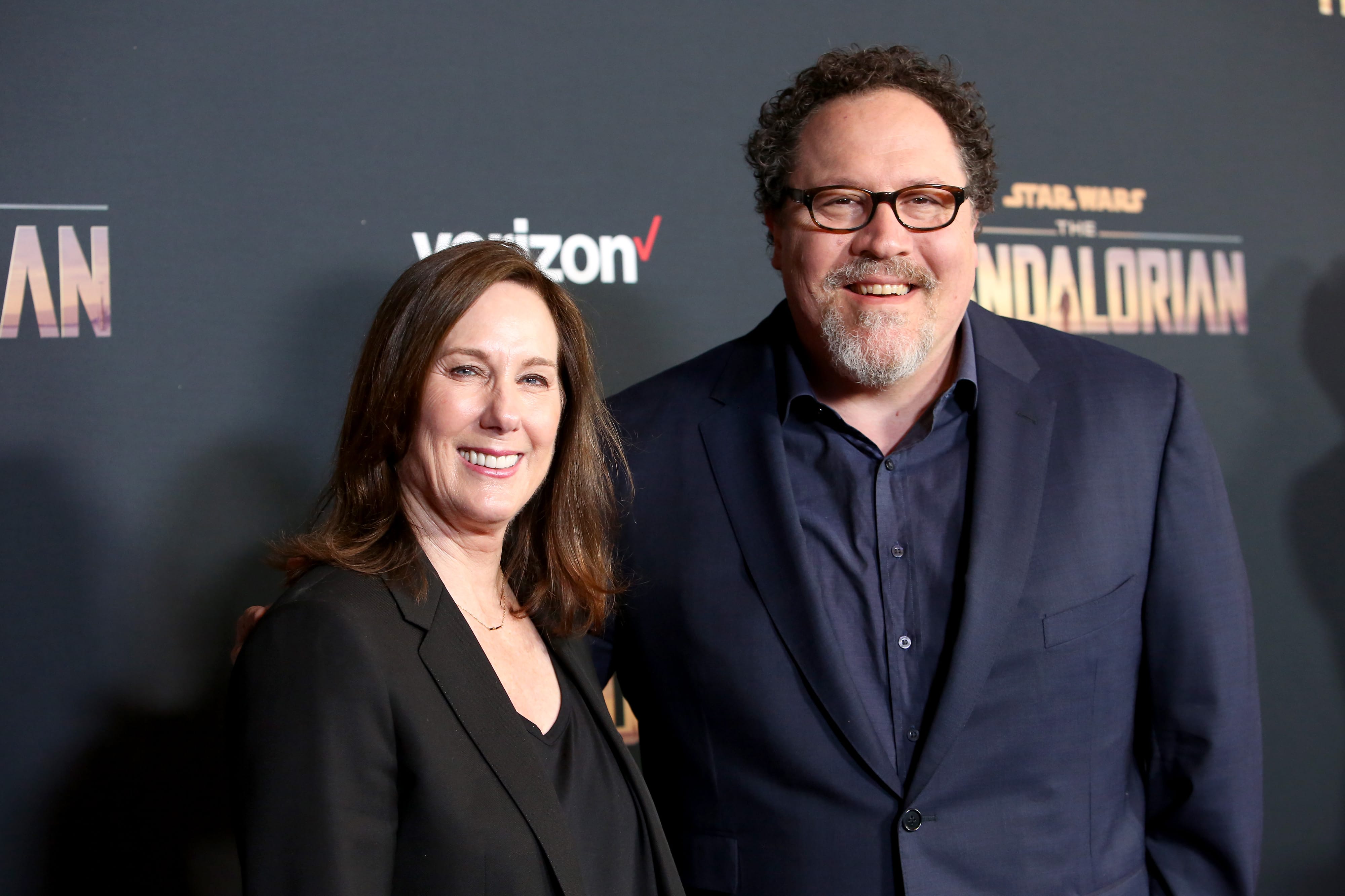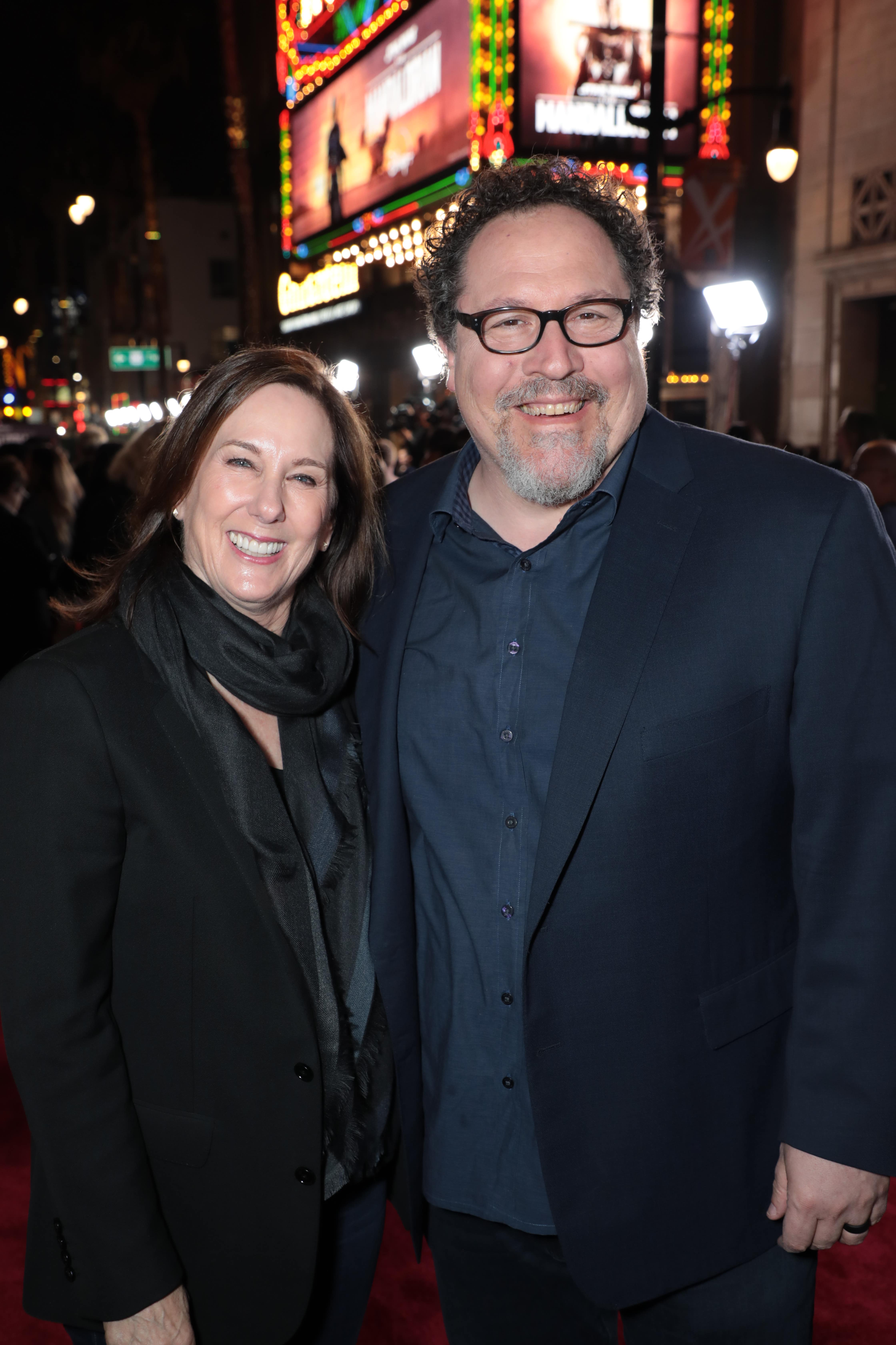 HOLLYWOOD, CALIFORNIA – NOVEMBER 13: (L-R) Executive Producer Kathleen Kennedy and Executive Producer Jon Favreau arrive at the premiere of Lucasfilm’s first-ever, live-action series, “The Mandalorian,” at the El Capitan Theatre in Hollywood, Calif. on November 13, 2019. “The Mandalorian” streams exclusively on Disney+. (Photo by Jesse Grant/Getty Images for Disney)