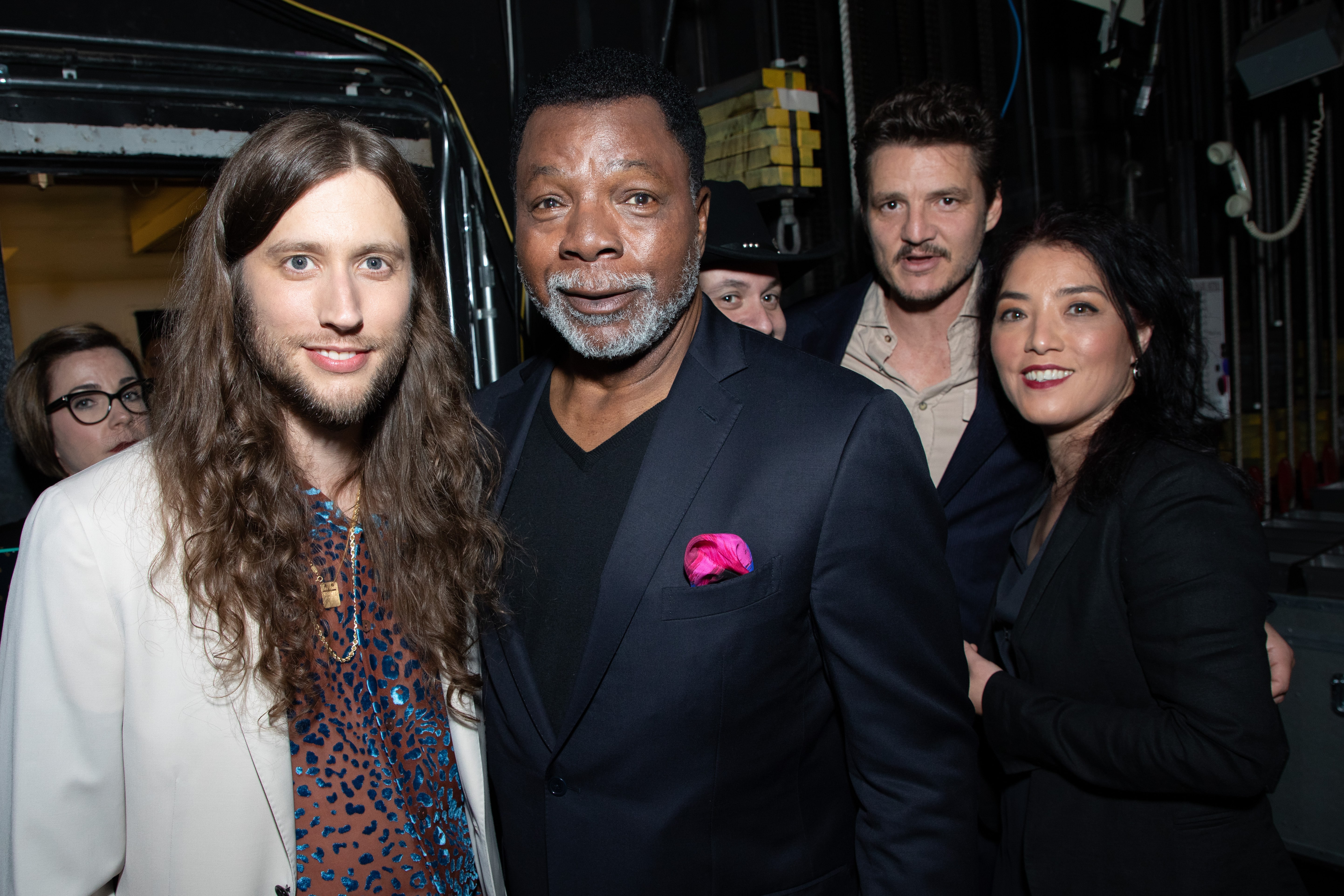 Composer Ludwig Goransson, Carl Weathers, Pedro Pascal and Director Deborah Chow pose backstage at the premiere of Lucasfilm’s first-ever, live-action series, “The Mandalorian”, at the El Capitan Theatre in Hollywood, CA on November 13, 2019. “The Mandalorian” streams exclusively on Disney+.(photo: Alex J. Berliner/ABImages)