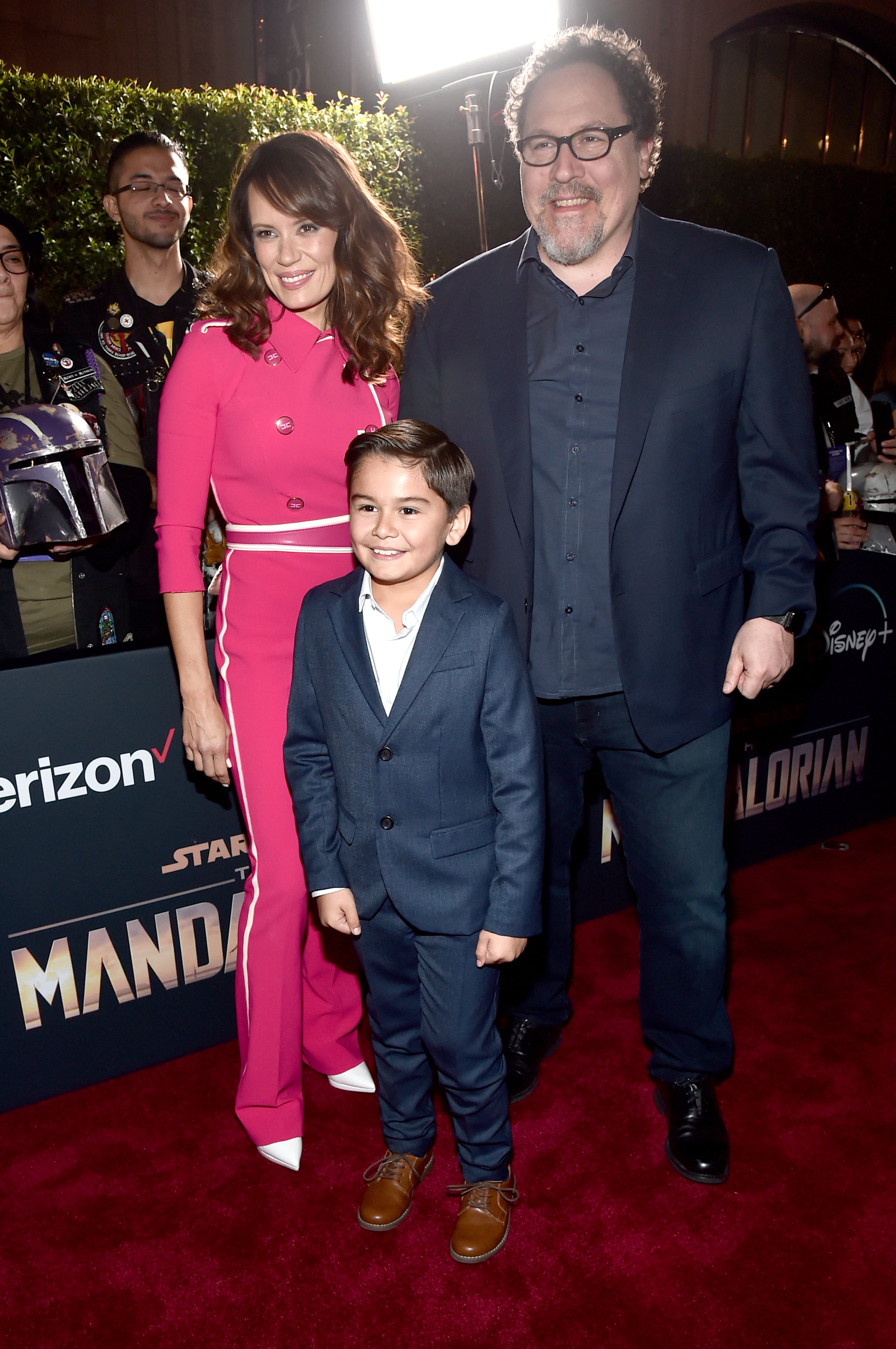 HOLLYWOOD, CALIFORNIA – NOVEMBER 13: (L-R) Emily Swallow, Aidan Bertola and Executive Producer Jon Favreau arrive at the premiere of Lucasfilm’s first-ever, live-action series, “The Mandalorian,” at the El Capitan Theatre in Hollywood, Calif. on November 13, 2019. “The Mandalorian” streams exclusively on Disney+. (Photo by Alberto E. Rodriguez/Getty Images for Disney)