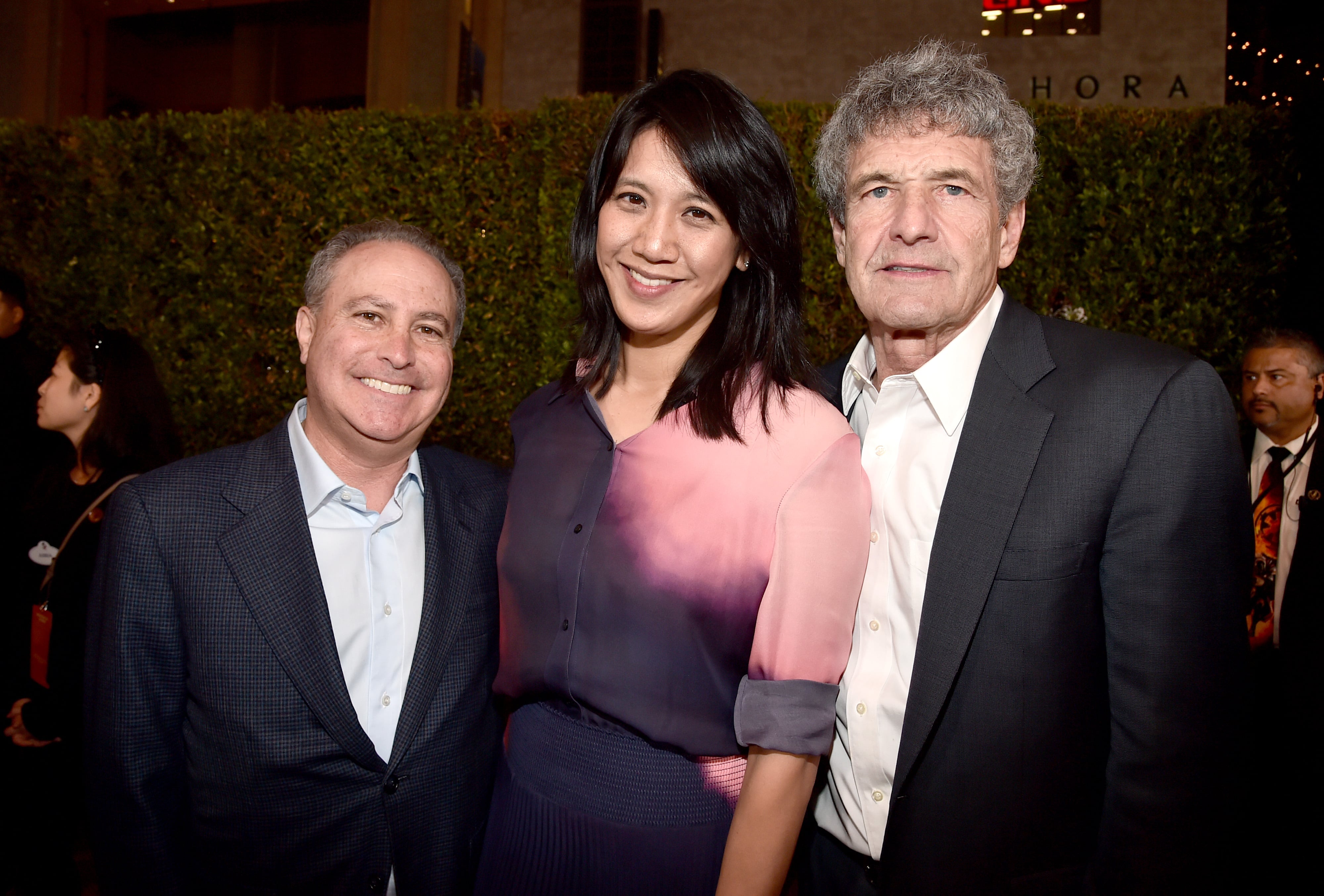 HOLLYWOOD, CALIFORNIA – NOVEMBER 13: (L-R) Co-Chairman, The Walt Disney Studios Alan Bergman, Senior Vice President, Content, for Disney+ Agnes Chu and Co-Chairman and Chief Creative Officer of The Walt Disney Studios Alan Horn arrive at the premiere of Lucasfilm’s first-ever, live-action series, “The Mandalorian,” at the El Capitan Theatre in Hollywood, Calif. on November 13, 2019. “The Mandalorian” streams exclusively on Disney+. (Photo by Alberto E. Rodriguez/Getty Images for Disney)