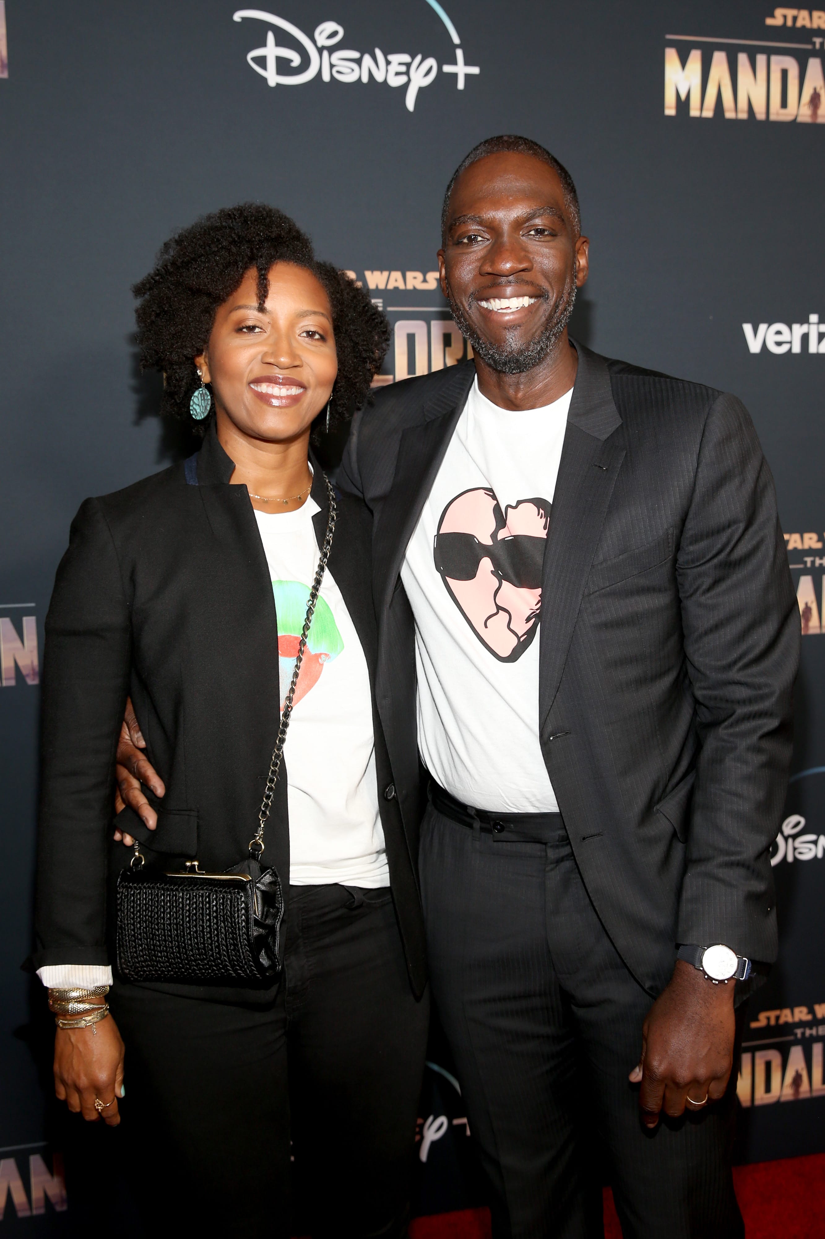 HOLLYWOOD, CALIFORNIA – NOVEMBER 13: Glenita Mosley and director Rick Famuyiwa arrive at the premiere of Lucasfilm’s first-ever, live-action series, “The Mandalorian,” at the El Capitan Theatre in Hollywood, Calif. on November 13, 2019. “The Mandalorian” streams exclusively on Disney+. (Photo by Jesse Grant/Getty Images for Disney)
