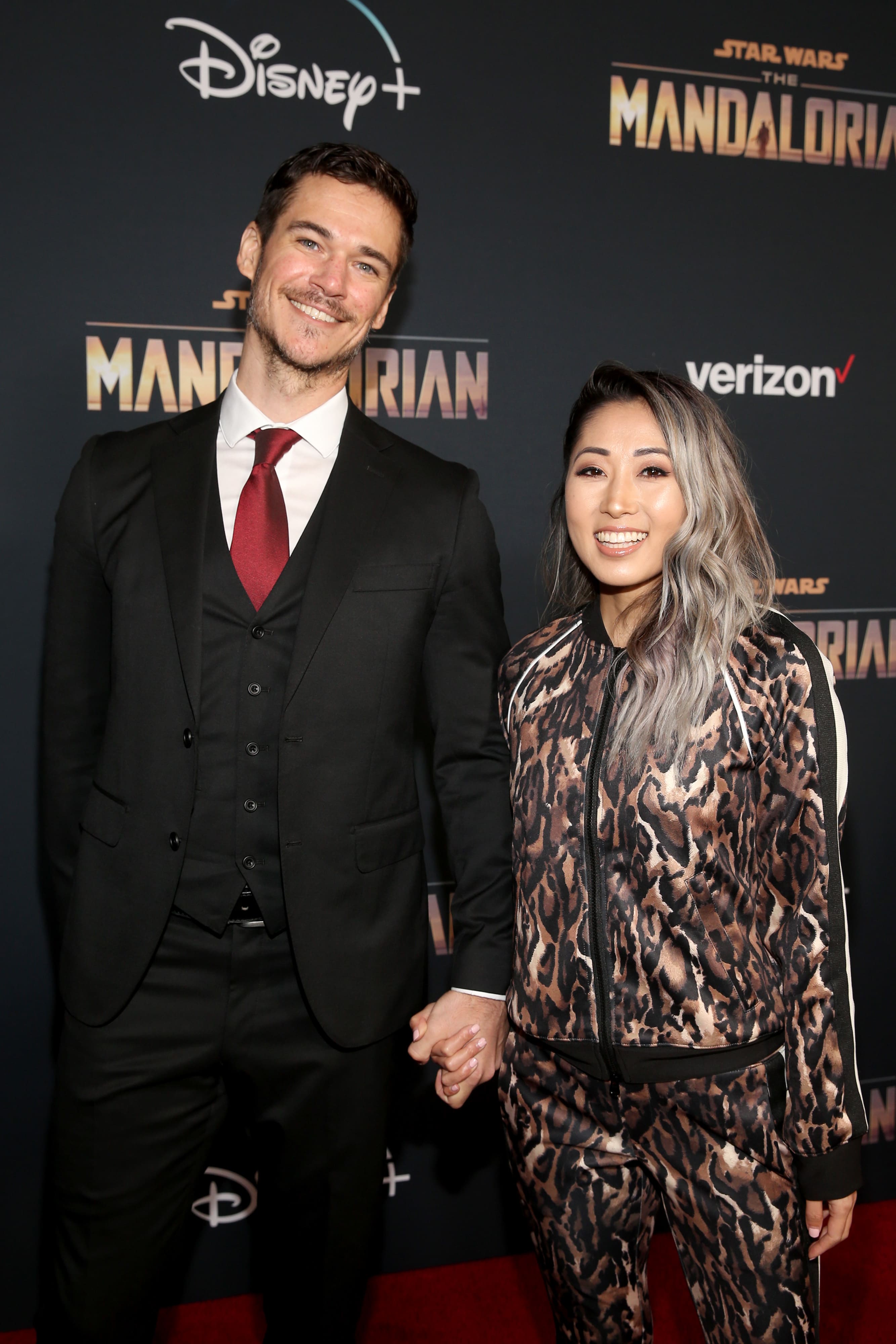 HOLLYWOOD, CALIFORNIA – NOVEMBER 13: (L-R) Emily Swallow and Chad Kimball arrive at the premiere of Lucasfilm’s first-ever, live-action series, “The Mandalorian,” at the El Capitan Theatre in Hollywood, Calif. on November 13, 2019. “The Mandalorian” streams exclusively on Disney+. (Photo by Jesse Grant/Getty Images for Disney)