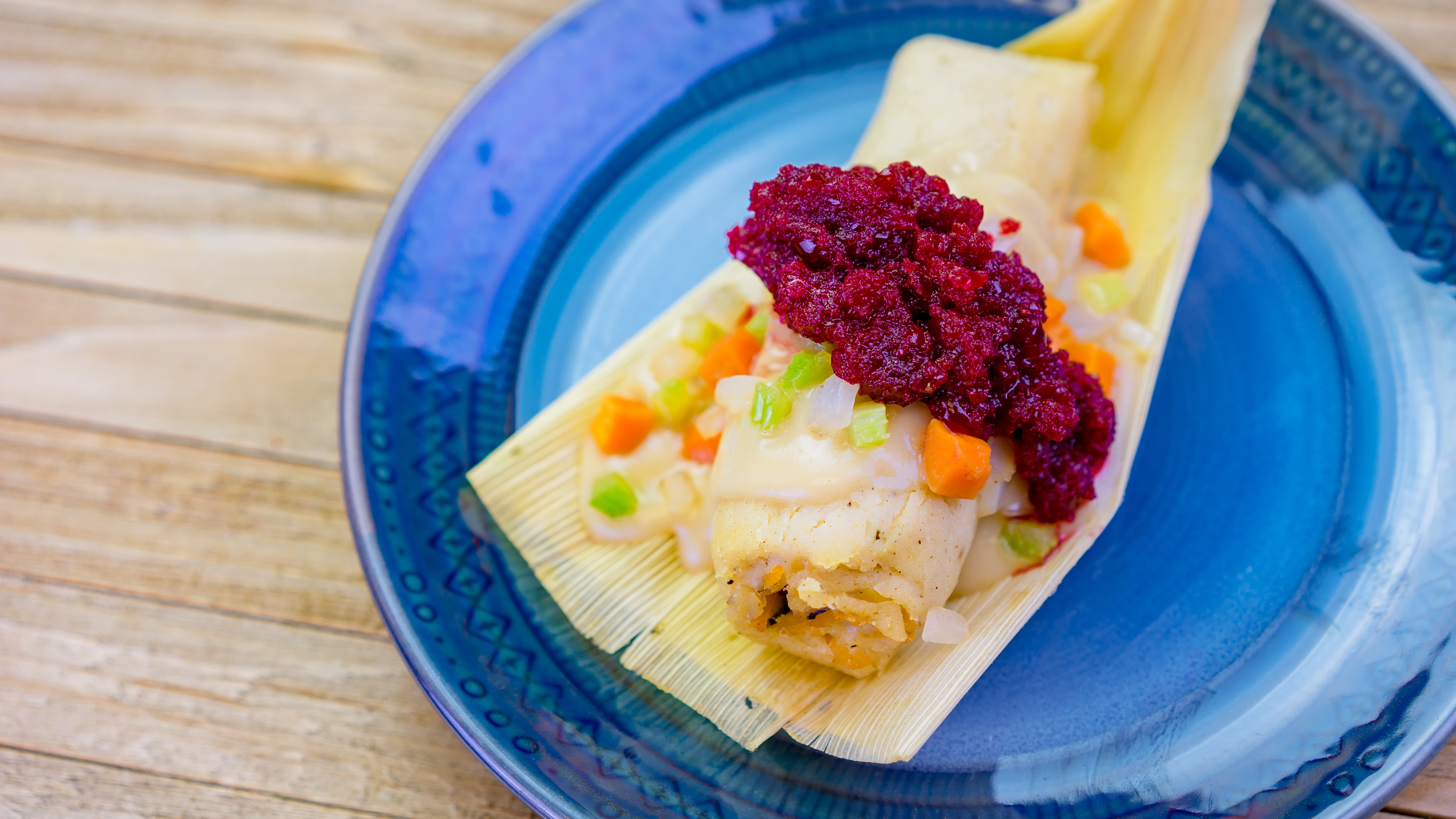 The Pork Tamale is part of the delicious food offerings during Disney Festival of Holidays. Available November 8 – January 6, this item can be be purchased at Cocina Cucamonga in Disney California Adventure.