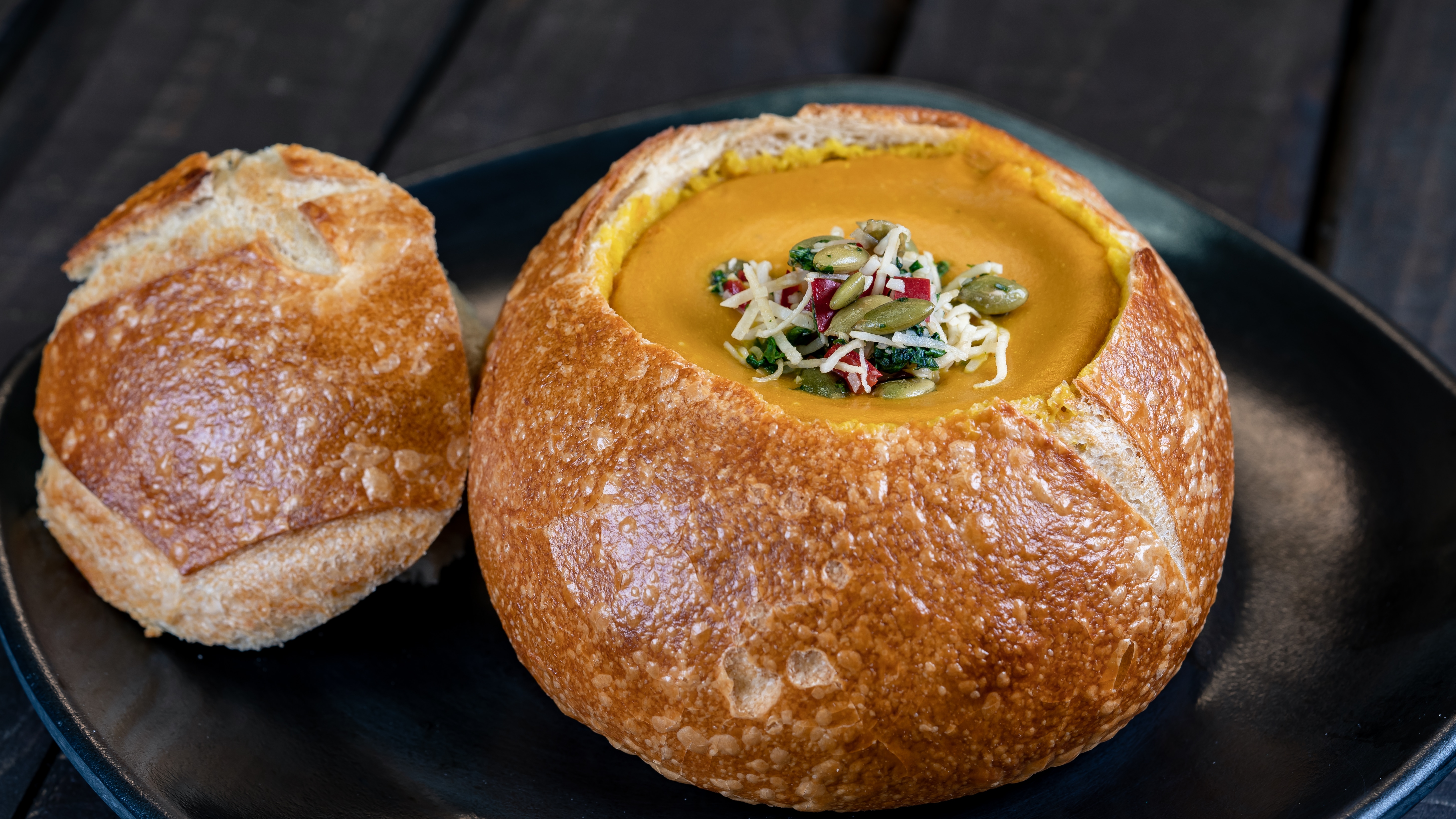 The Pumpkin Soup is part of the delicious food offerings during Disney Festival of Holidays. Available November 8 – January 6, this item can be be purchased at Pacific Wharf Cafe in Disney California Adventure.