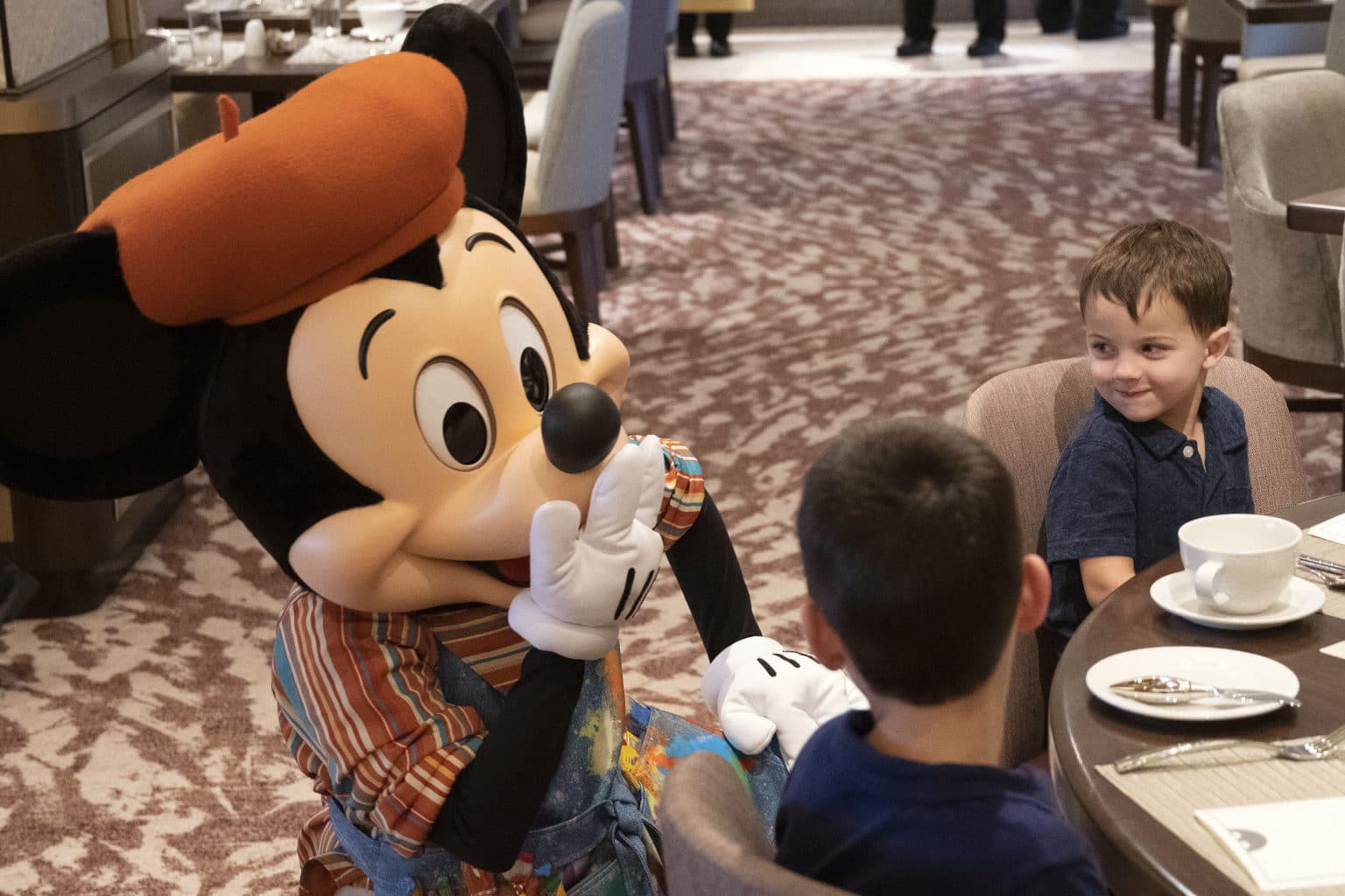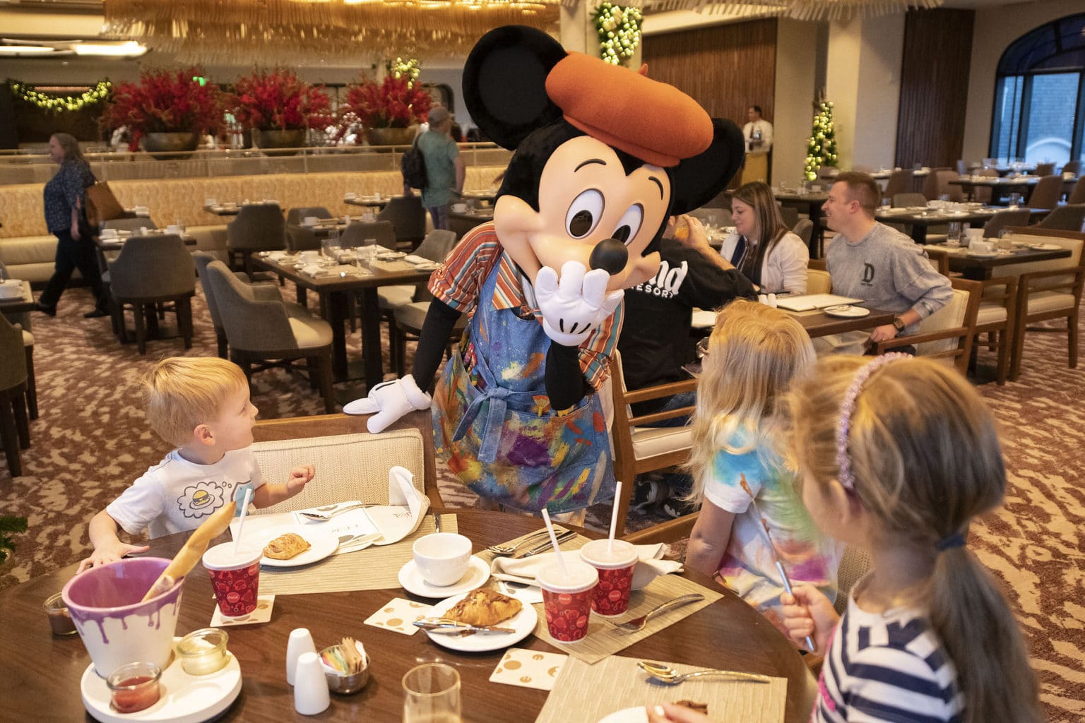 At Topolino’s Terrace guests can enjoy Breakfast à la Art with Mickey & Friends, a prix-fixe Disney character dining experience that celebrates the creativity in all of us. (Preston Mack, photographer)