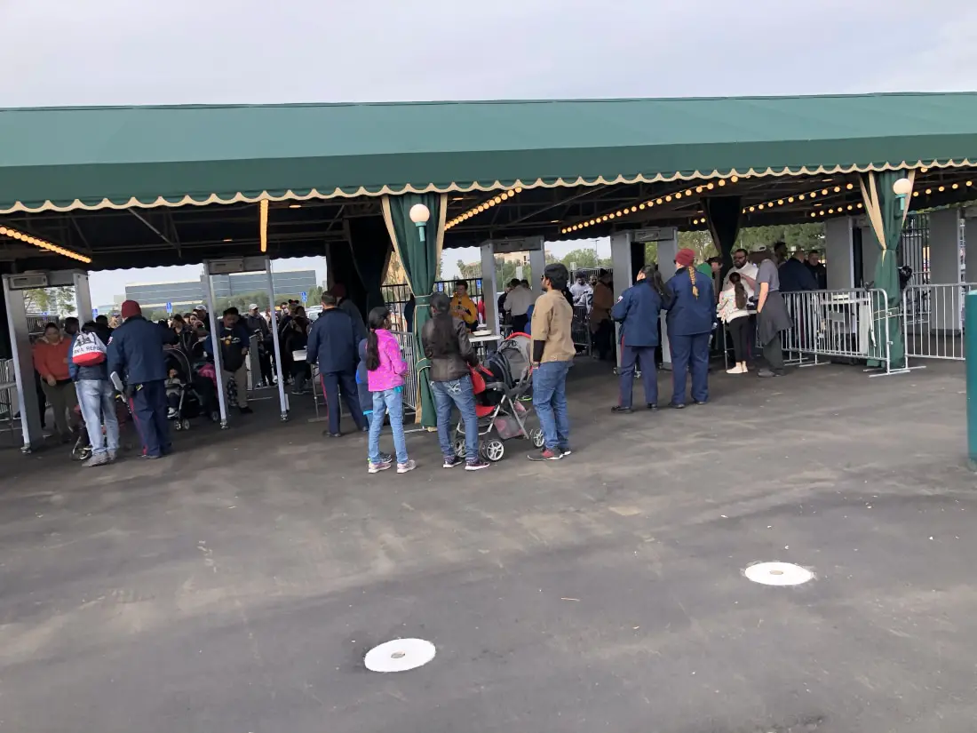 It seems the security screening area was only in use during peak arrival times this past weekend. On Sunday, bags were checked and guests went through metal detectors before boarding buses. Once Parkside, guests arriving from the Toy Story Parking Lot were able to quickly access the Esplanade, and head to ticket booths, the Parks, or Downtown Disney.