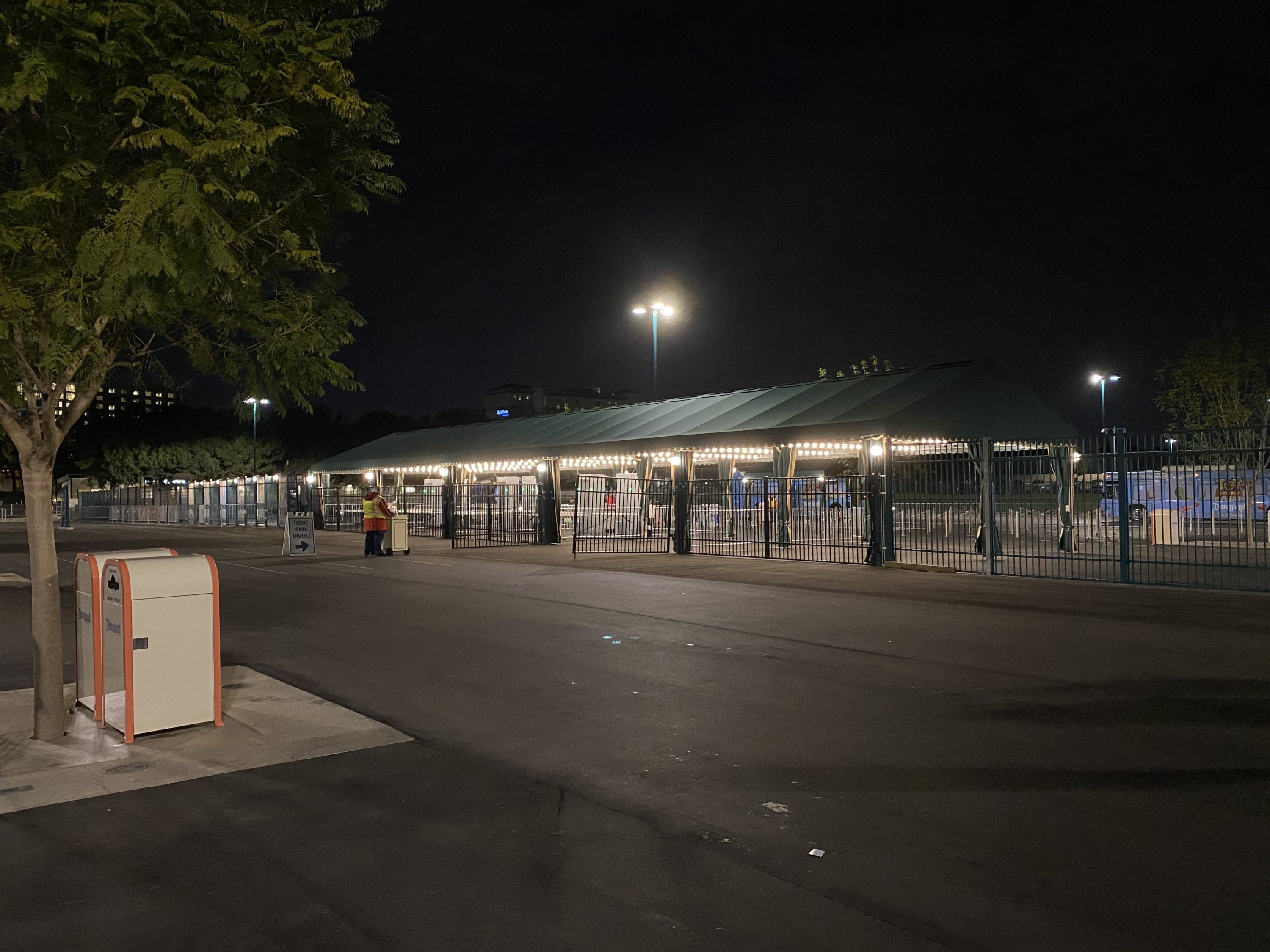 A new security screening and bus loading area opened this past weekend at the Disneyland Resort. It’s located in the Toy Story Parking Lot. This area was announced in March 2019, and construction has been taking place the last few months. The former Katella Cast Member Parking Lot will become the Bullseye Parking Lot.