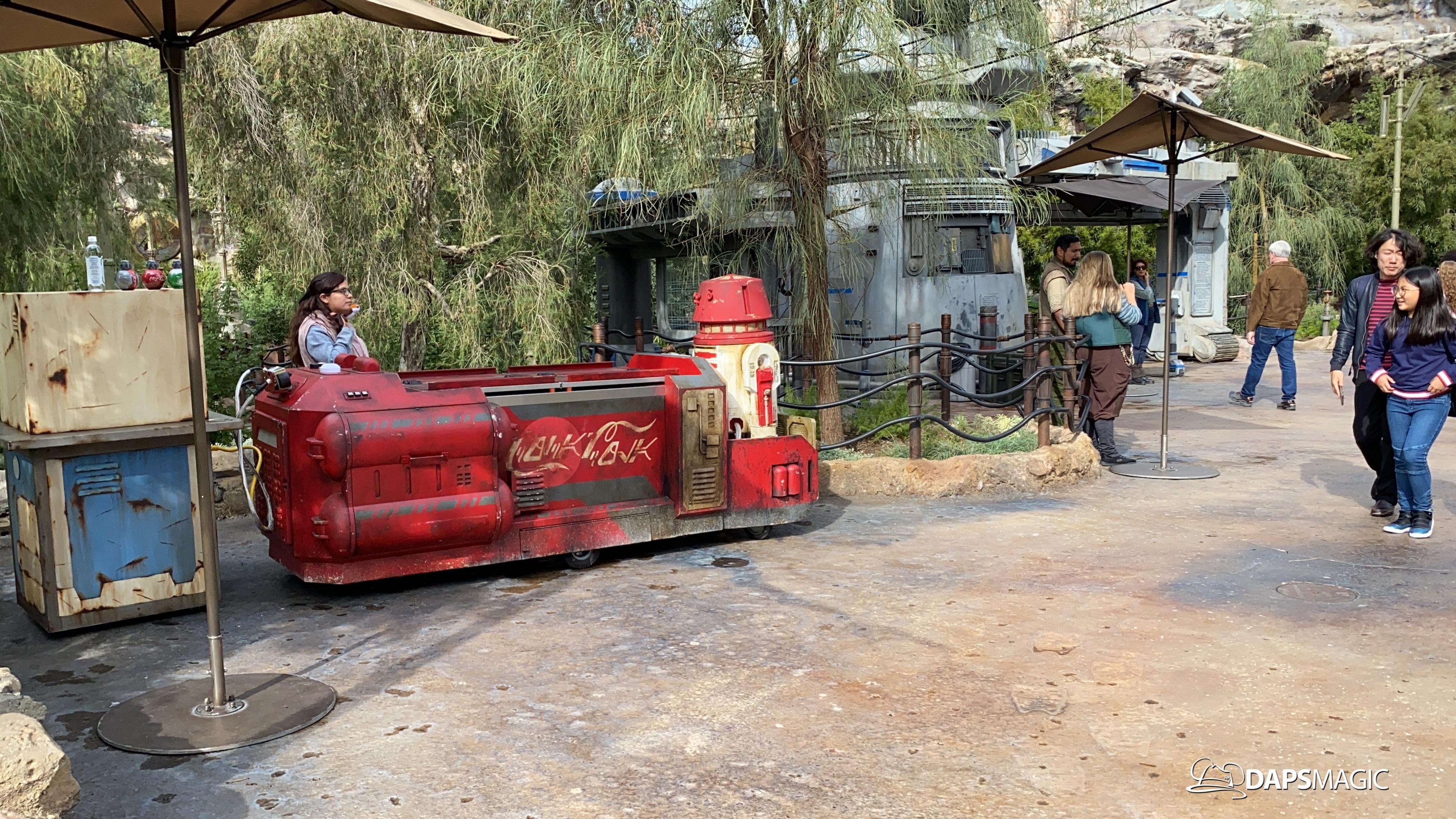 New droids have arrived on Batuu. The droids that were found throughout Star Wars: Galaxy’s Edge with beverage vendors in several locations around Black aspire Outpost. The droids were aboard beverage carts that were branded to specific Coca-Cola products in a way that kept the Star Wars themes. The products represented were Coca-Cola, Sprite, and Diet Coke on Friday when the droids appeared.