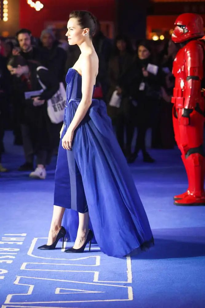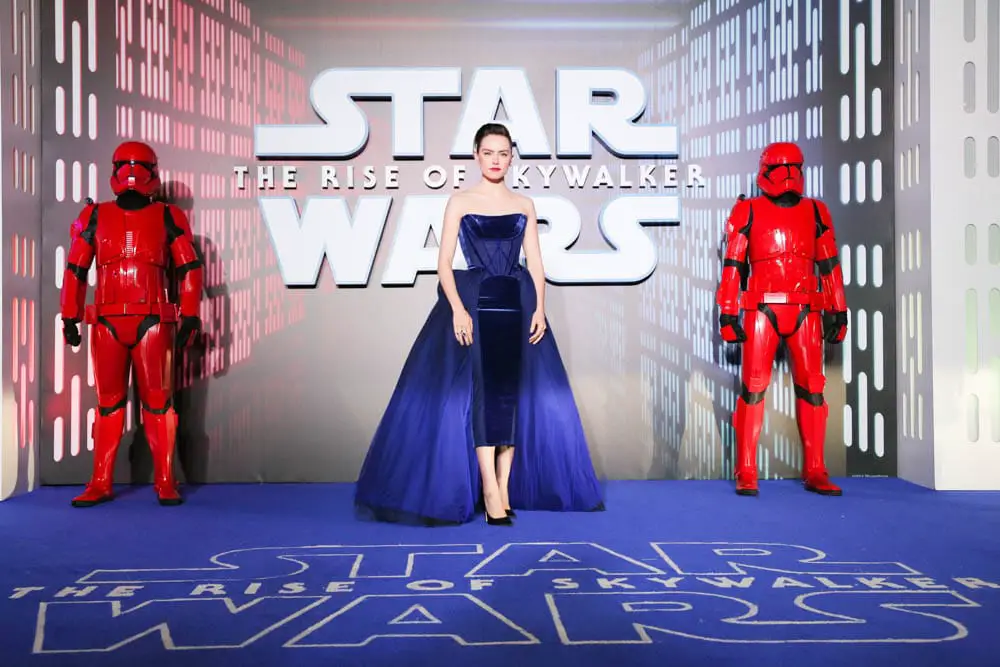 LONDON, ENGLAND – DECEMBER 18: (EDITORS NOTE: Image has been converted to black and white) Daisy Ridley attends the European premiere of “Star Wars: The Rise of Skywalker” at Cineworld Leicester Square on December 18, 2019 in London, England. (Photo by Gareth Cattermole/Getty Images for Disney)