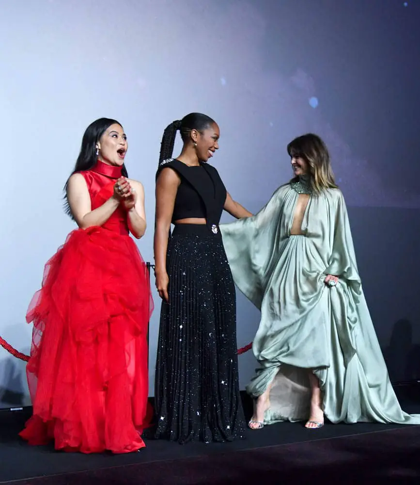LONDON, ENGLAND – DECEMBER 18: (L-R) Kelly Marie Tran, Naomi Ackie and Keri Russell attend the European premiere of “Star Wars: The Rise of Skywalker” at Cineworld Leicester Square on December 18, 2019 in London, England. (Photo by Gareth Cattermole/Getty Images for Disney)