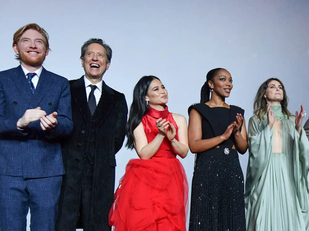 LONDON, ENGLAND – DECEMBER 18: (L-R) Domhnall Gleeson, Richard E. Grant, Kelly Marie Tran, Naomi Ackie and Keri Russell attend the European premiere of “Star Wars: The Rise of Skywalker” at Cineworld Leicester Square on December 18, 2019 in London, England. (Photo by Gareth Cattermole/Getty Images for Disney)