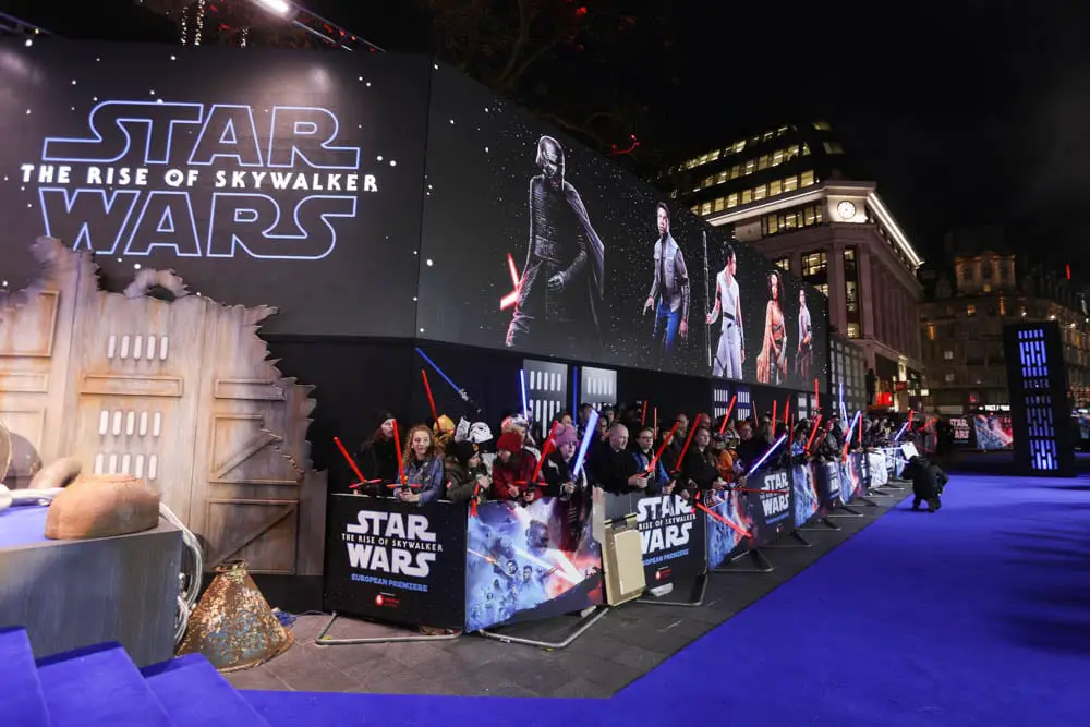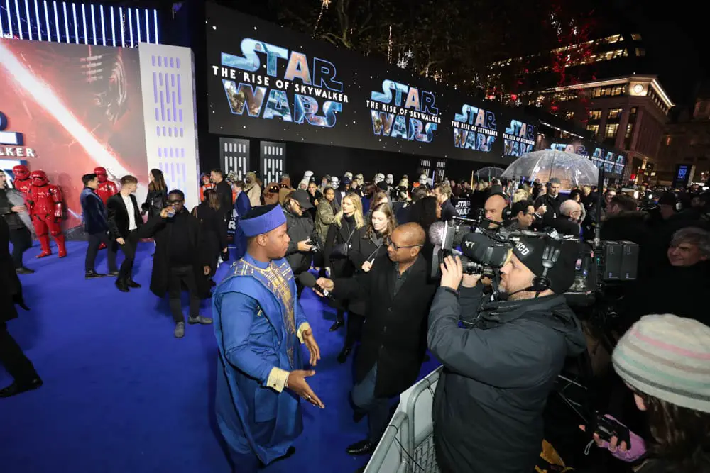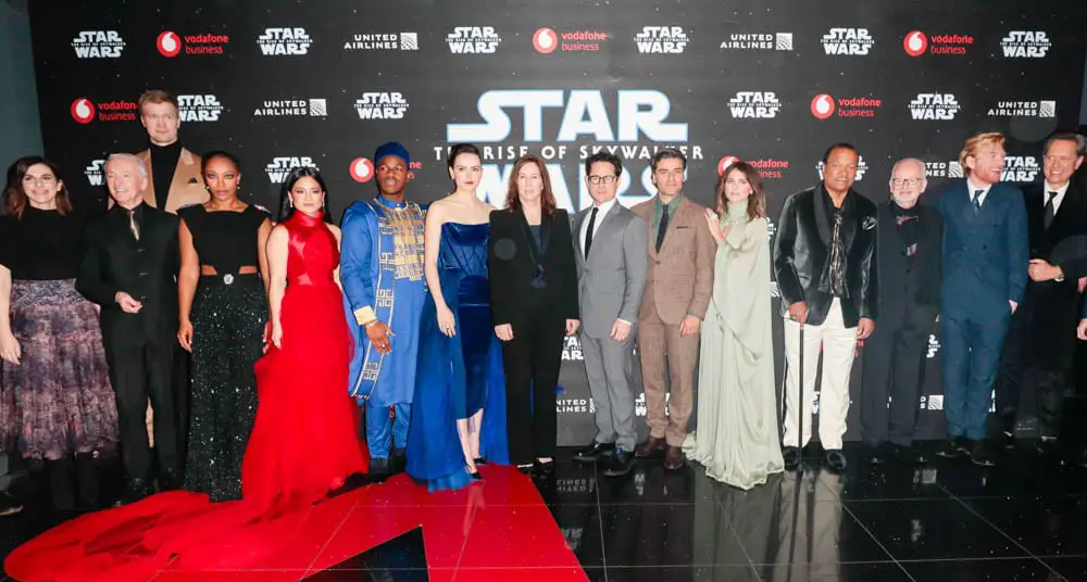 Following the world premiere of Star Wars: The Rise of Skywalker on Monday night in Hollywood, fans greeted Star Wars cast and crew at the European premiere. Stars Daisy Ridley, John Boyega, Oscar Isaac, Domhnall Gleeson, Naomi Ackie, Anthony Daniels, Richard E. Grant, Ian McDiarmid, Keri Russell, Joonas Suotamo, Kelly Marie Tran, Billy Dee Williams and Warwick Davis were joined by director/writer/producer J.J. Abrams, producersKathleen Kennedy and Michelle Rejwan, executive producer Callum Greene, writer Chris Terrio and other celebrity guests were on hand for this event in London’s Leicester Square.