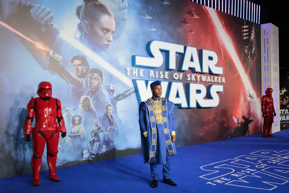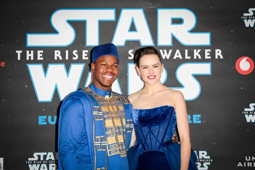 LONDON, ENGLAND – DECEMBER 18: John Boyega and Daisy Ridley attend the European premiere of “Star Wars: The Rise of Skywalker” at Cineworld Leicester Square on December 18, 2019 in London, England. (Photo by Gareth Cattermole/Getty Images for Disney)