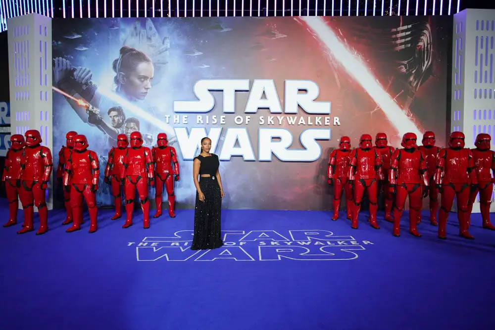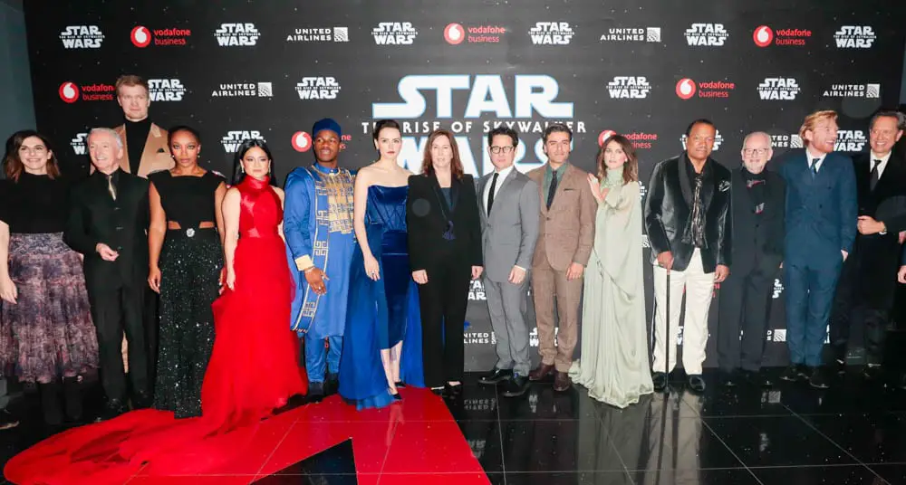 Michelle Rejwan, Anthony Daniels, Joonas Suotamo, Naomi Ackie, Kelly Marie Tran, John Boyega, Daisy Ridley, Kathleen Kennedy, J.J. Abrams, Oscar Isaac, Keri Hilson, Billy Dee Williams, Ian McDiarmid, Domhnall Gleeson, Richard E. Grant and Chris Terrio