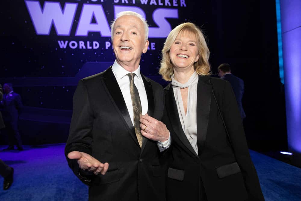HOLLYWOOD, CALIFORNIA – DECEMBER 16: (L-R) Mark Hamill and Marilou York arrive for the World Premiere of “Star Wars: The Rise of Skywalker”, the highly anticipated conclusion of the Skywalker saga on December 16, 2019 in Hollywood, California. (Photo by Amy Sussman/Getty Images for Disney)