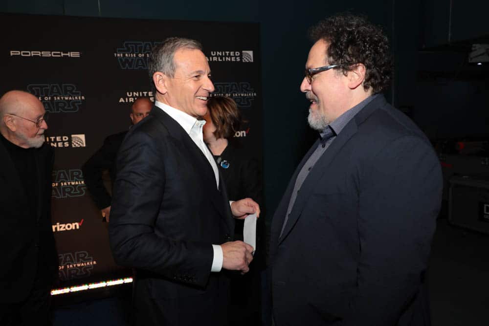HOLLYWOOD, CALIFORNIA – DECEMBER 16: (L-R) The Walt Disney Company Chairman and CEO Bob Iger and Jon Favreau arrive for the World Premiere of “Star Wars: The Rise of Skywalker”, the highly anticipated conclusion of the Skywalker saga on December 16, 2019 in Hollywood, California. (Photo by Charley Gallay/Getty Images for Disney)